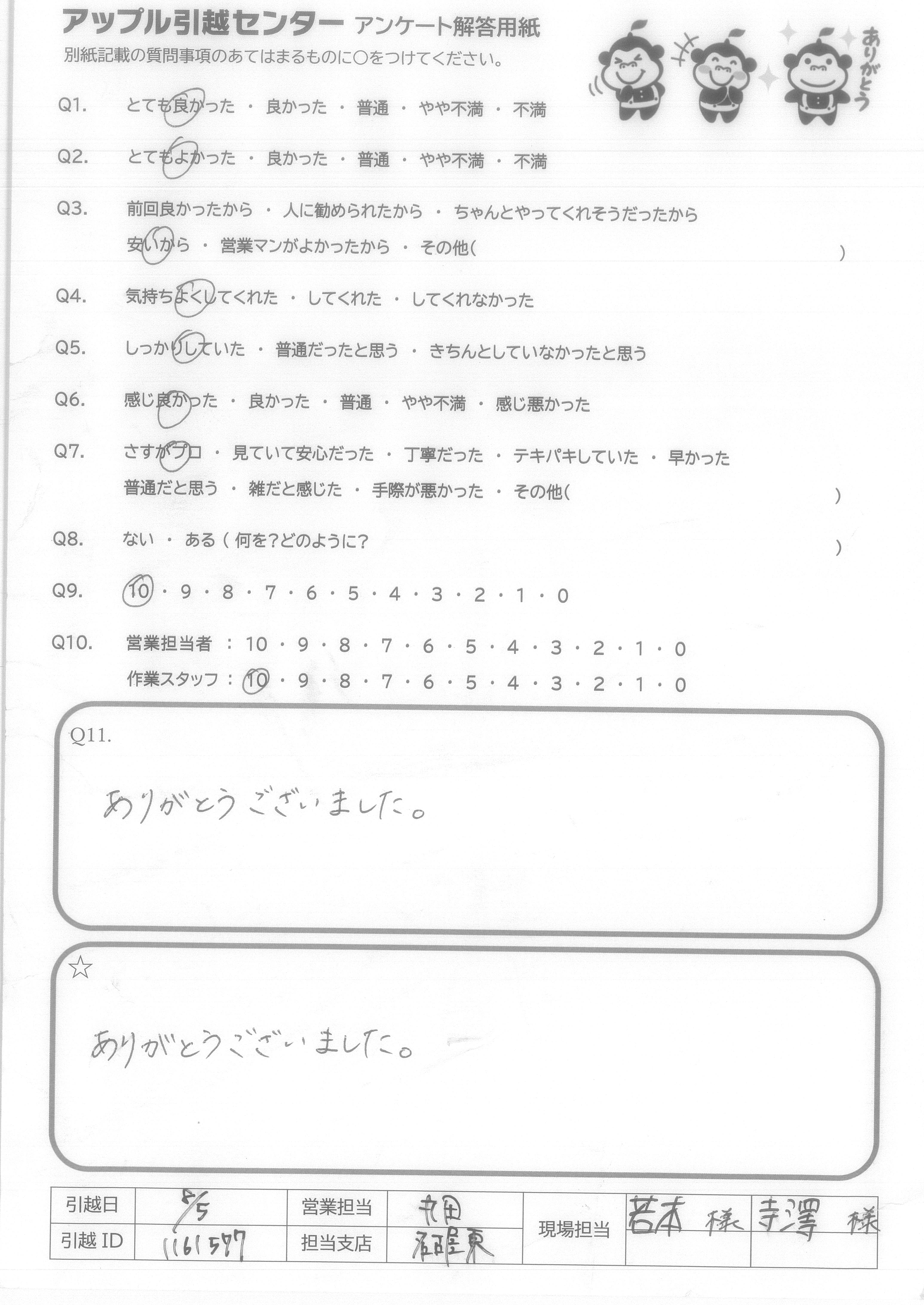 A.次回の引越ししの際もまたお願いしたいと思います! ありがとうございました