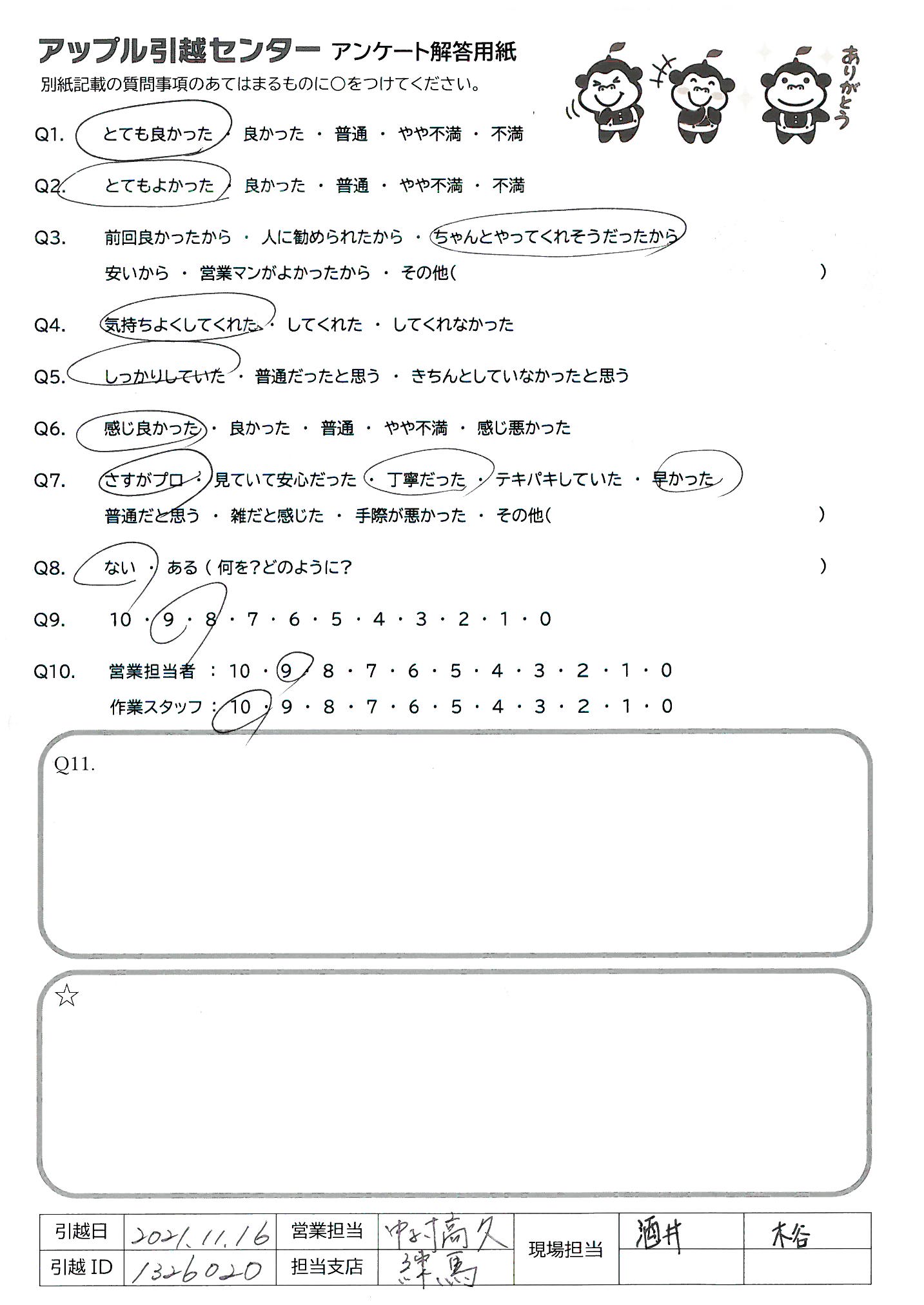 引越し日:2021年11月16日 エリア:愛知県名古屋市昭和区