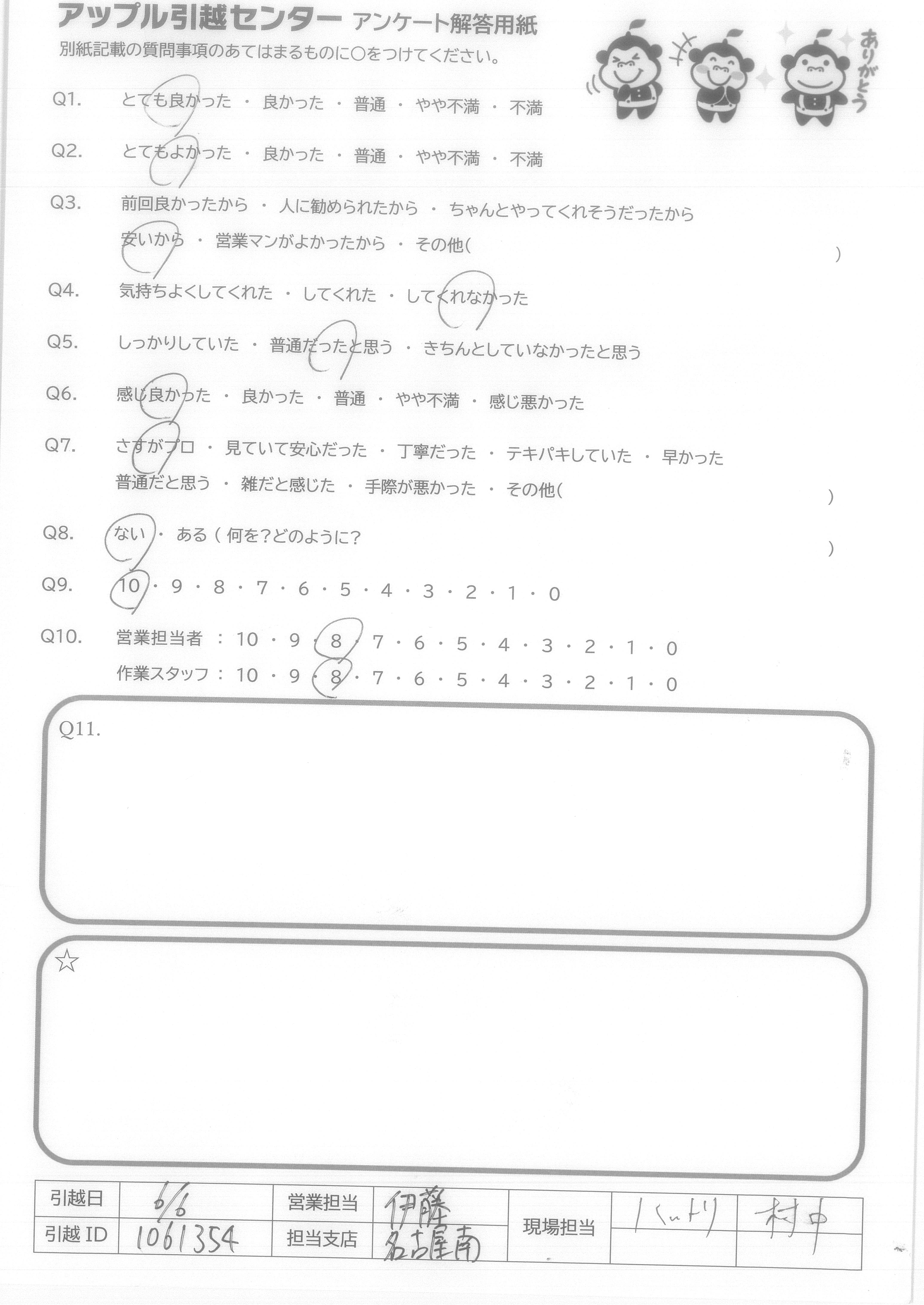 引越し日:2021年06月06日 エリア:愛知県名古屋市中村区
