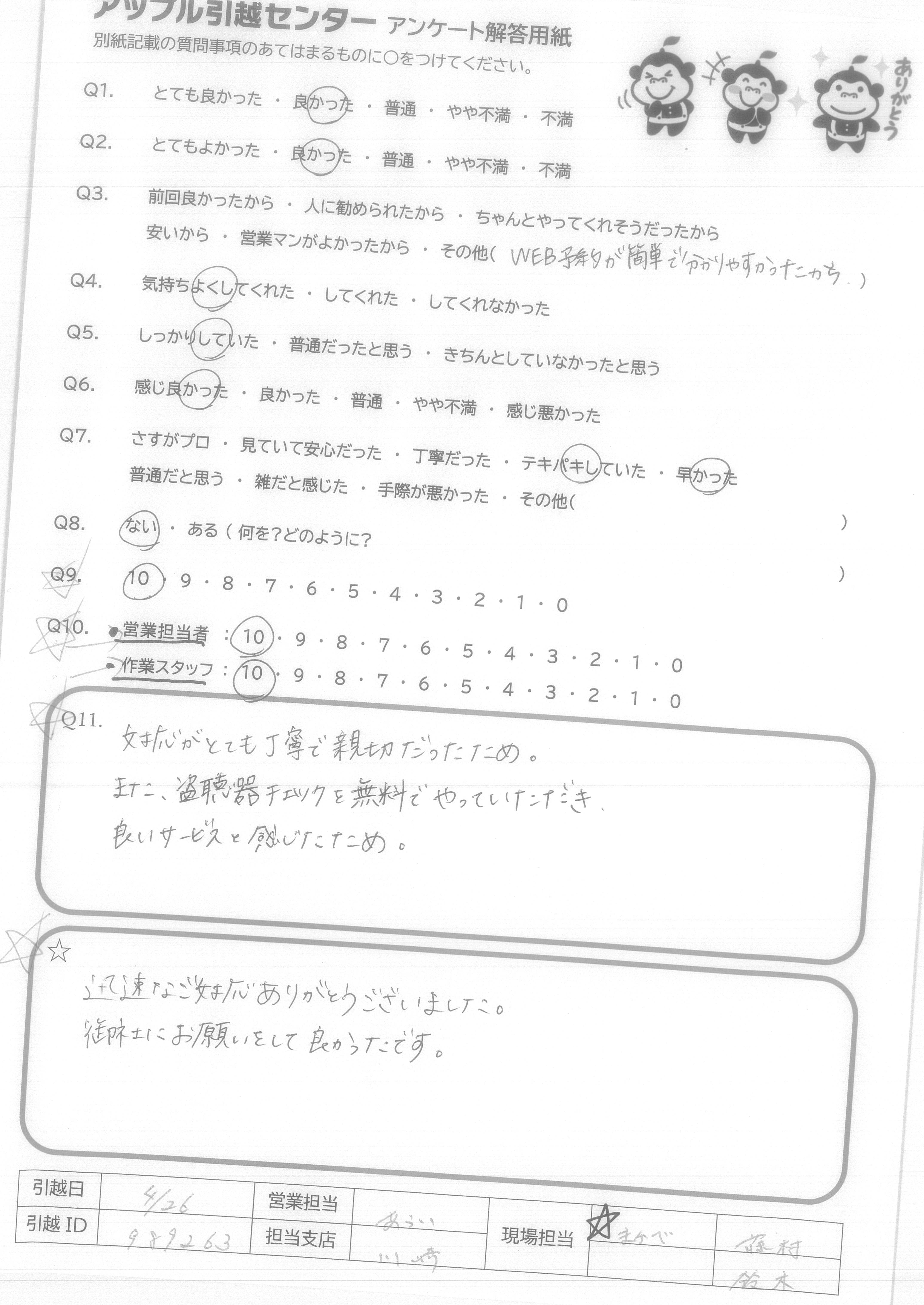 アップル引越センターでは、面映いお褒めの言葉も、胸に突き刺さるお叱りのコメントも、
