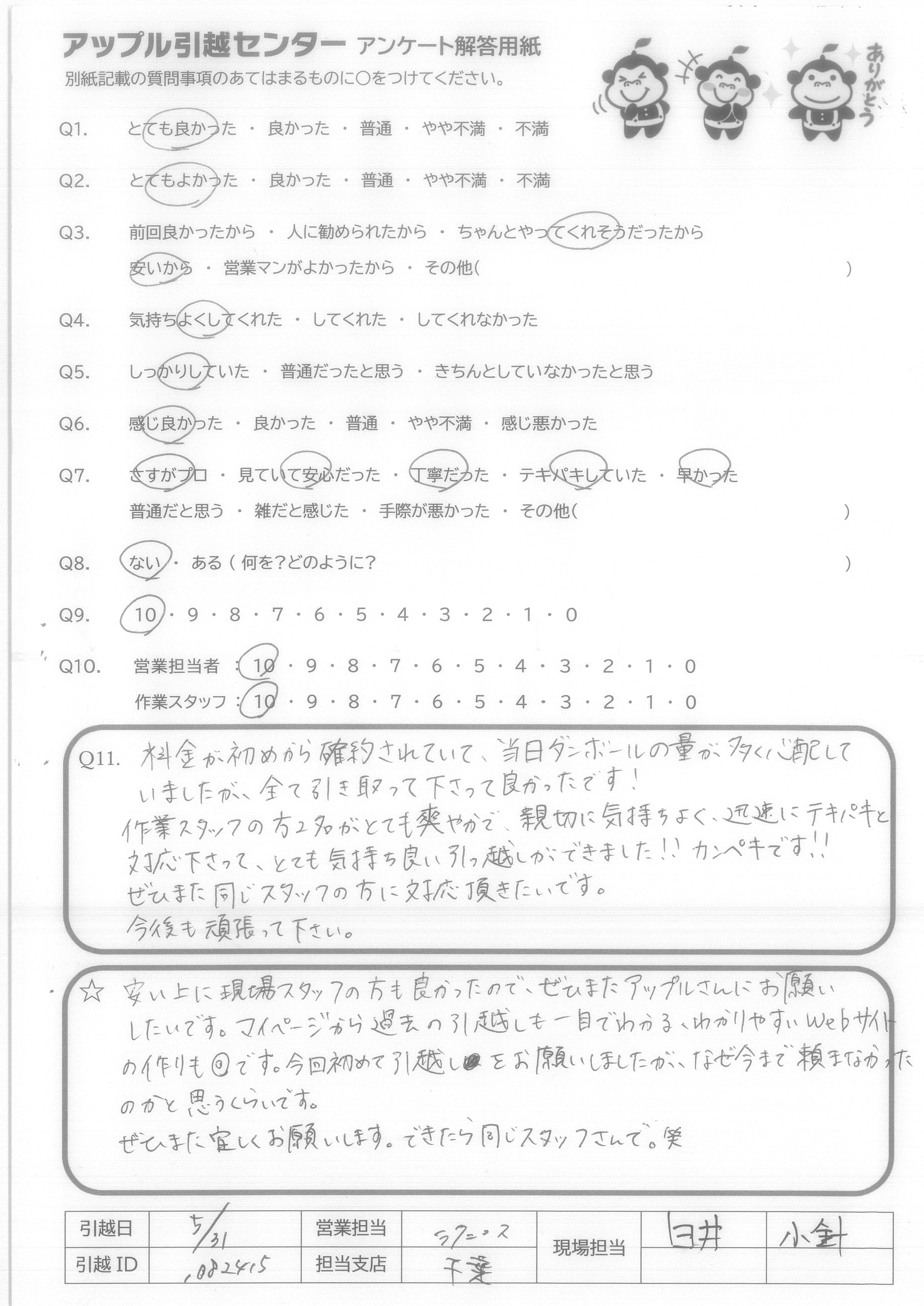 引越し日:2021年05月31日 エリア:千葉県浦安市