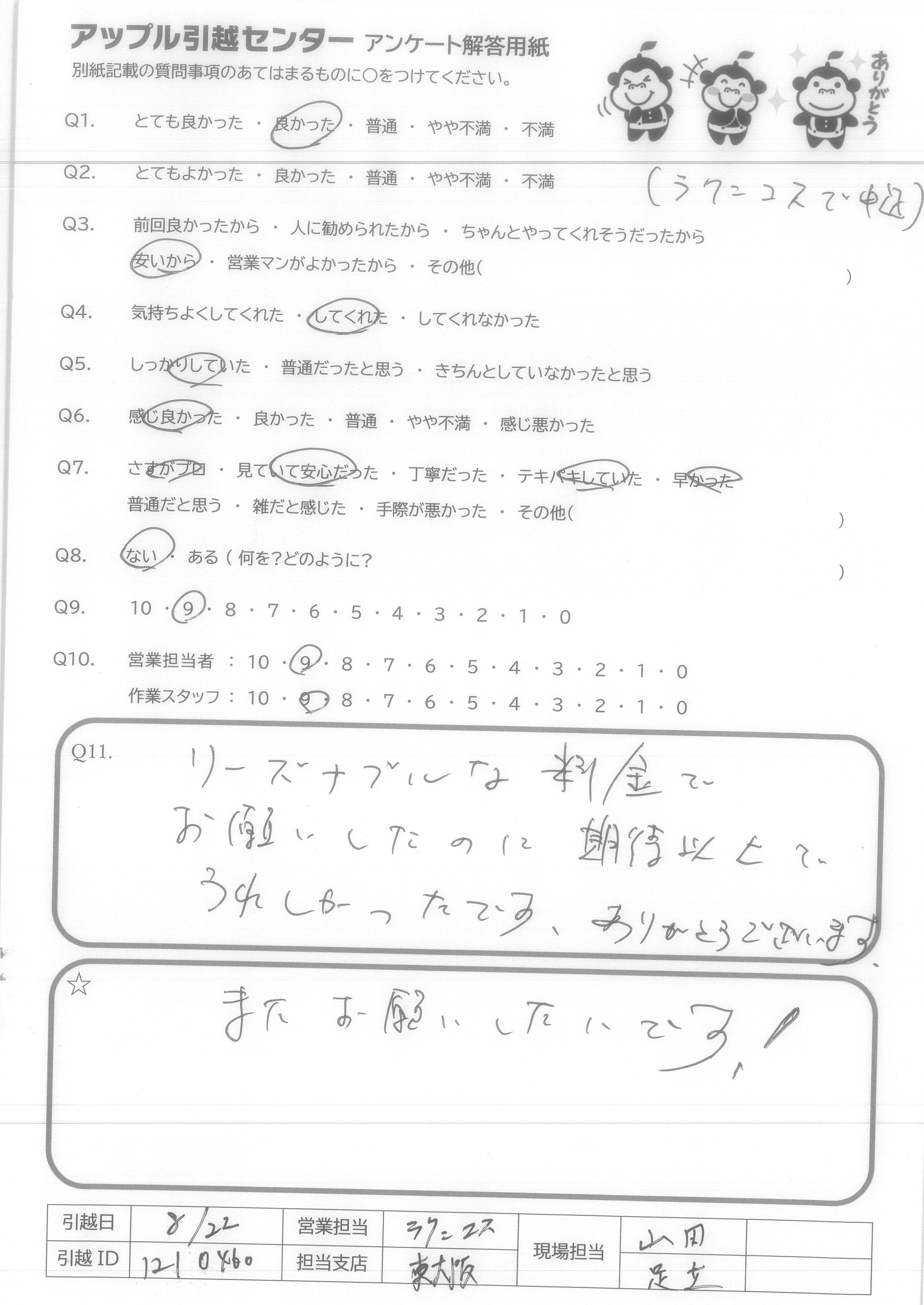 A.また引越しの際にはアップルさんにお願いしたいです!!