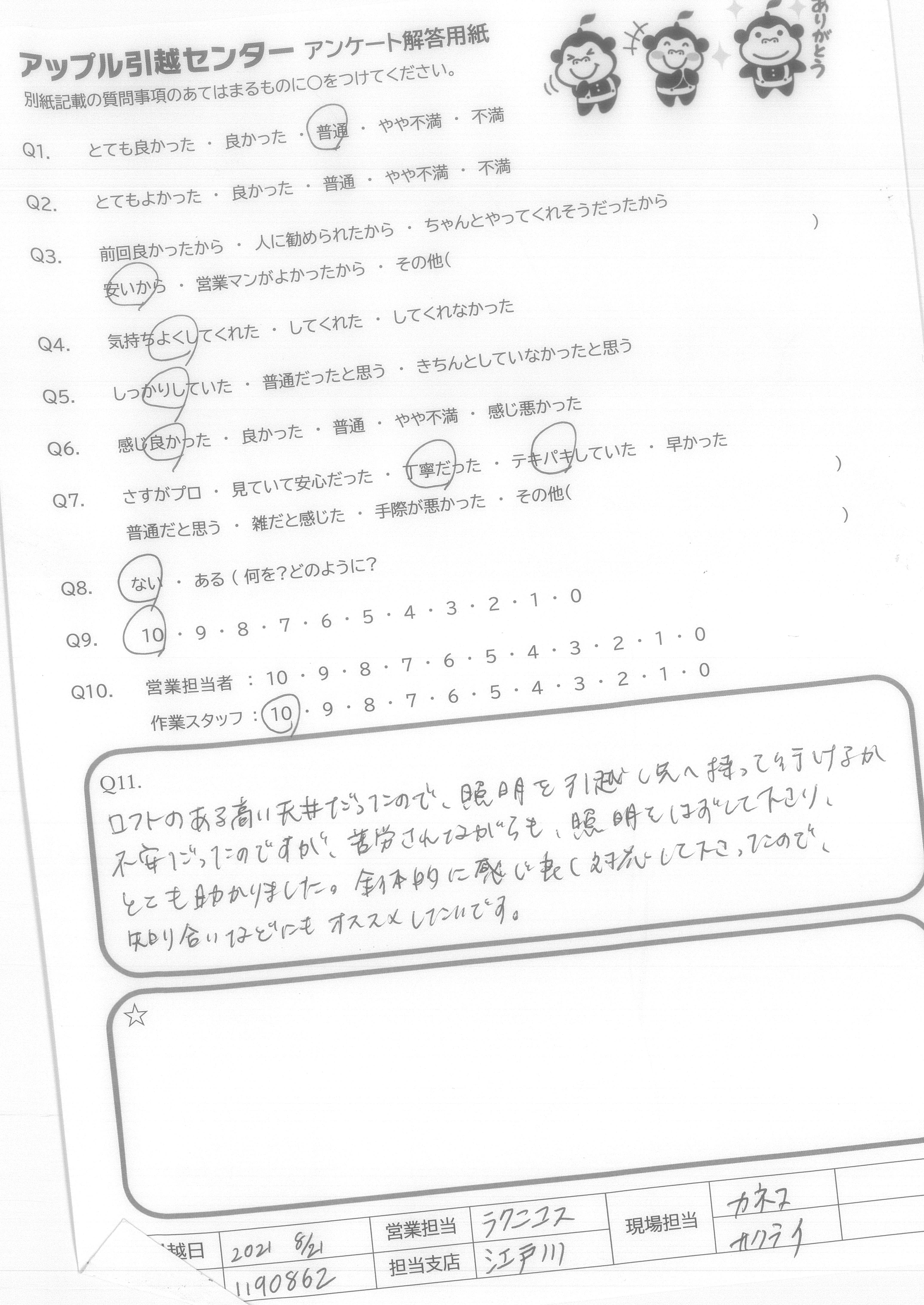 引越し日:2021年08月21日 エリア:東京都江東区