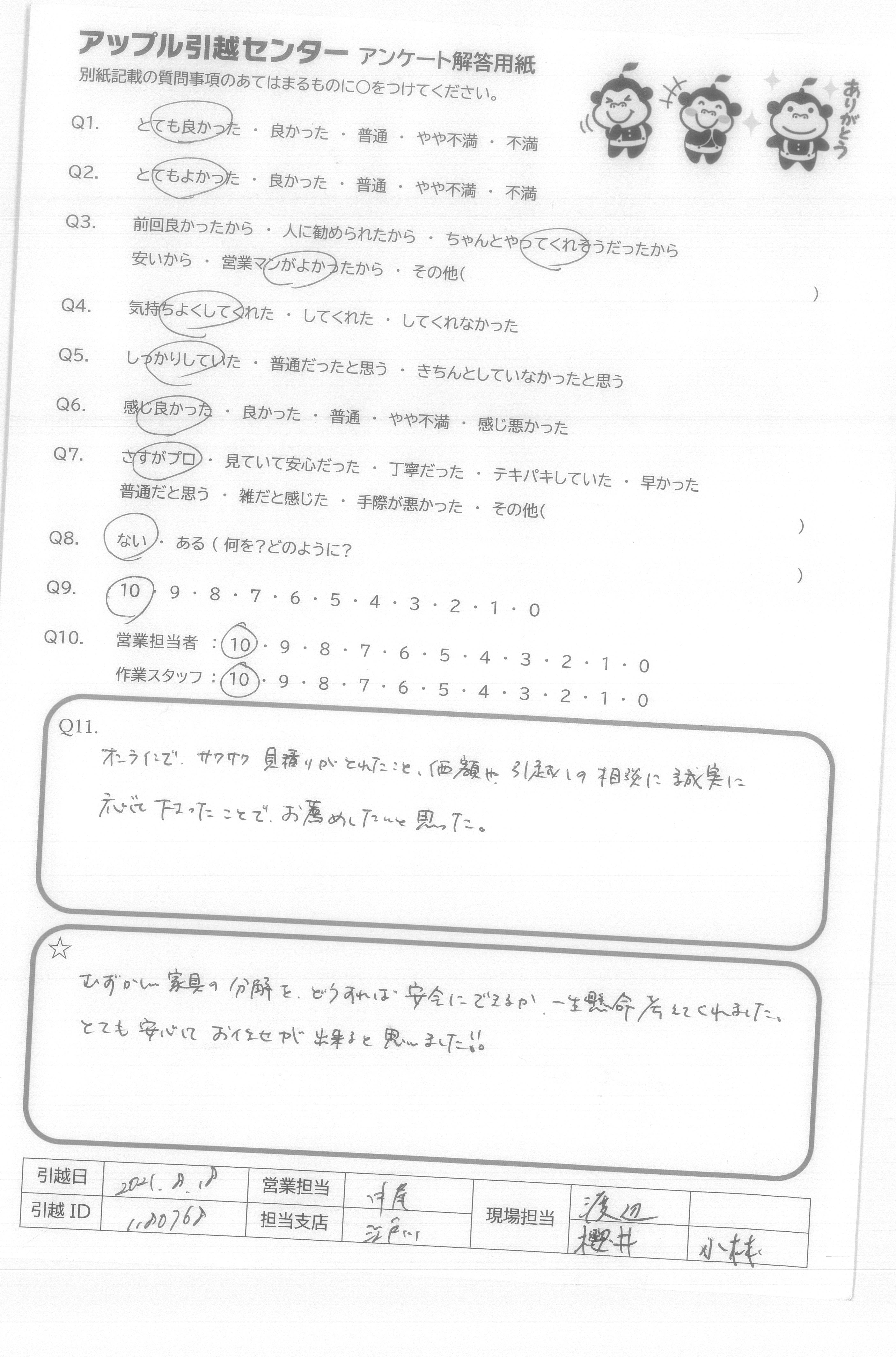 A.とても明るく、丁寧で次また引っ越すことになればお願いしたいです。