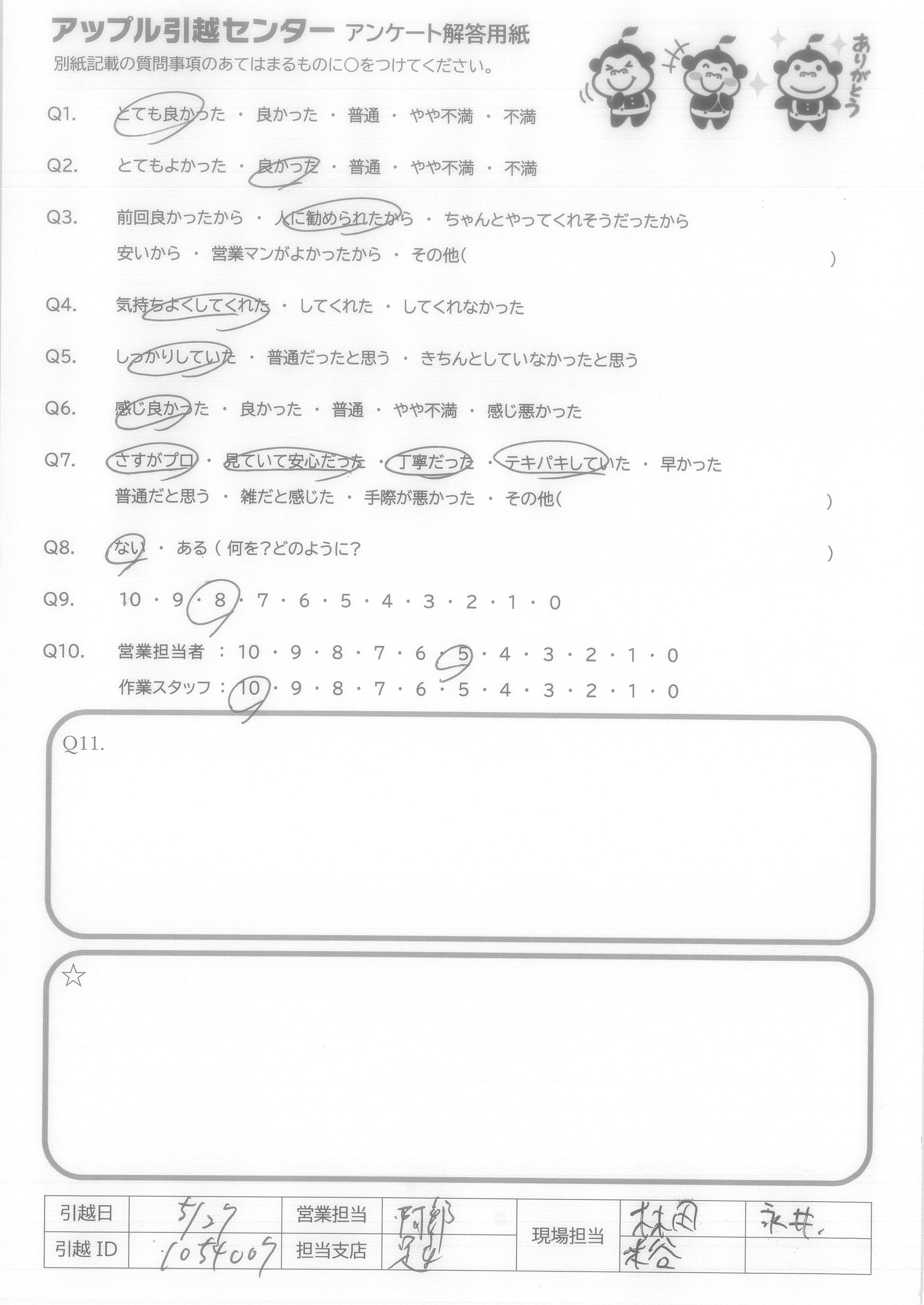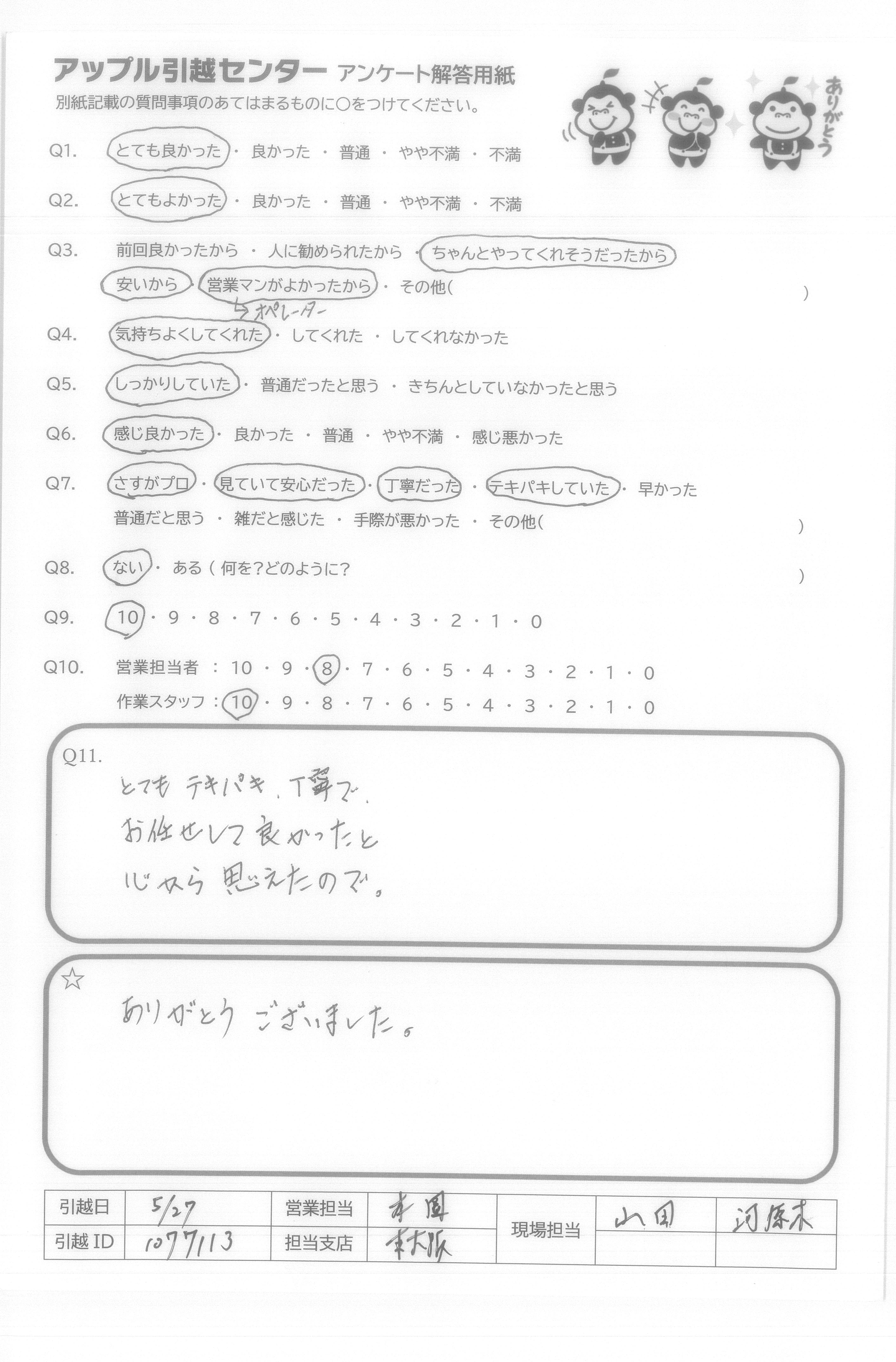 A.この度はありがとうございました。 スタッフの皆さん、非常に元気がよく、安心してお任せできました。