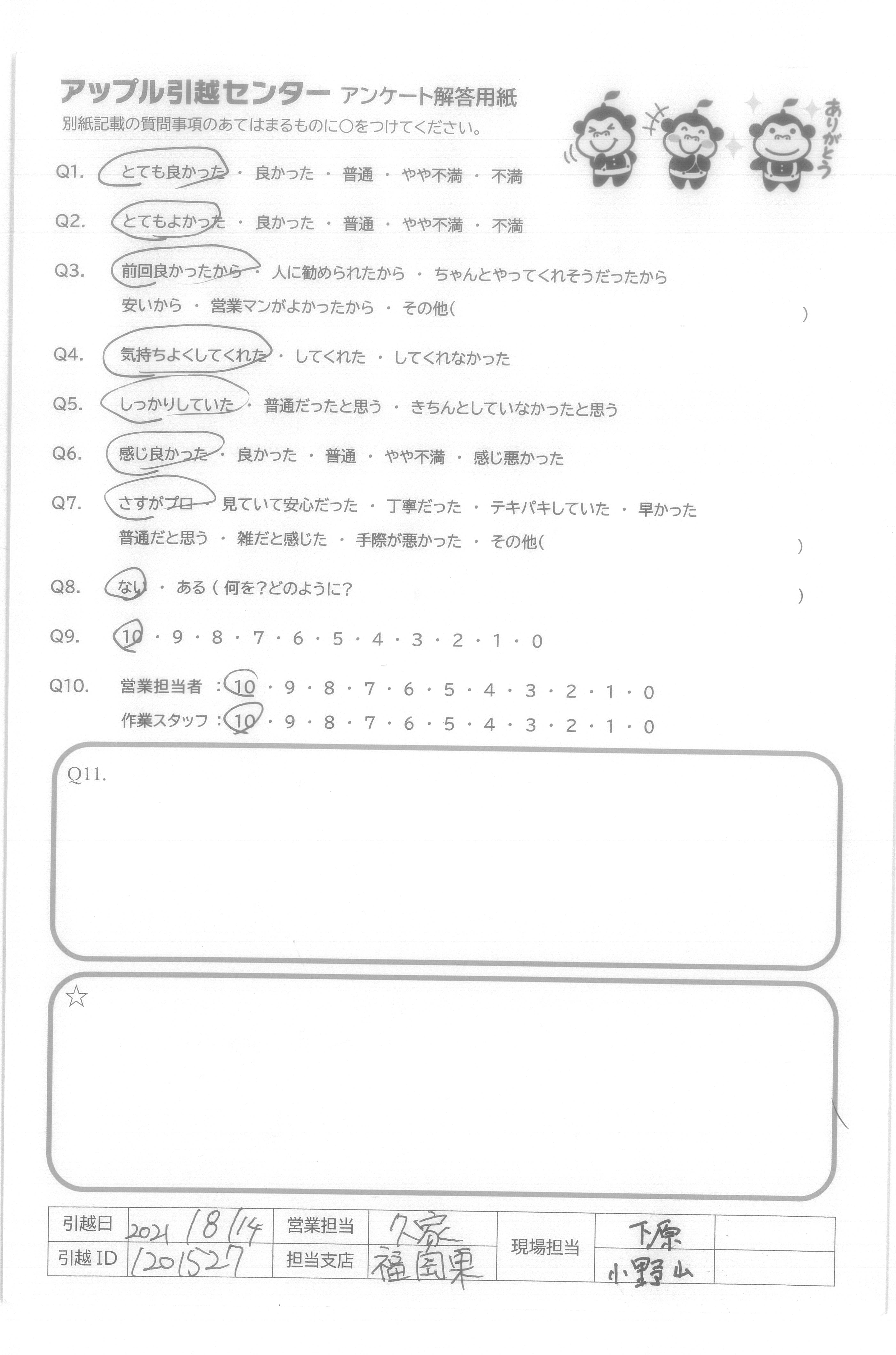 引越し日:2021年08月14日 エリア:福岡県福岡市城南区