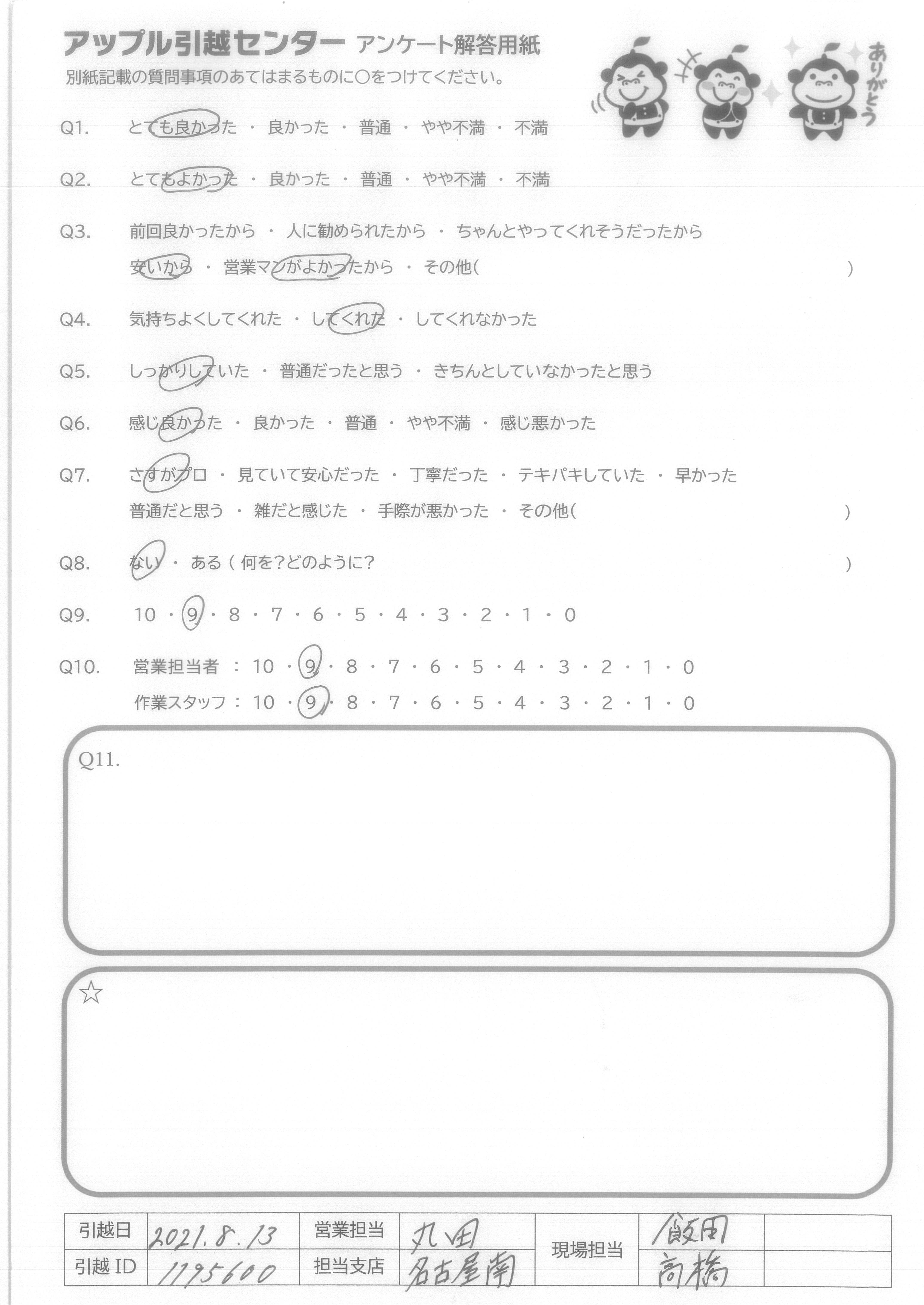 引越し日:2021年08月13日 エリア:愛知県名古屋市昭和区