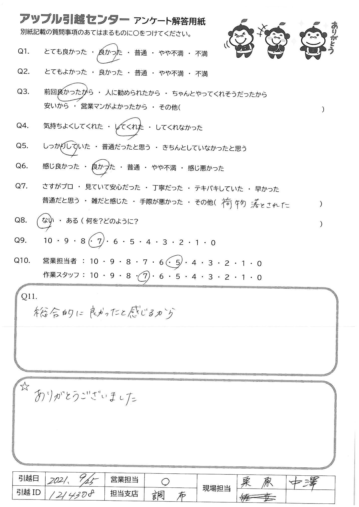 引越し日:2021年09月25日 エリア:愛知県名古屋市緑区