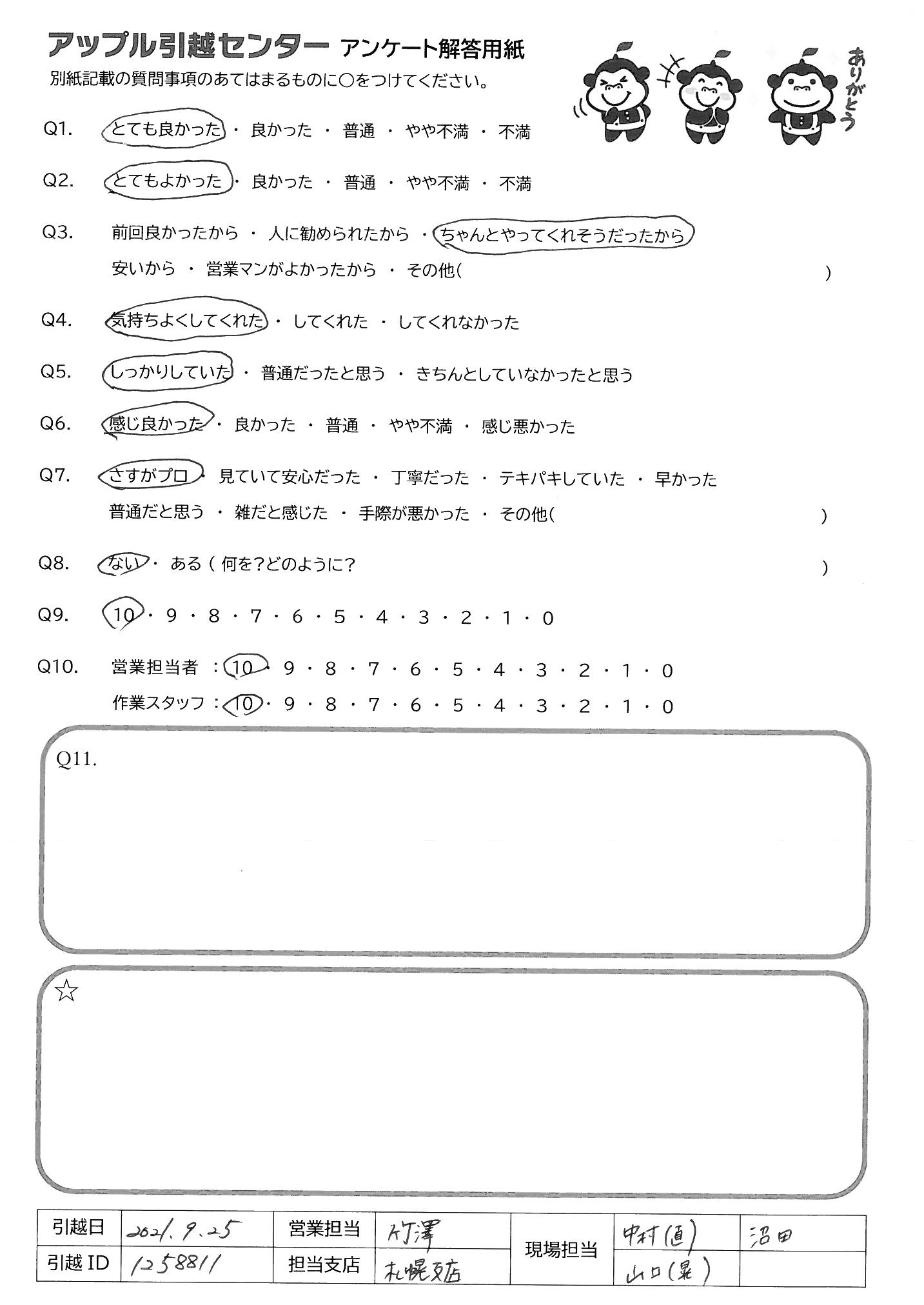 引越し日:2021年09月25日 エリア:北海道札幌市西区