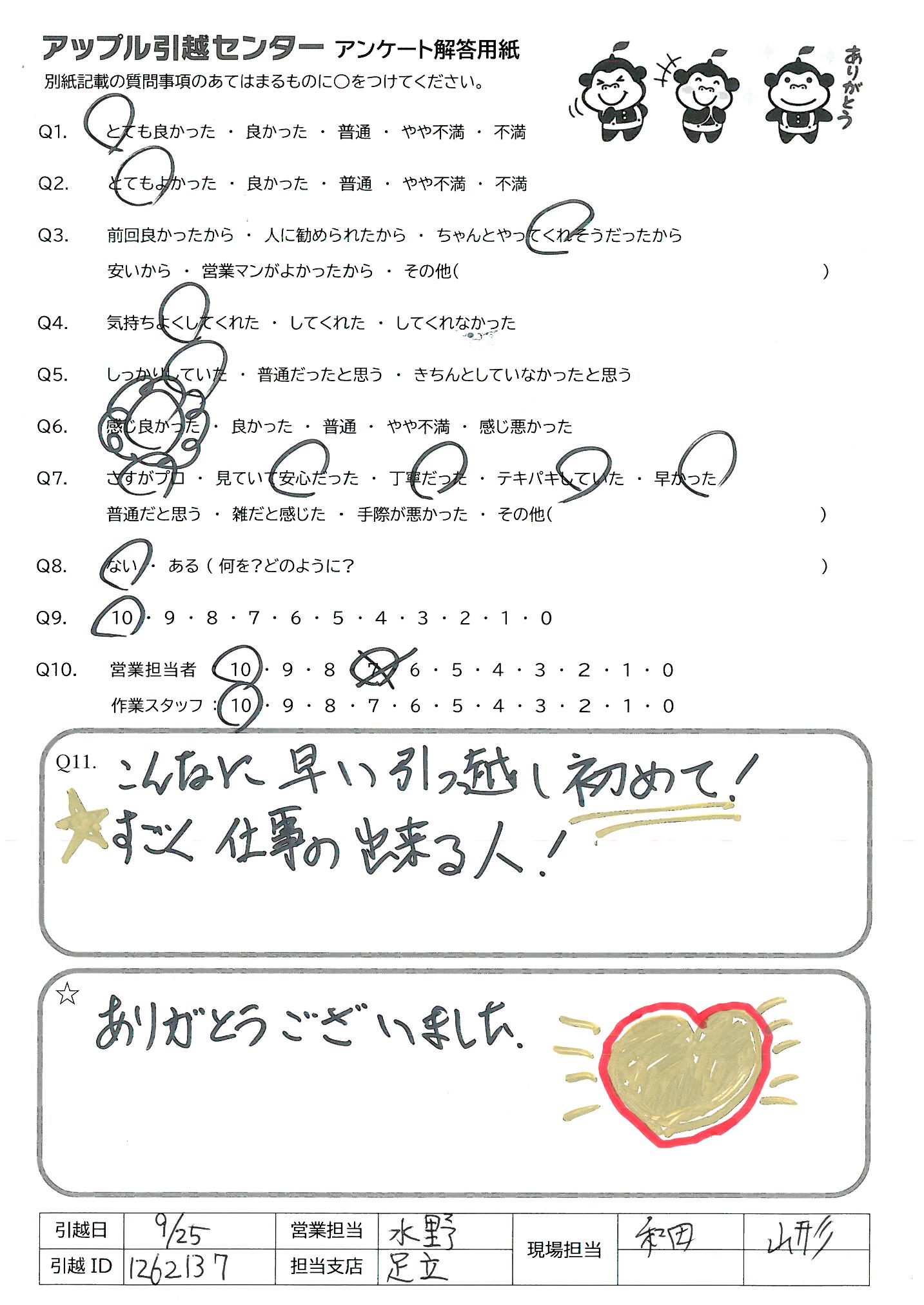 アップル引越センターでは、面映いお褒めの言葉も、胸に突き刺さるお叱りのコメントも、