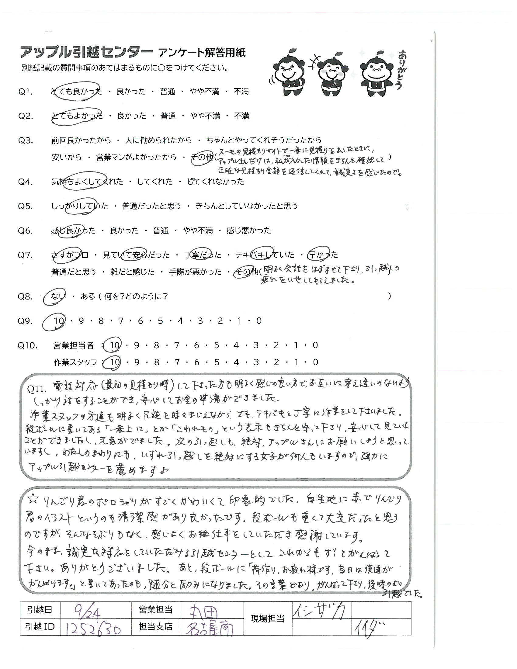 引越し日:2021年09月24日 エリア:愛知県名古屋市東区