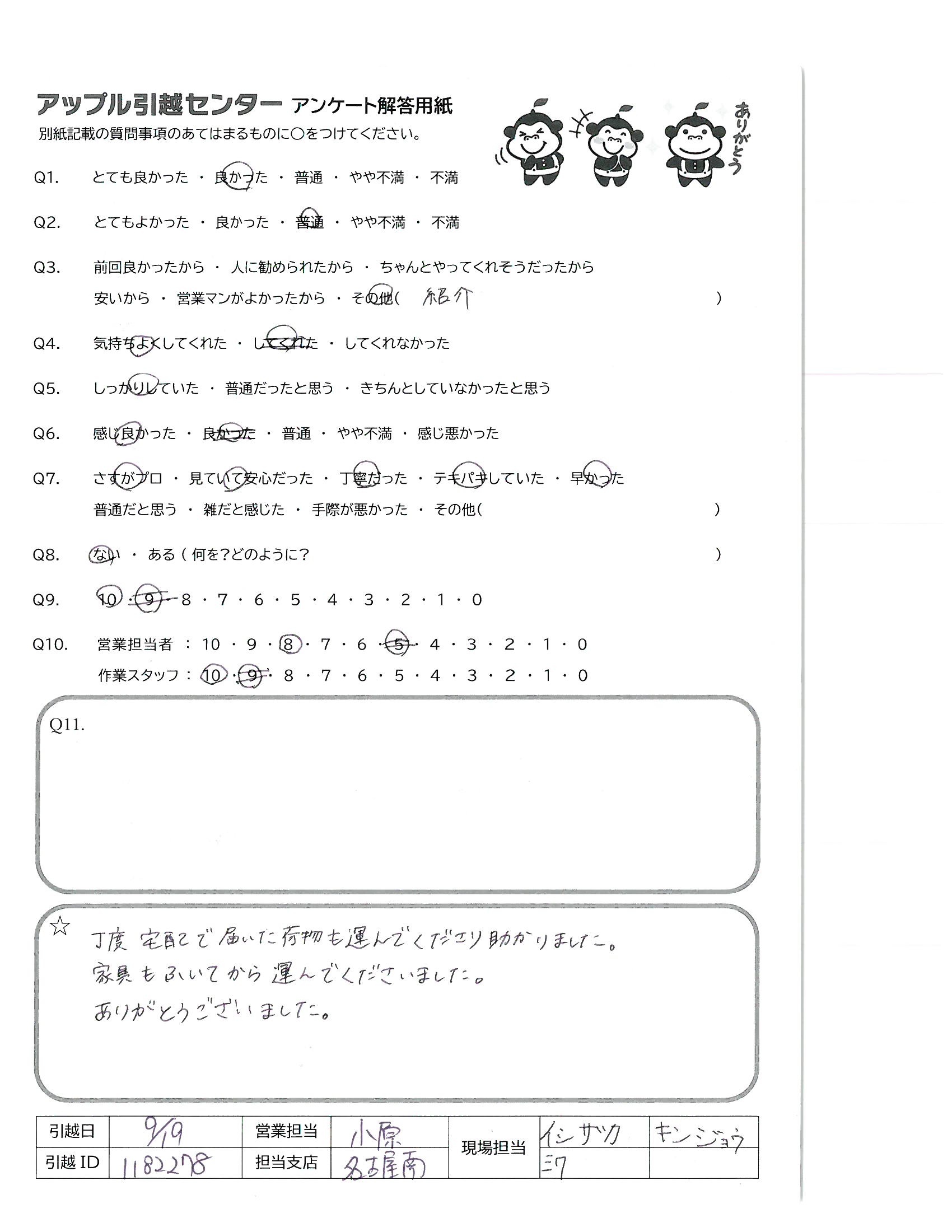 引越し日:2021年09月19日 エリア:愛知県東海市