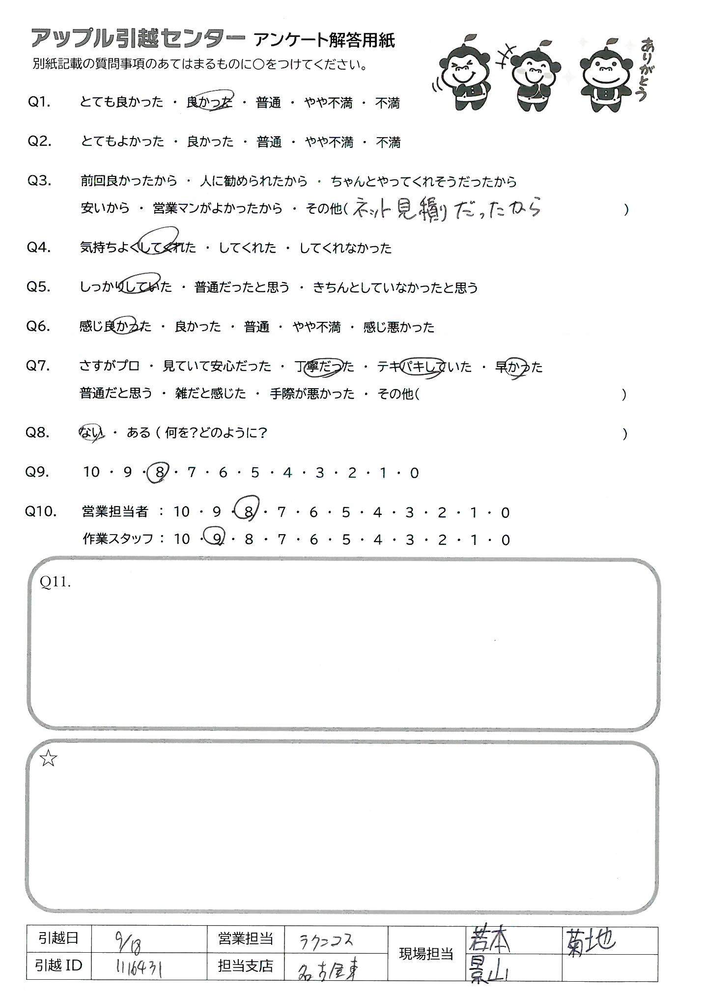 引越し日:2021年09月18日 エリア:愛知県名古屋市緑区