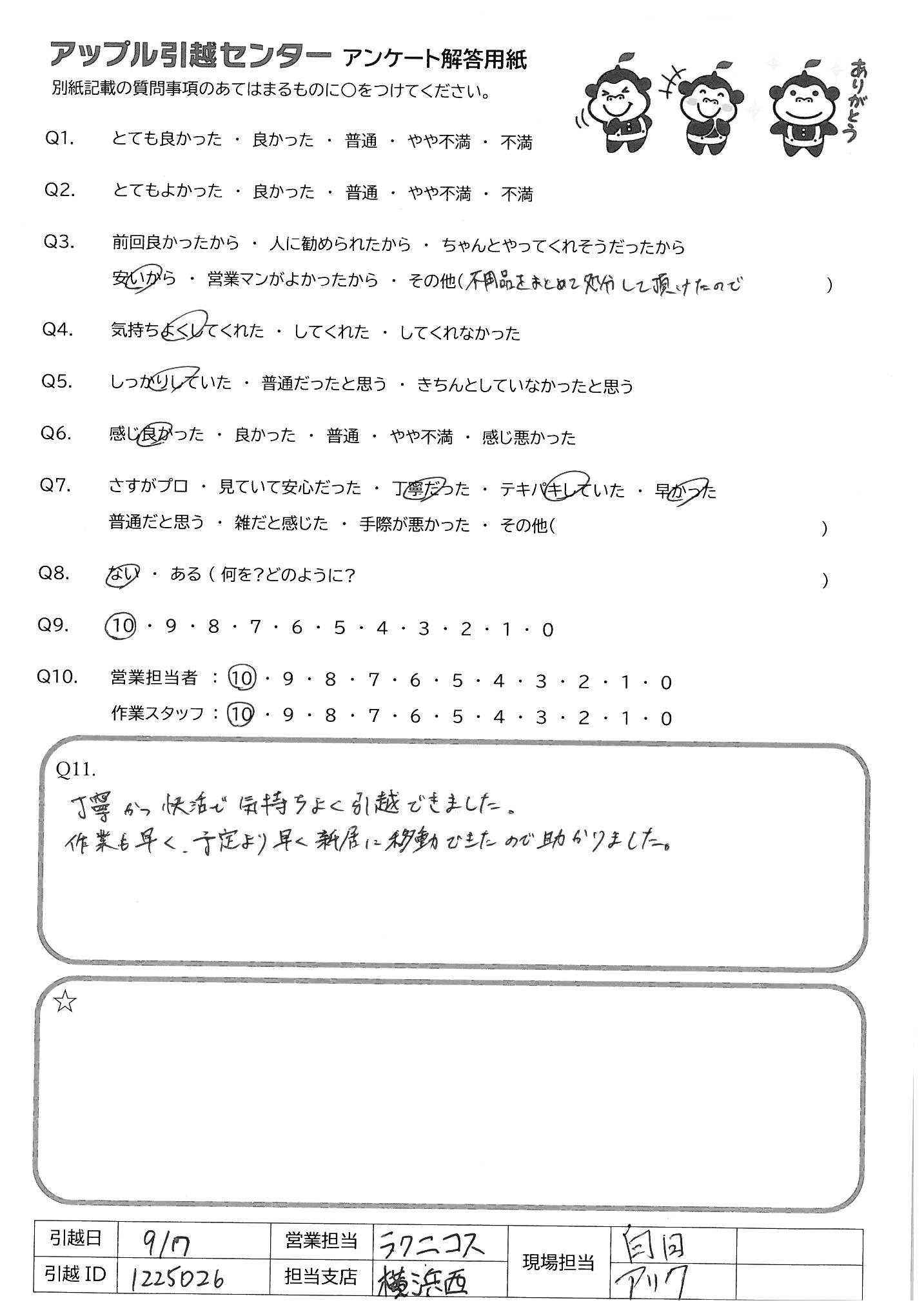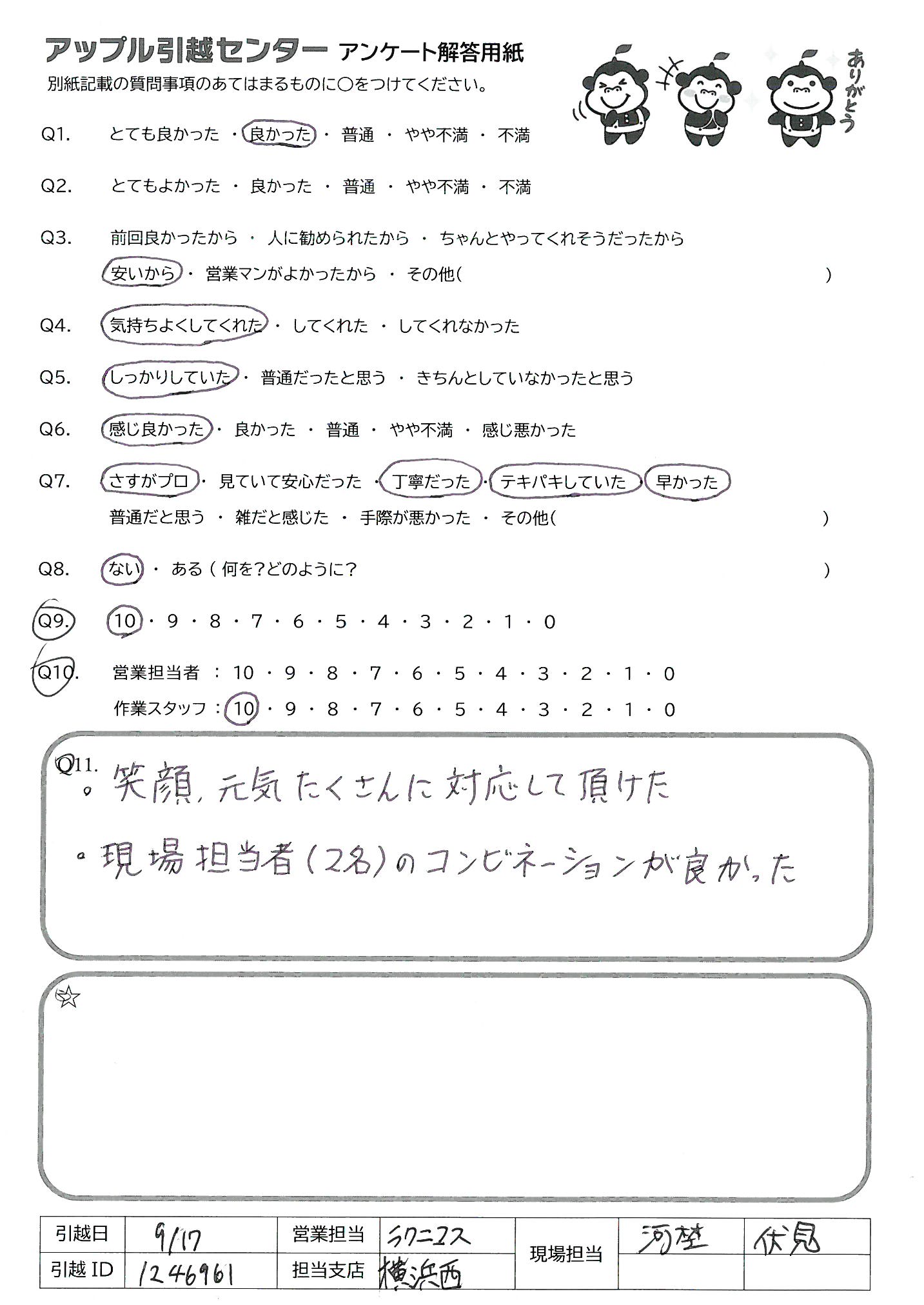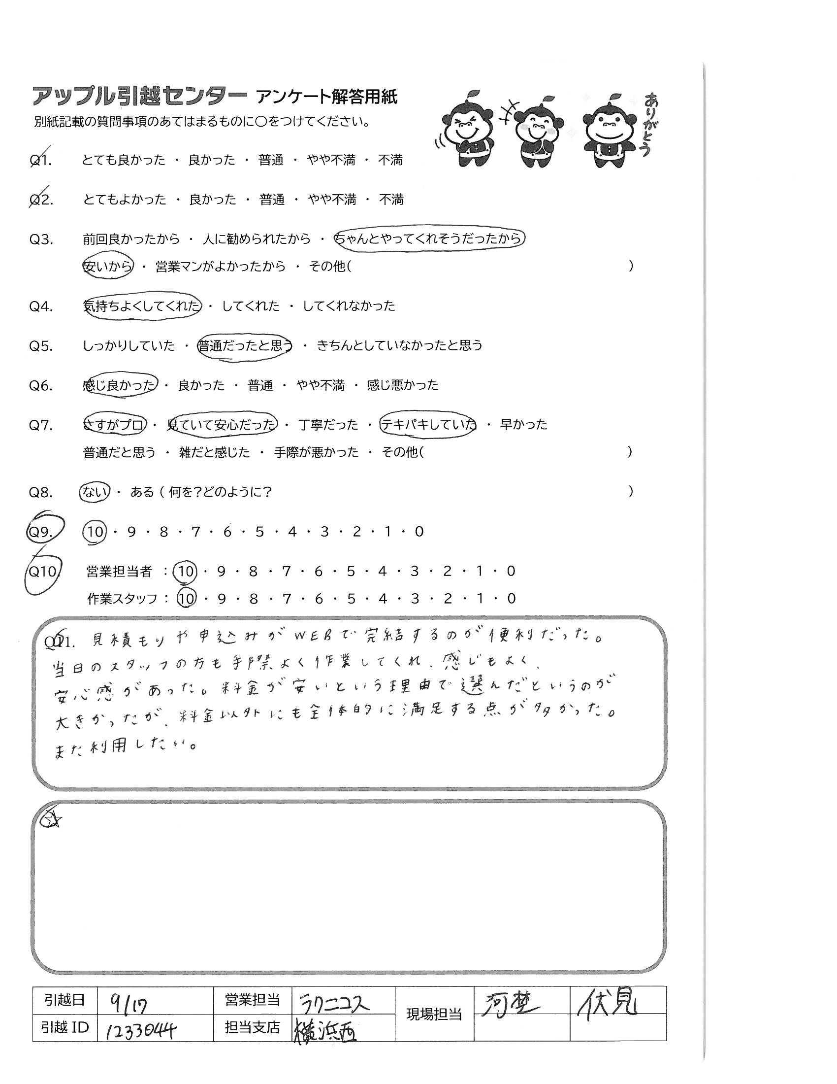 引越し日:2021年09月17日 エリア:神奈川県横浜市西区