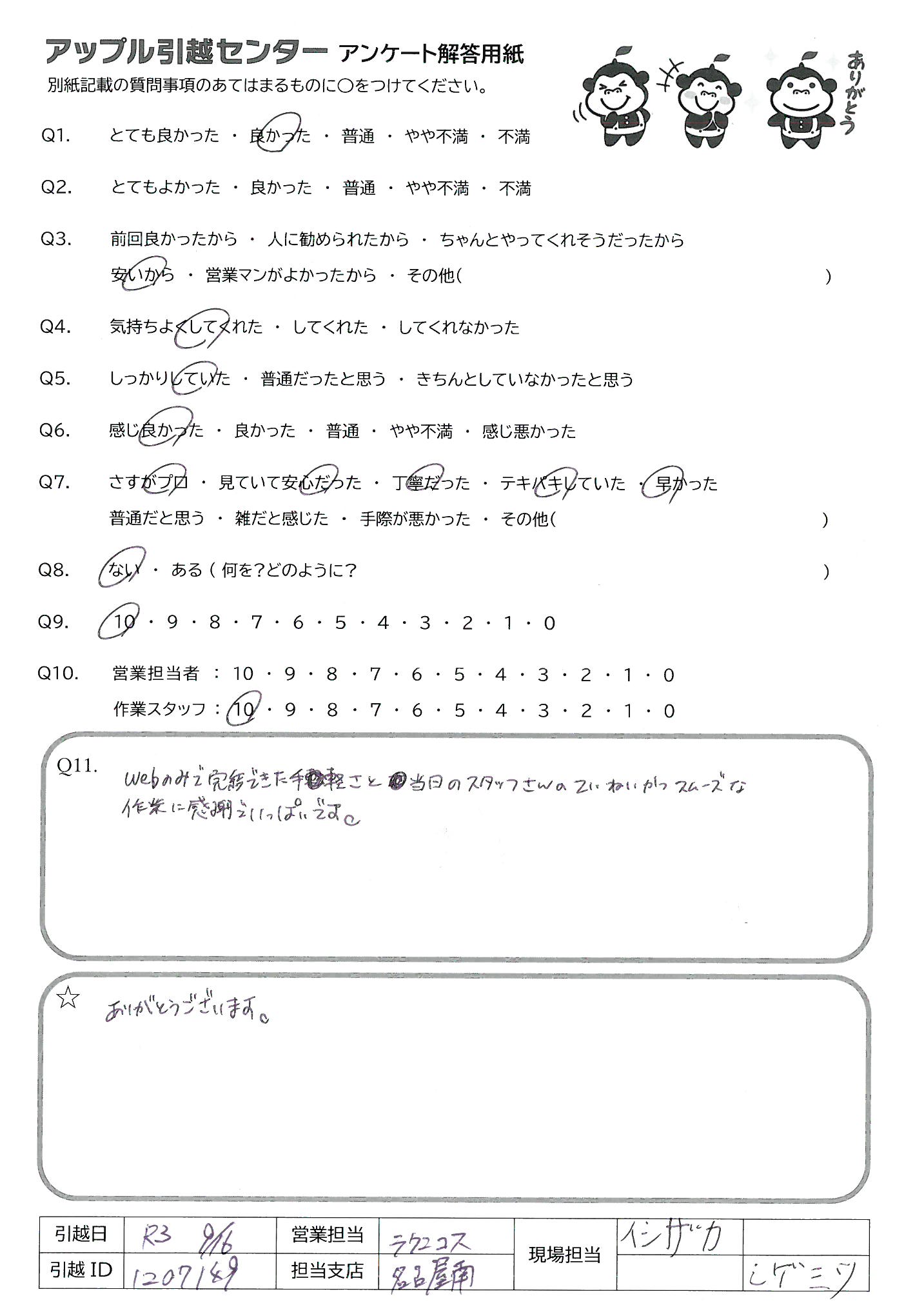 引越し日:2021年09月16日 エリア:愛知県名古屋市千種区