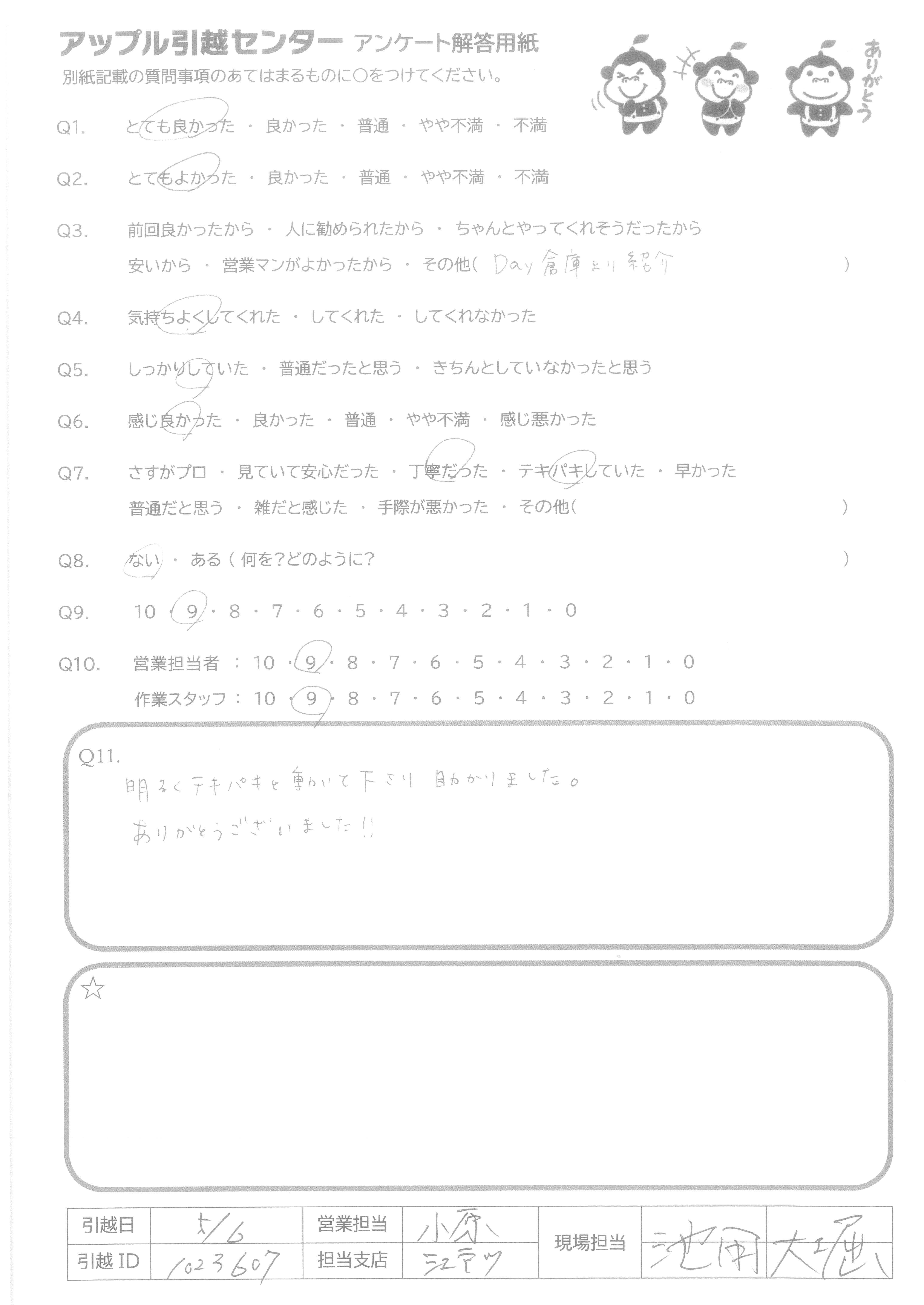 アップル引越センターでは、面映いお褒めの言葉も、胸に突き刺さるお叱りのコメントも、
