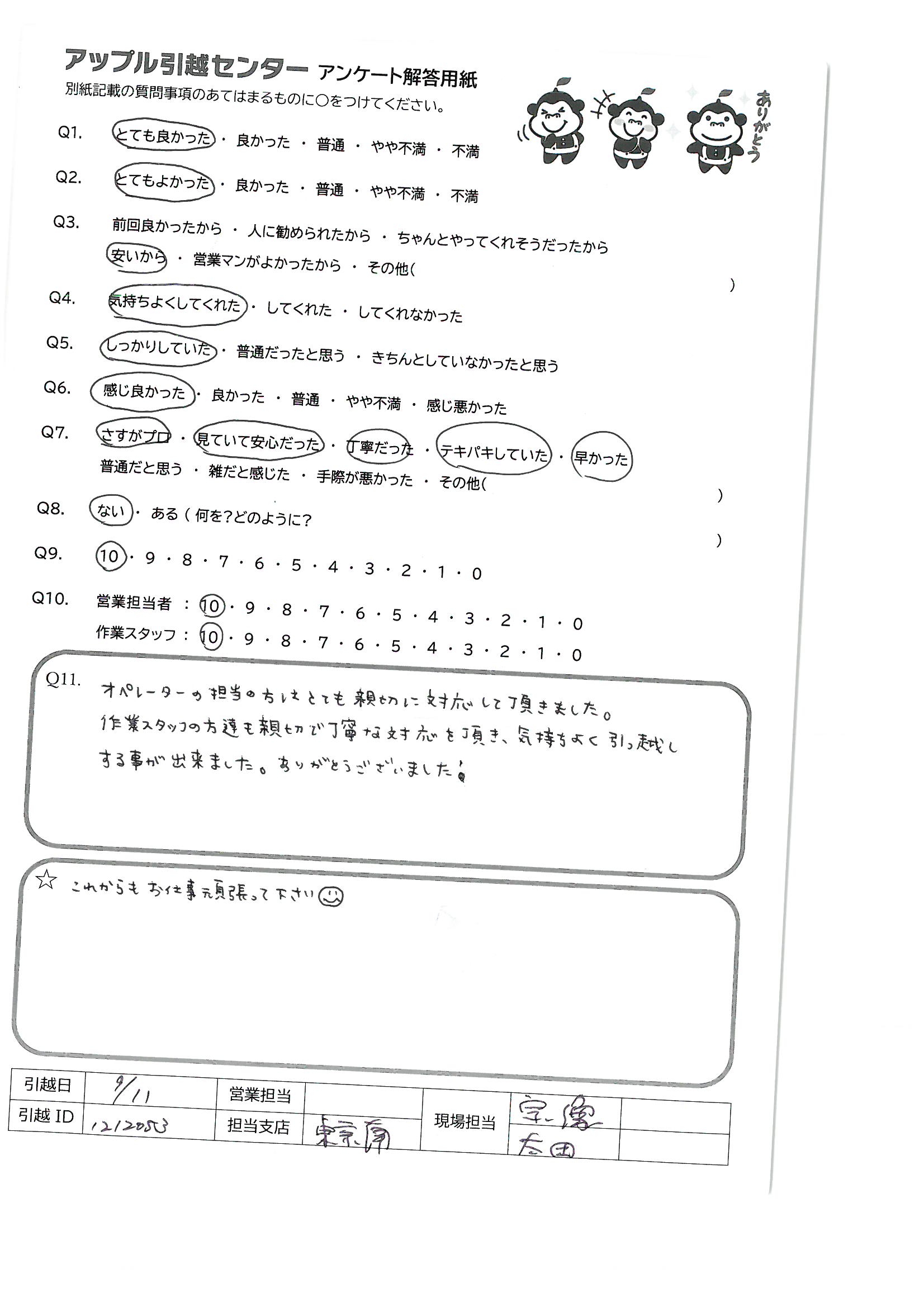 A.大変気持ちよくご対応いただけたので、また引っ越しの際には利用させて頂ければと思います。