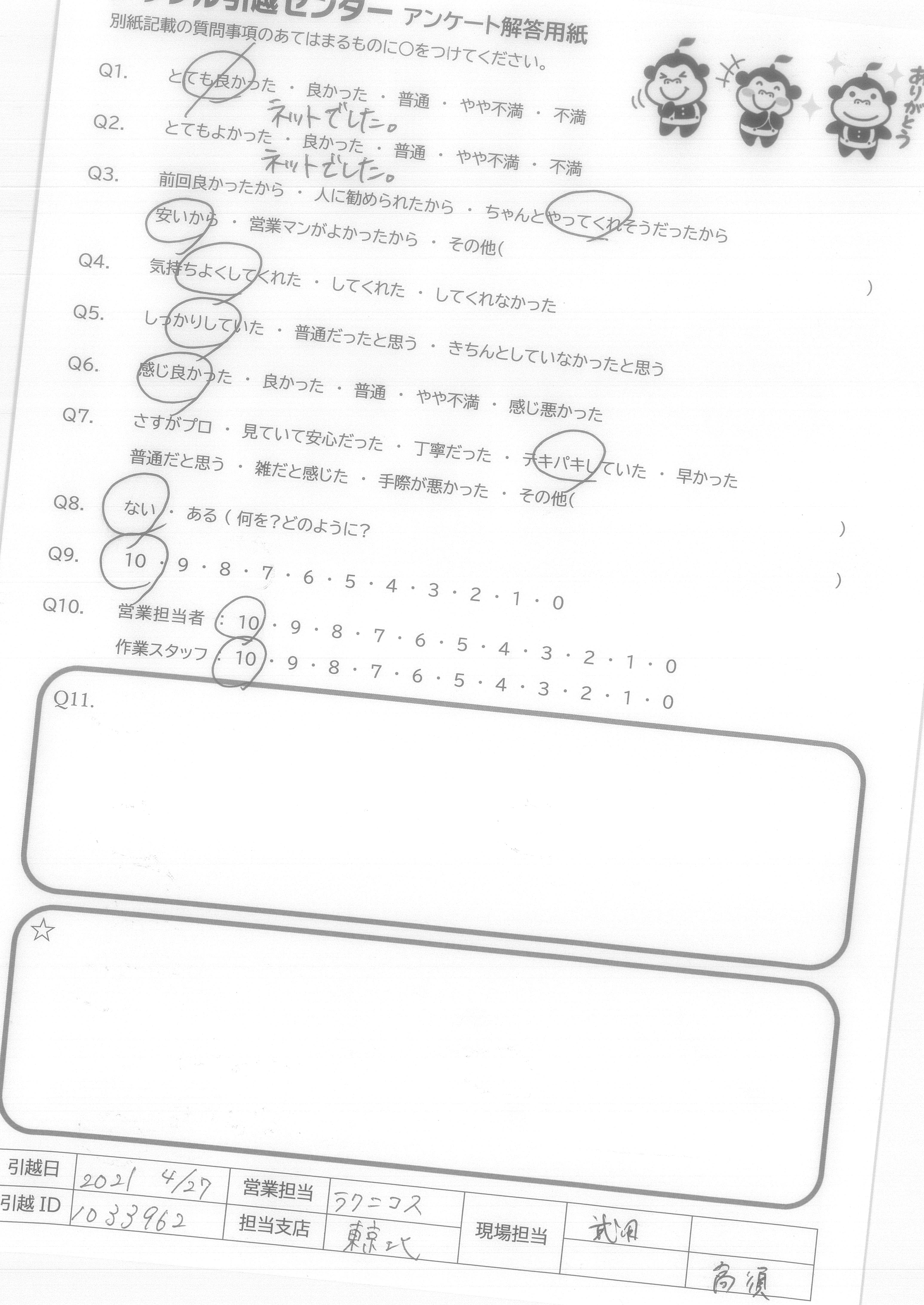 引越し日:2021年04月27日 エリア:東京都杉並区