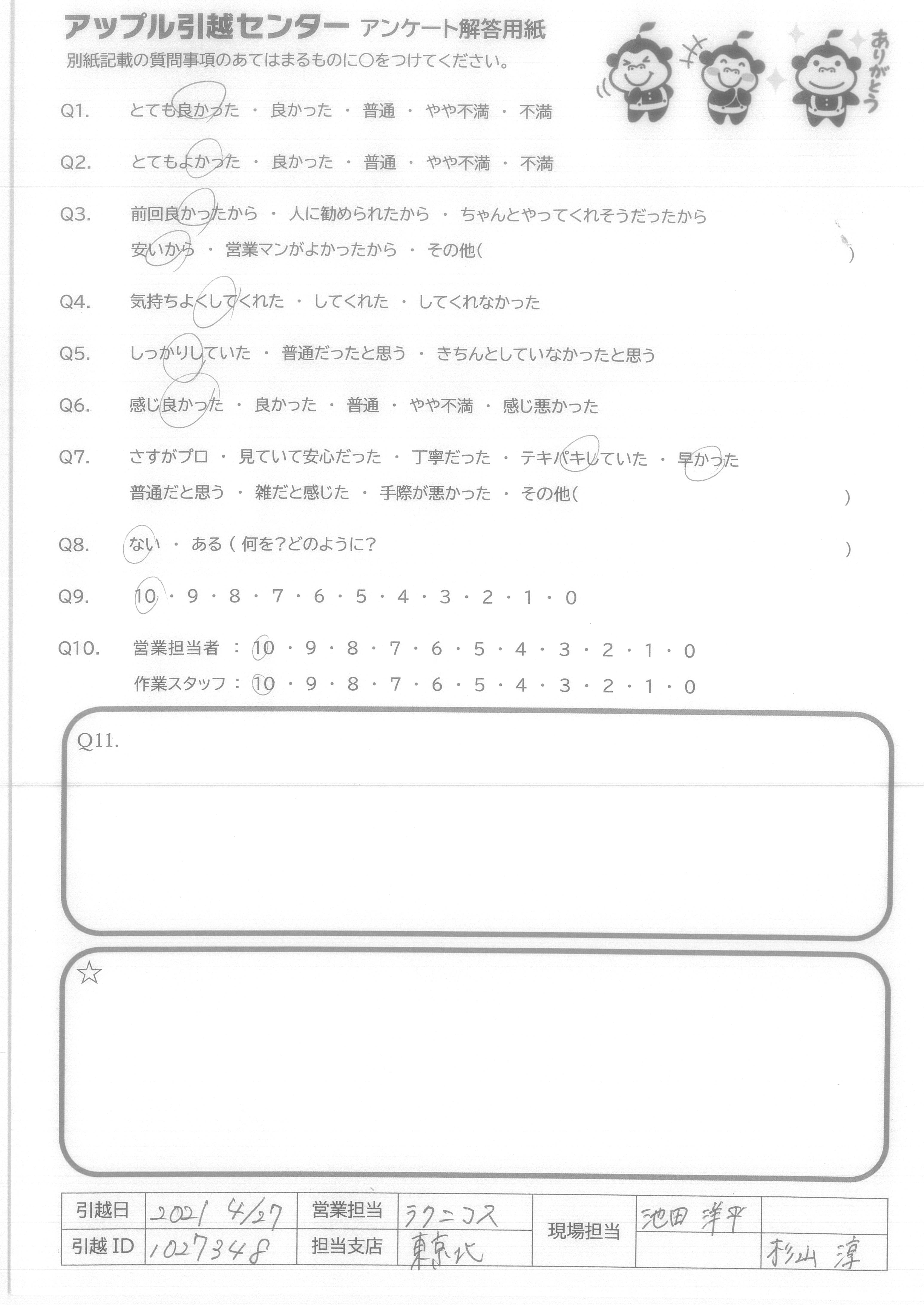 引越し日:2021年04月27日 エリア:東京都豊島区