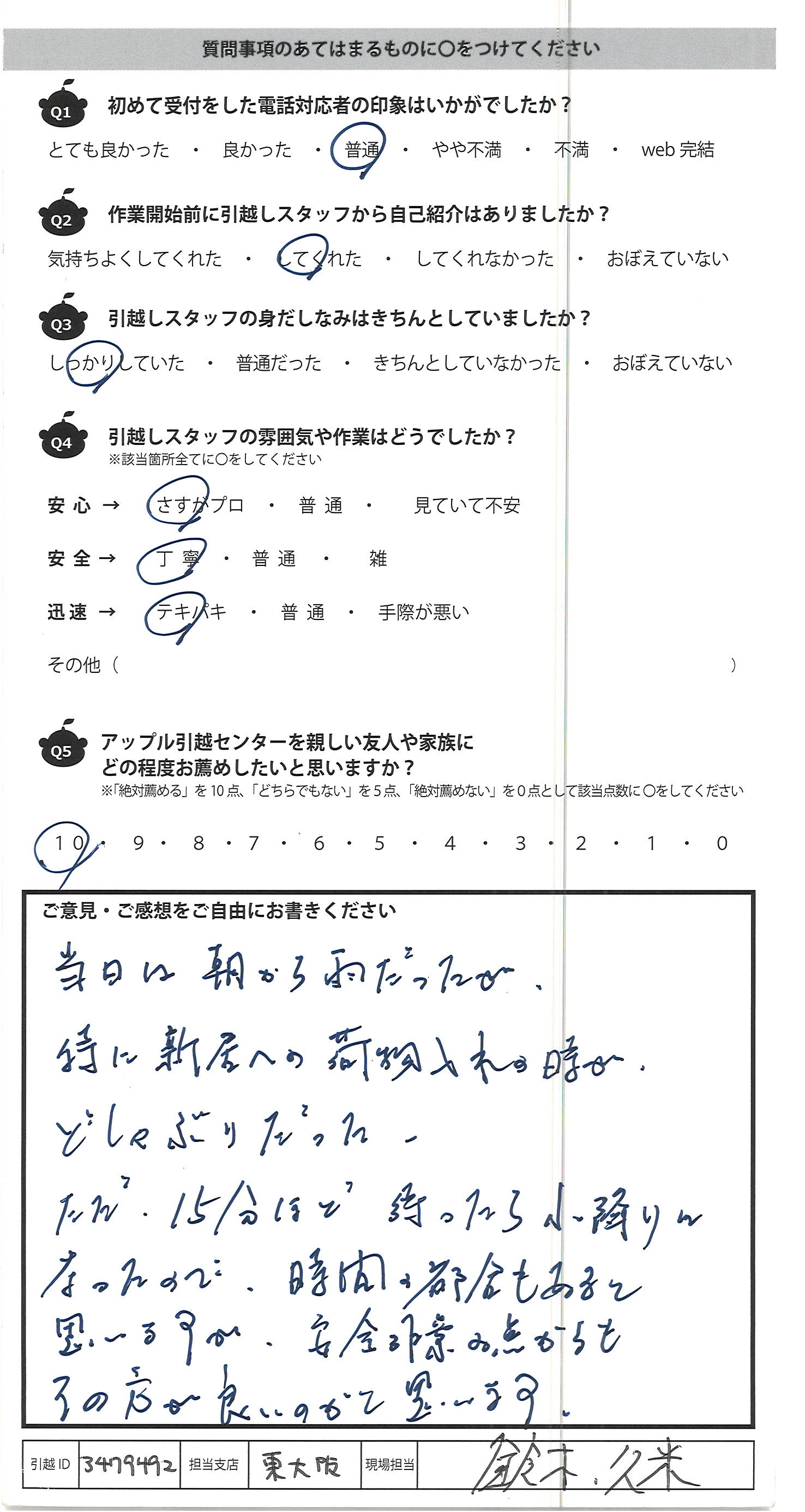 アップル引越センターでは、面映いお褒めの言葉も、胸に突き刺さるお叱りのコメントも、