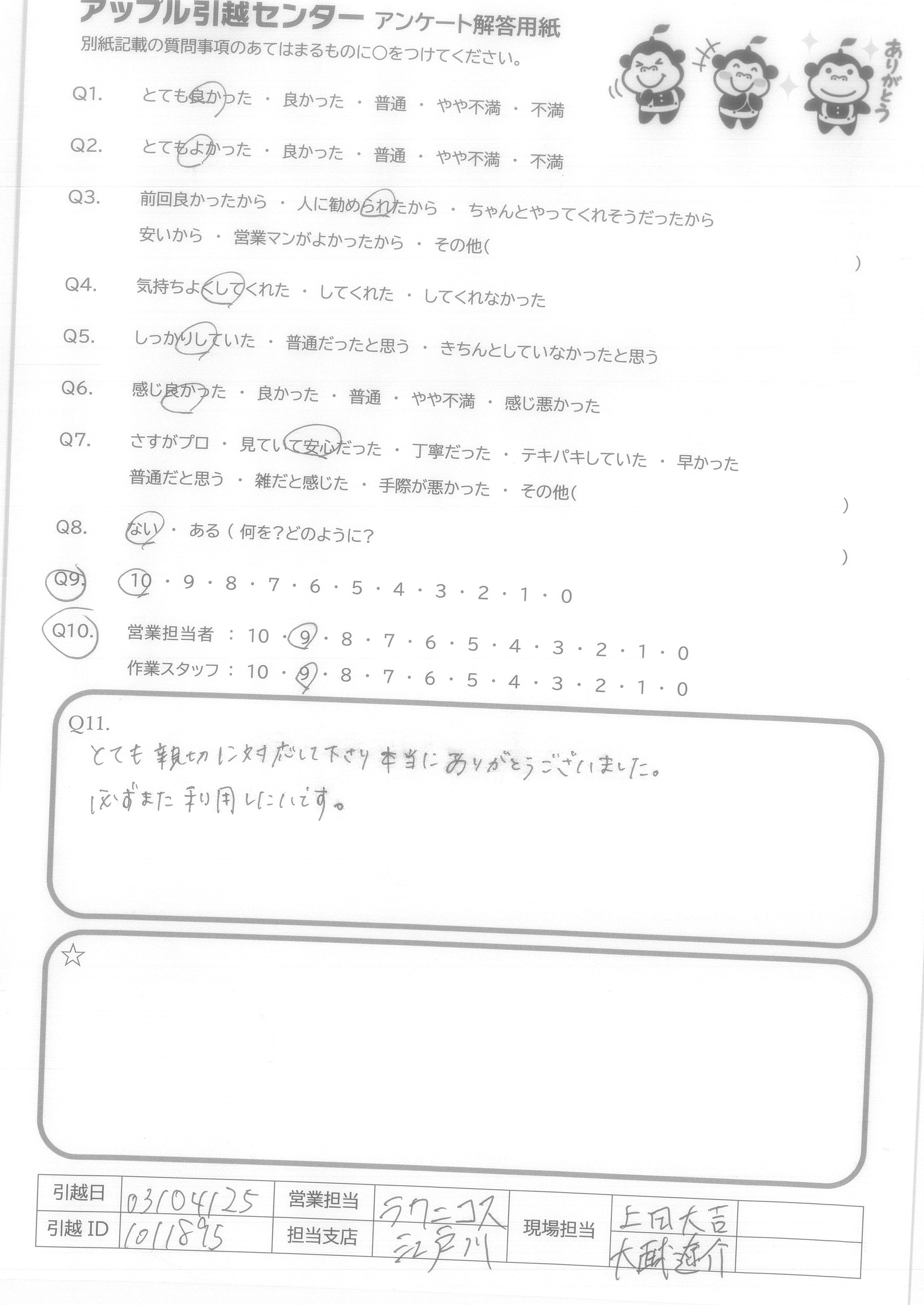 A.次に引っ越す際も、絶対にお願いします!!! 本当にお世話になりました!!ありがとうございました!!