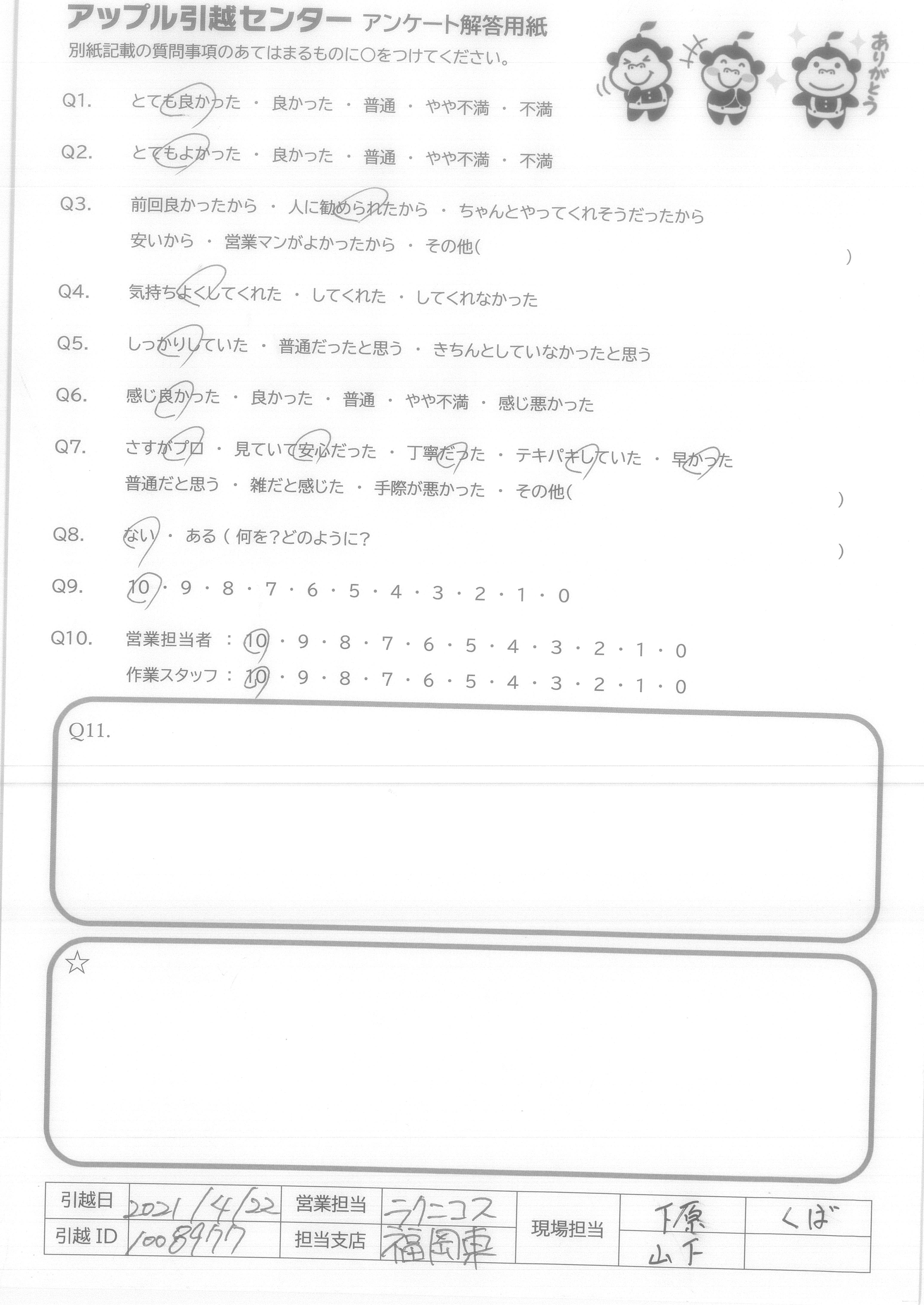 引越し日:2021年04月22日 エリア:福岡県福岡市博多区
