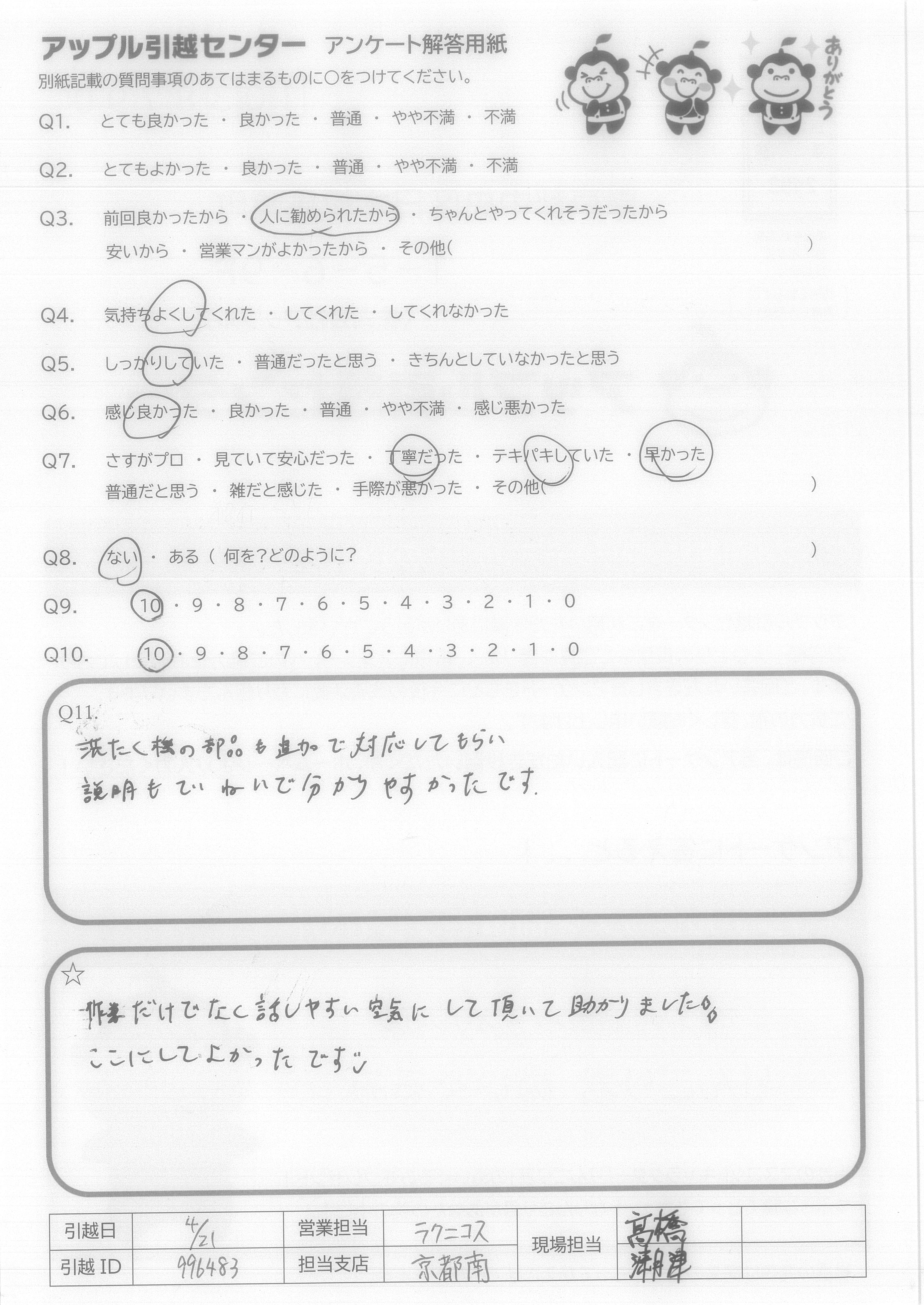 引越し日:2021年04月21日 エリア:京都府宇治市