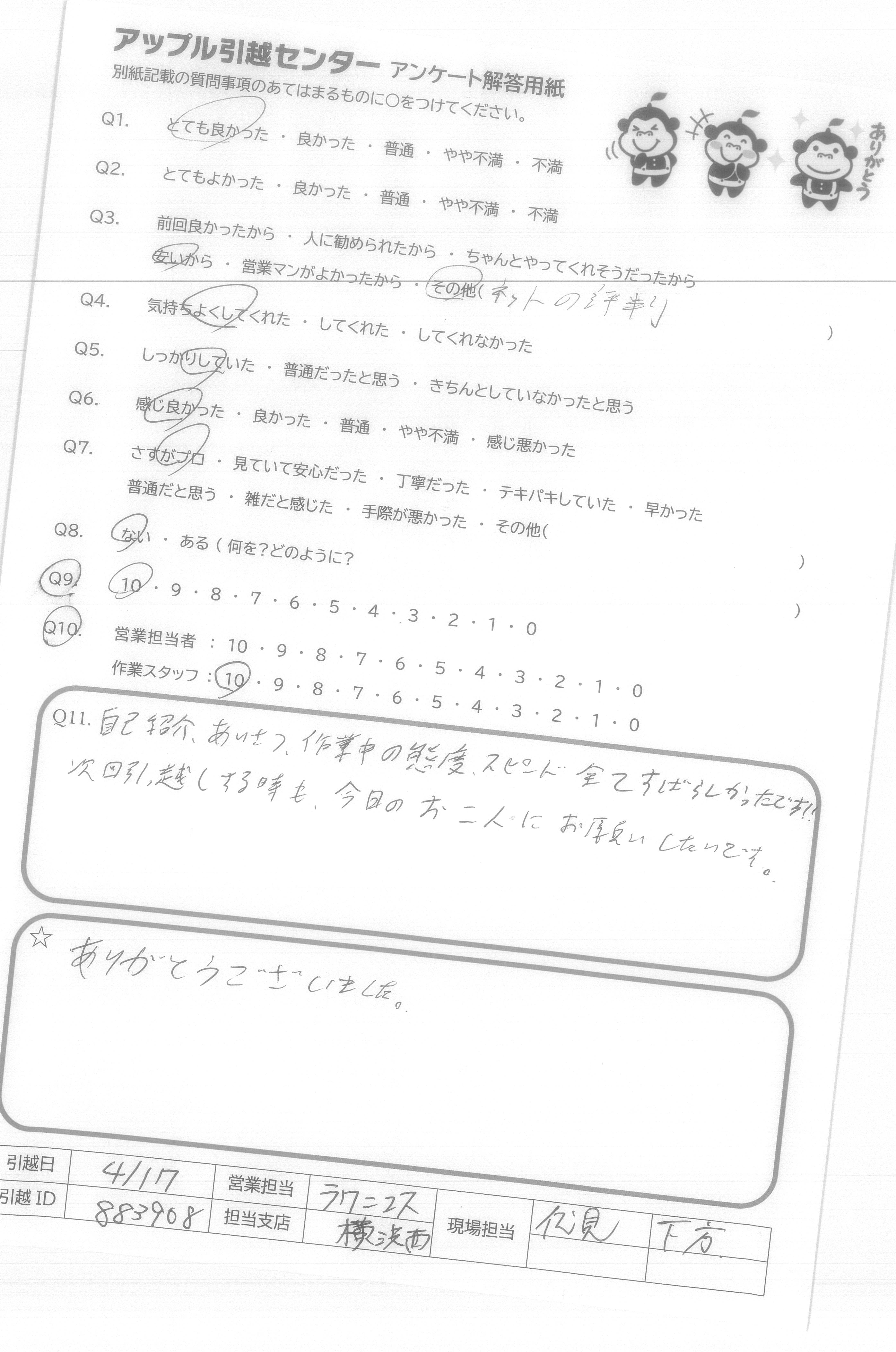 引越し日:2021年04月17日 エリア:神奈川県横浜市鶴見区