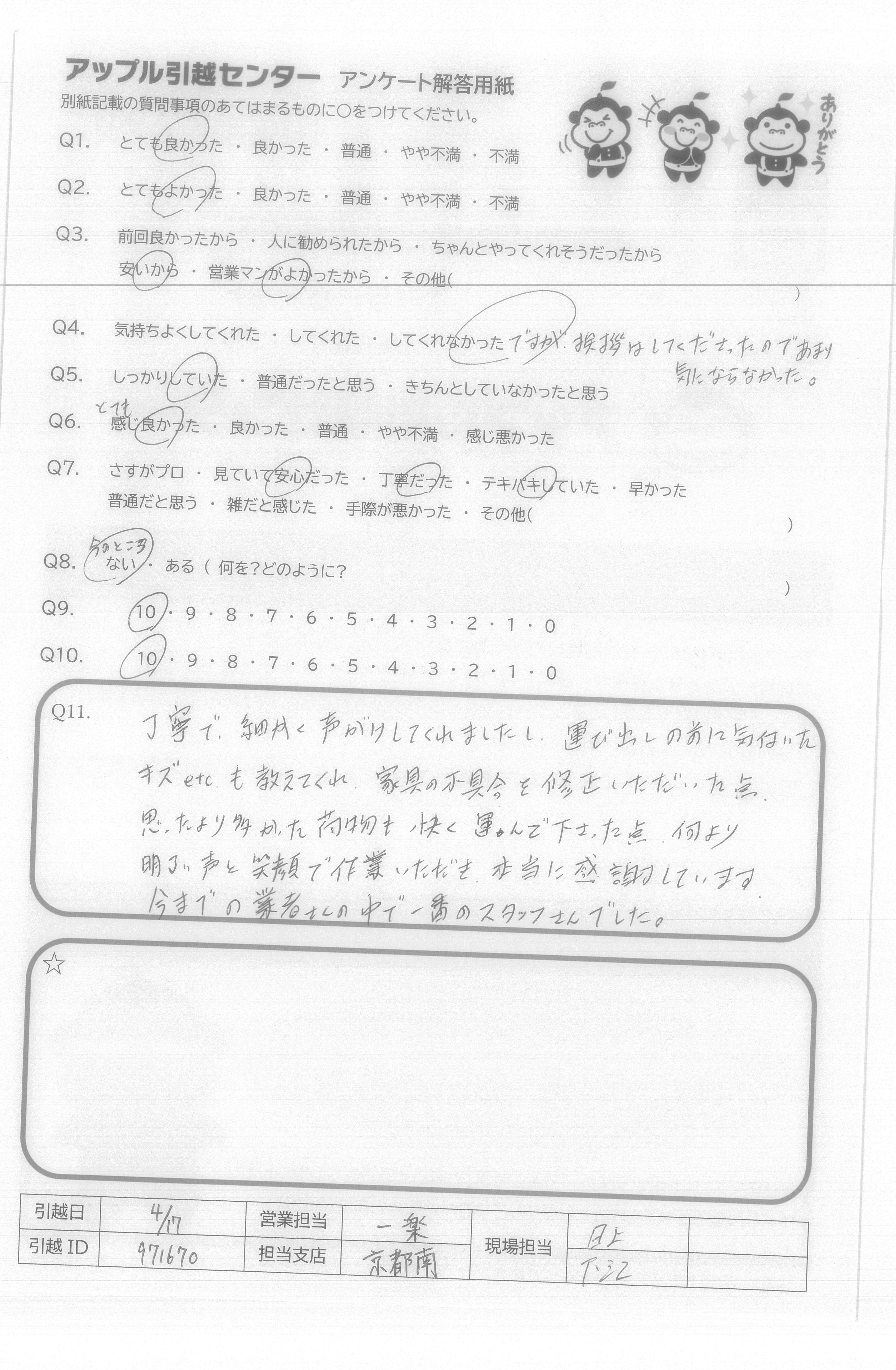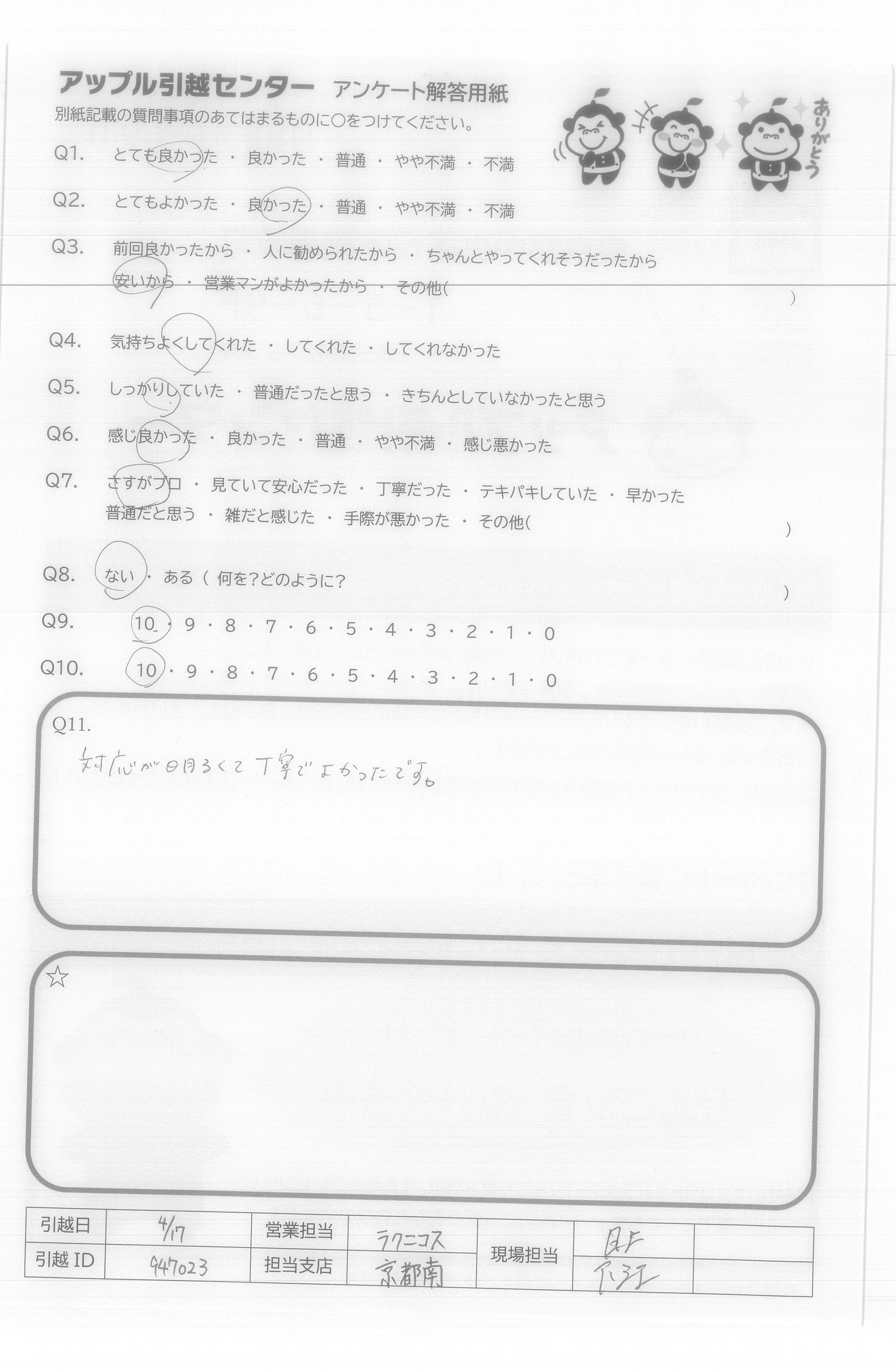 引越し日:2021年04月17日 エリア:京都府京都市下京区