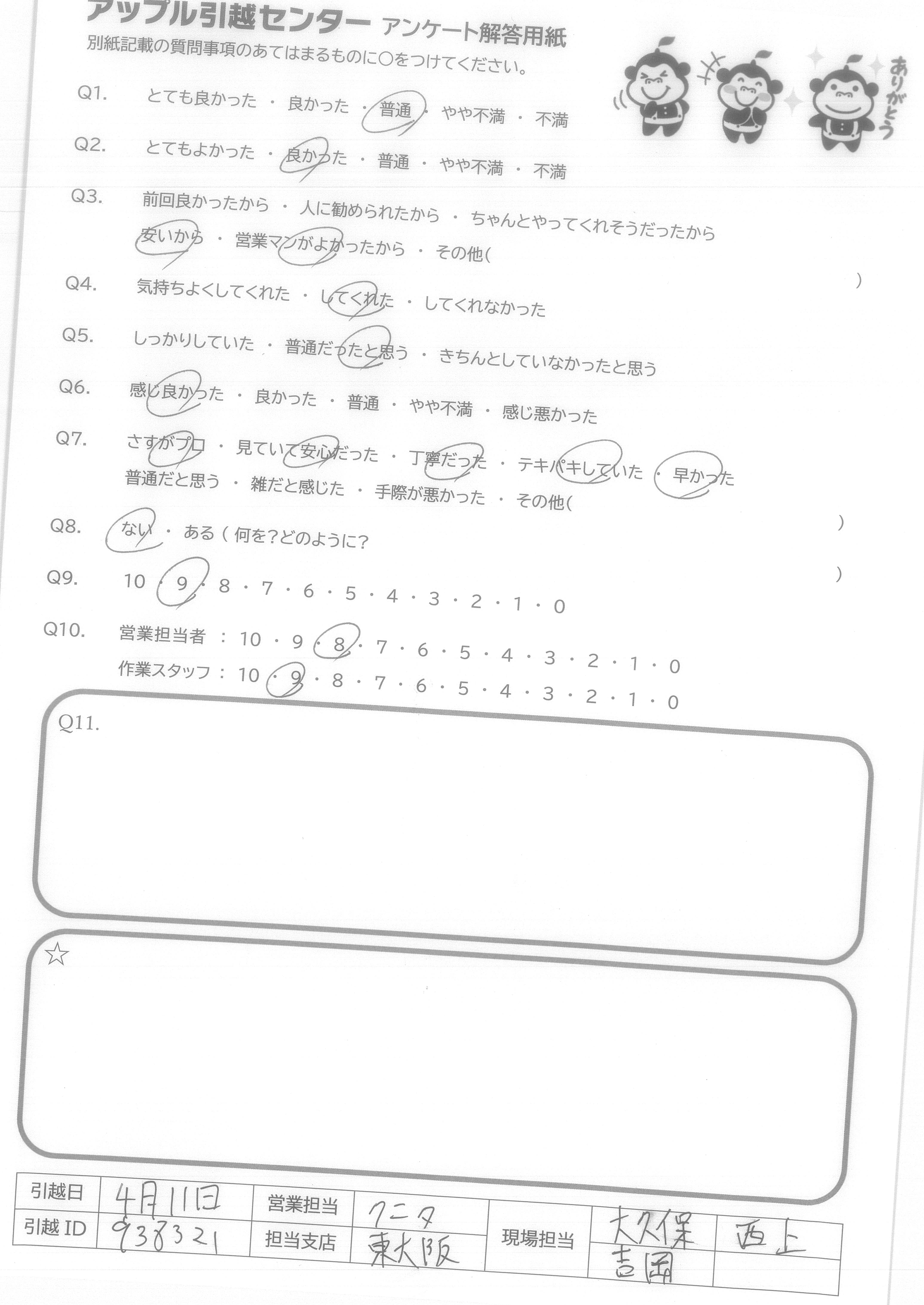 引越し日:2021年04月11日 エリア:大阪府大阪市生野区