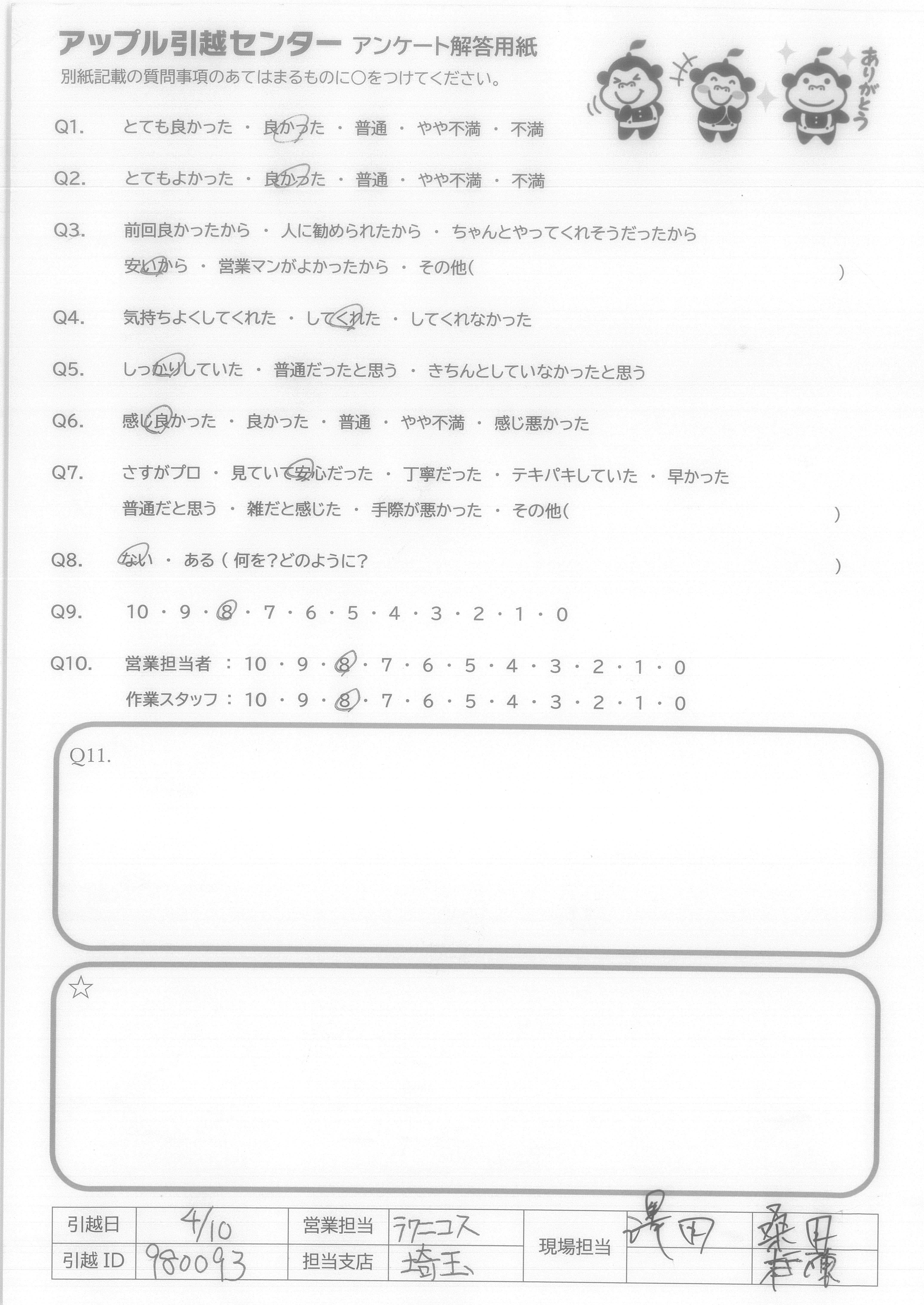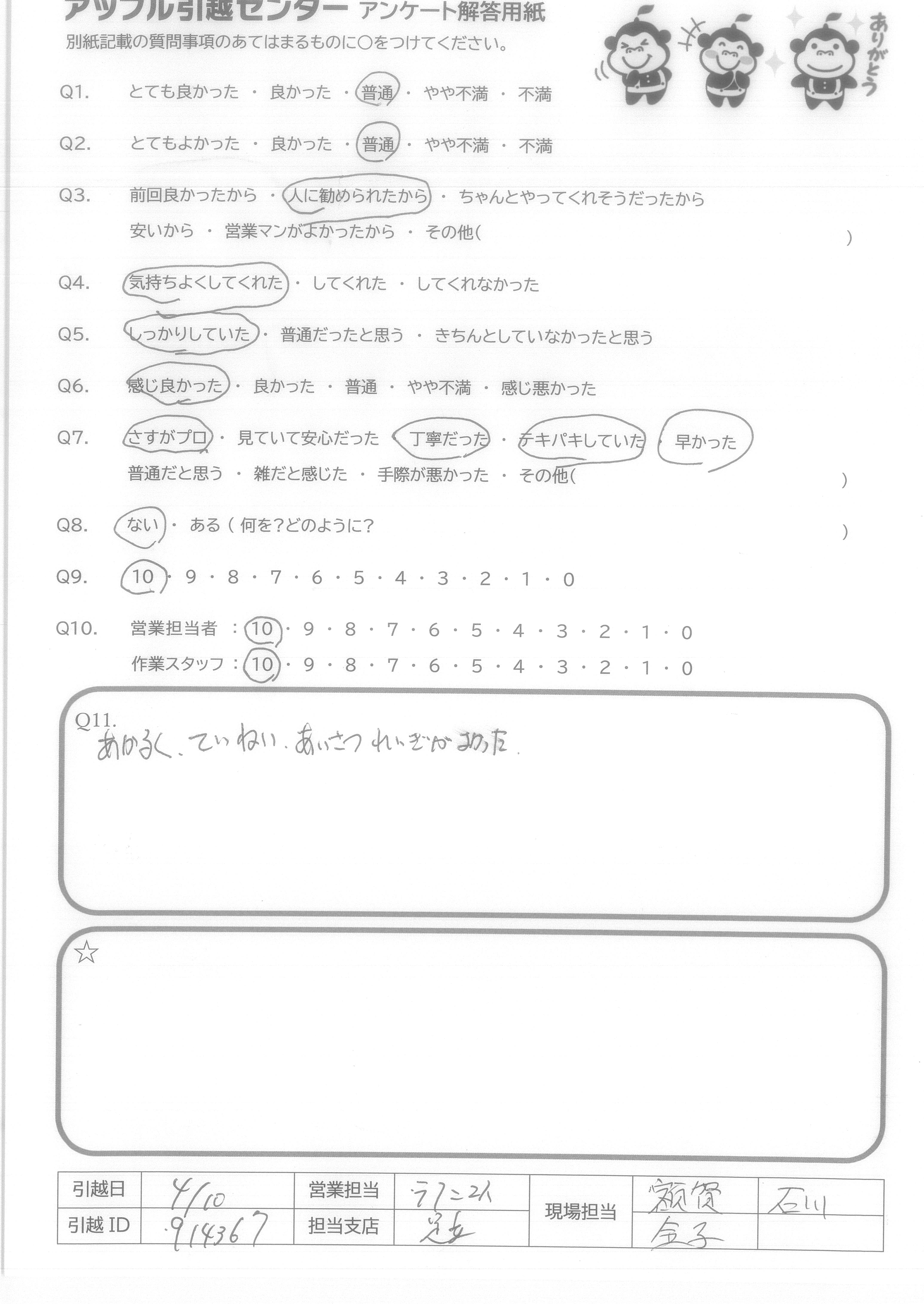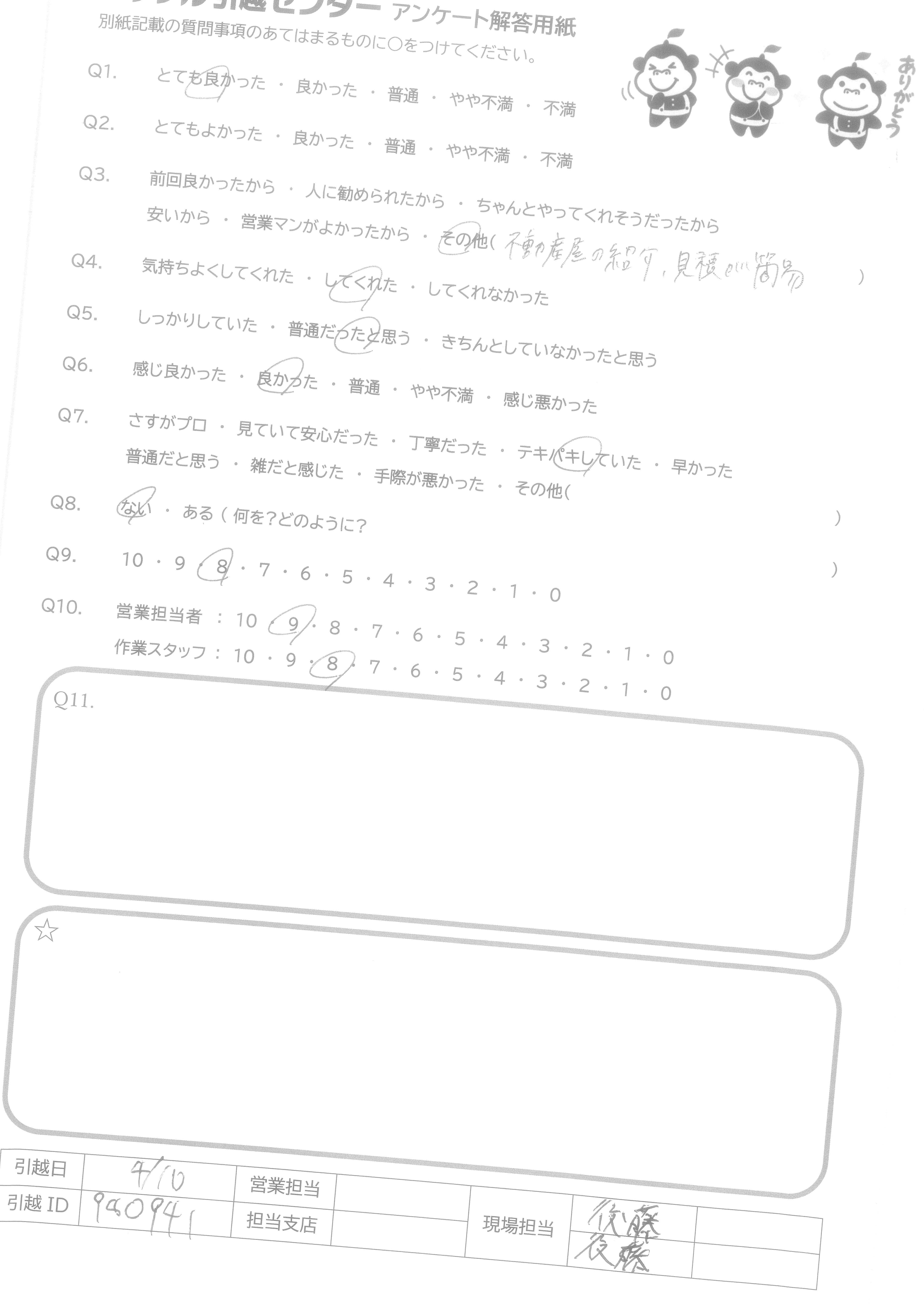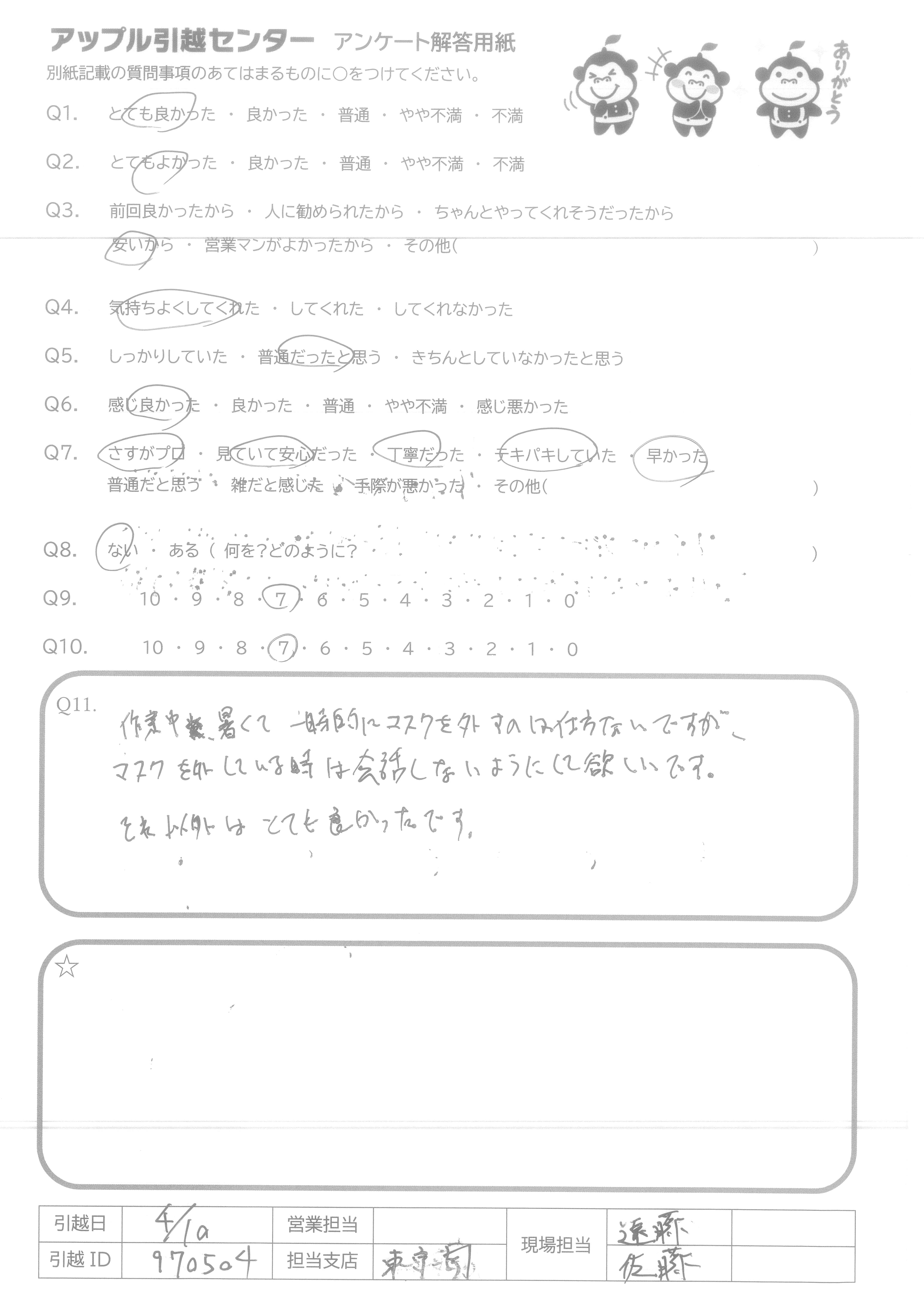 アップル引越センターでは、面映いお褒めの言葉も、胸に突き刺さるお叱りのコメントも、