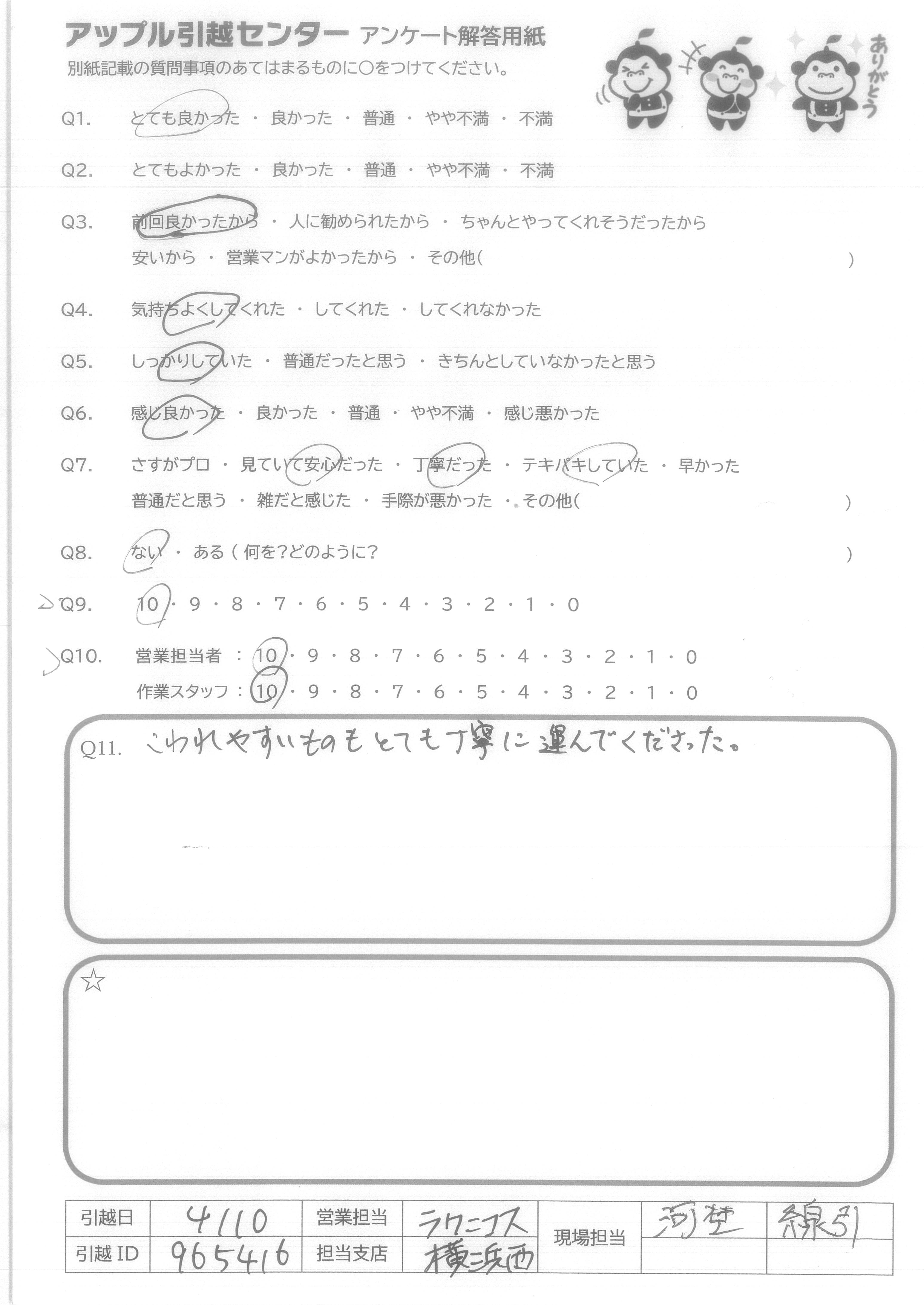 引越し日:2021年04月10日 エリア:神奈川県横浜市港北区