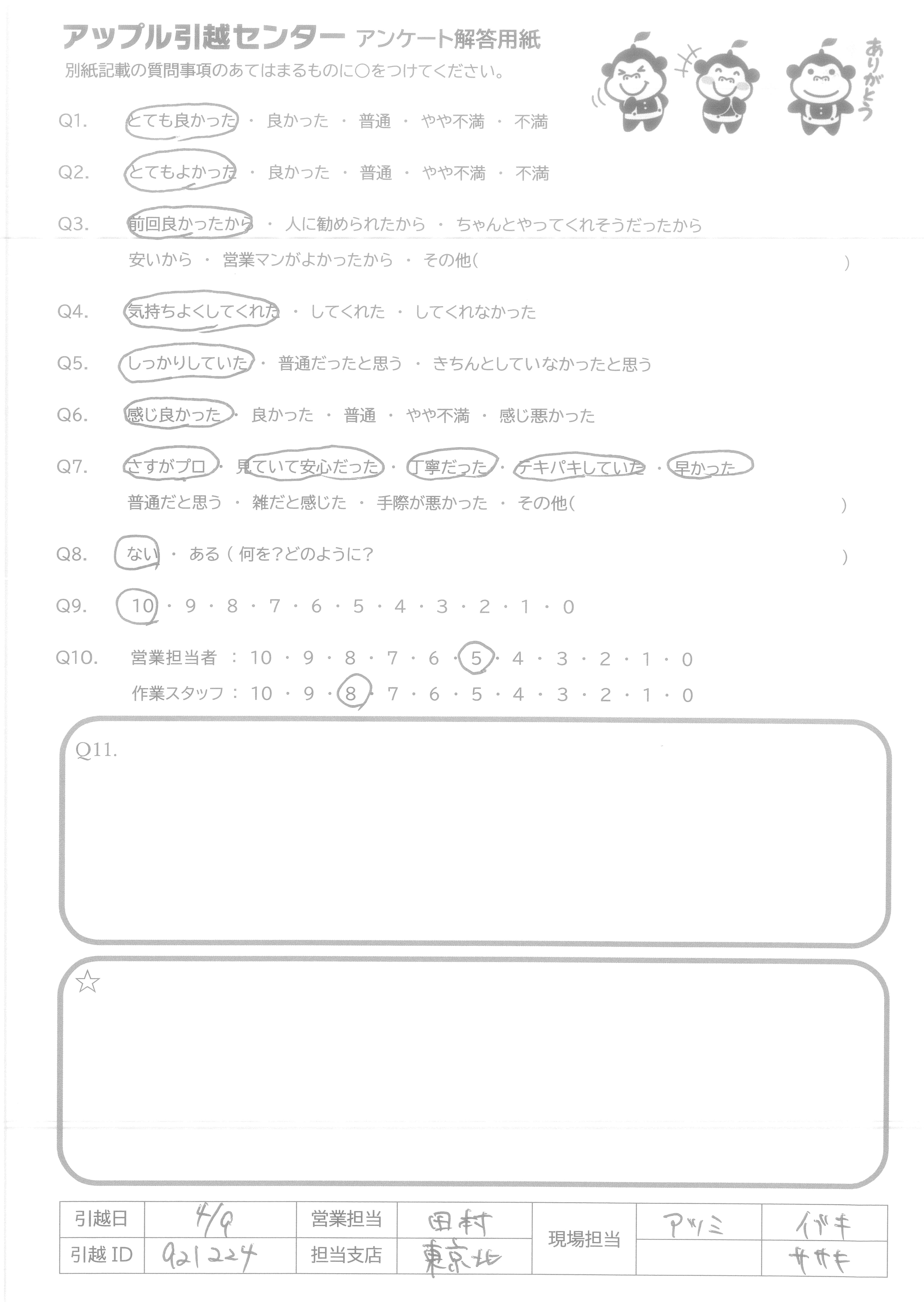 アップル引越センターでは、面映いお褒めの言葉も、胸に突き刺さるお叱りのコメントも、