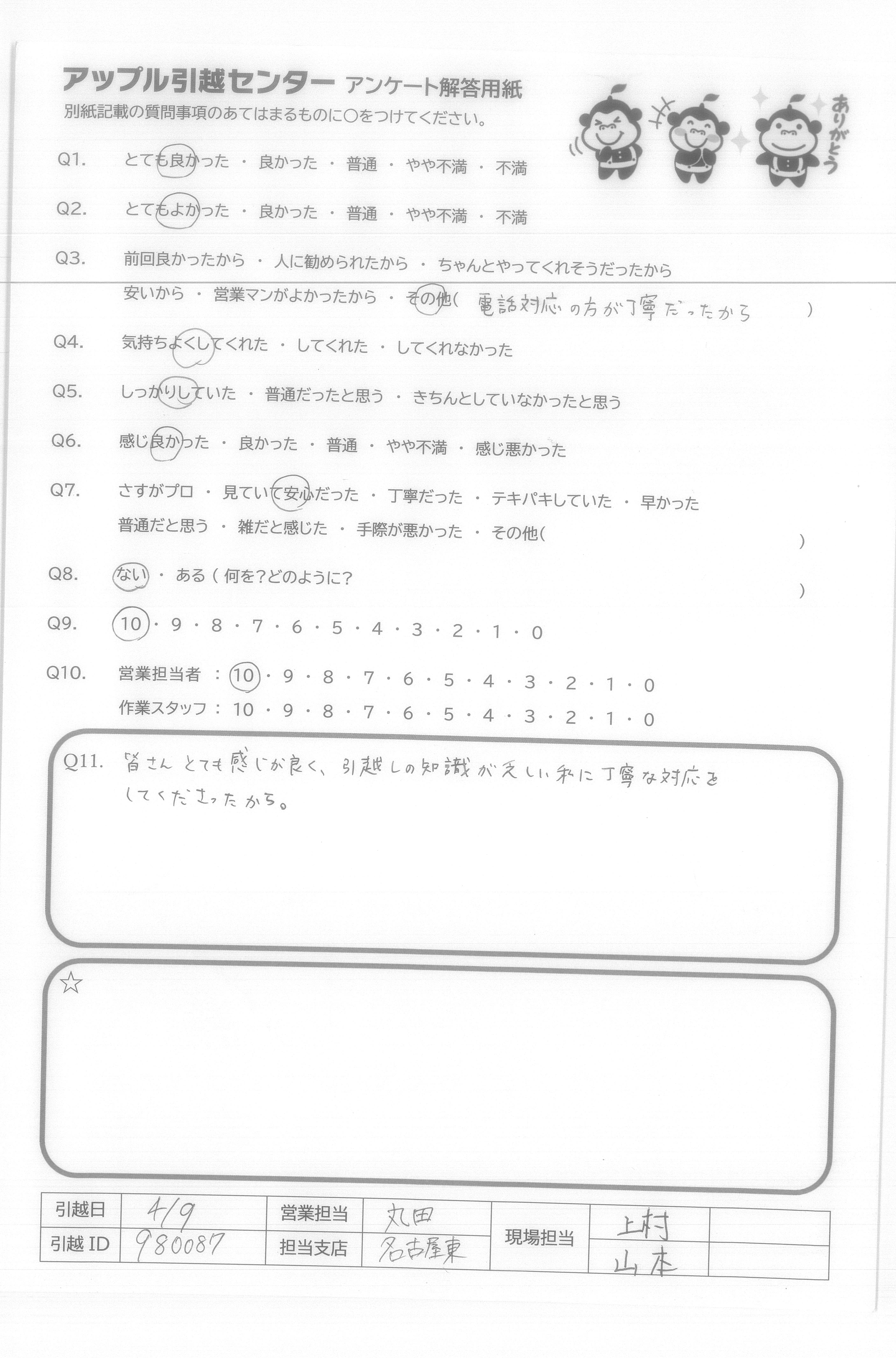 引越し日:2021年04月09日 エリア:愛知県名古屋市緑区