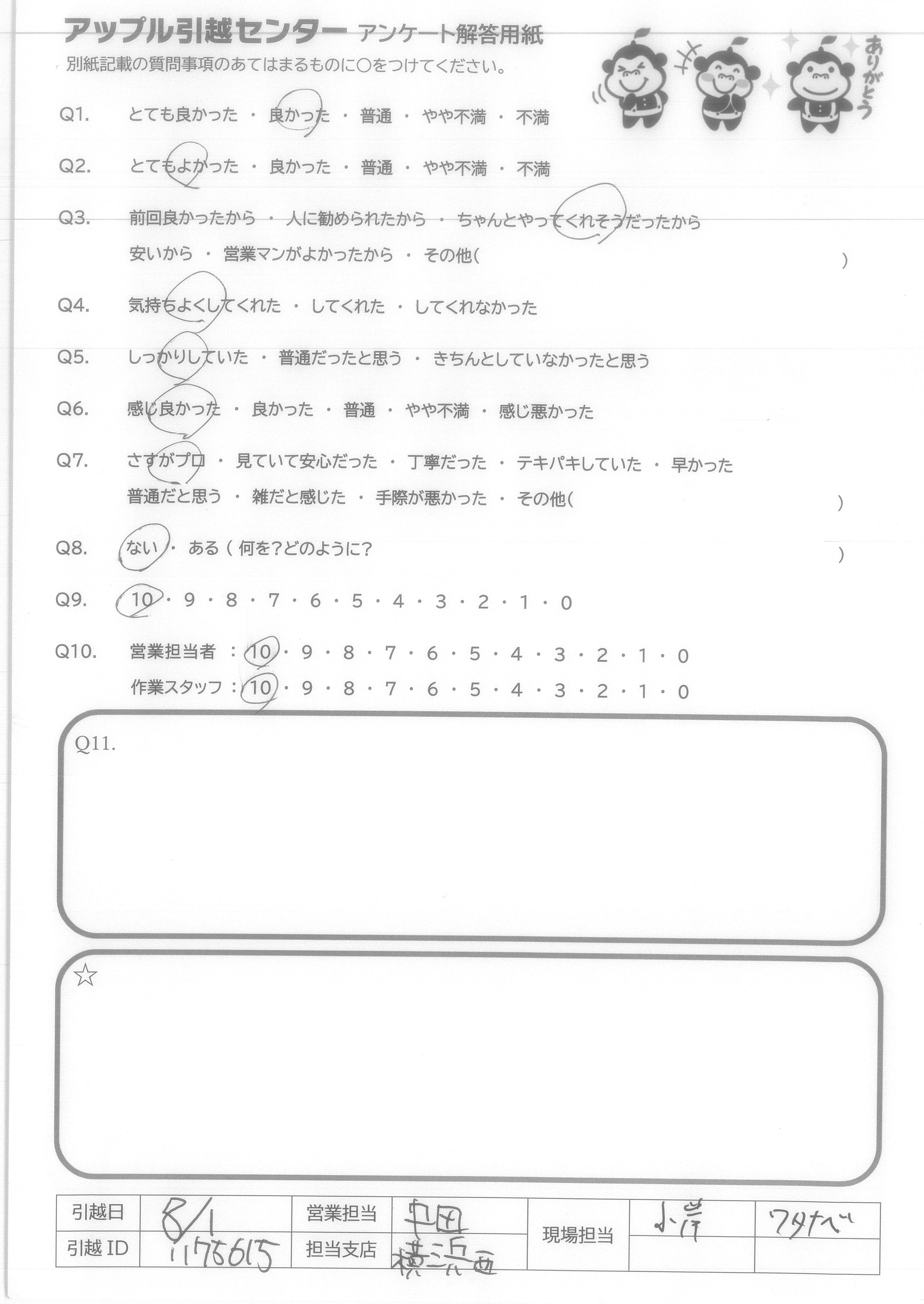 引越し日:2021年08月01日 エリア:神奈川県横浜市港北区