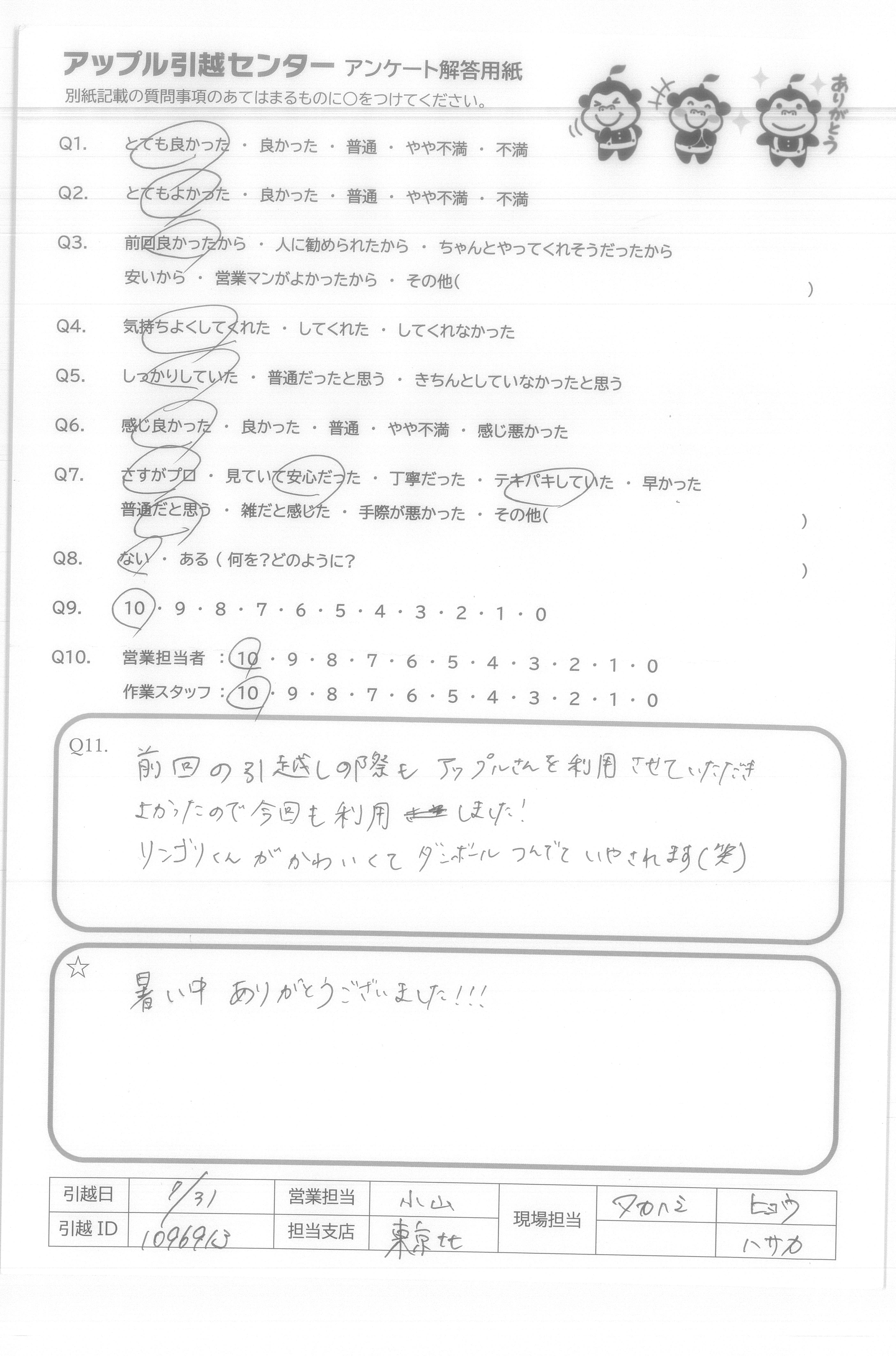 A.ハリムラさん、タカハシさんありがとうございました! ダンボールの開梱も終わり新生活をスタートできました。 暑い中、本当にありがとうございました!