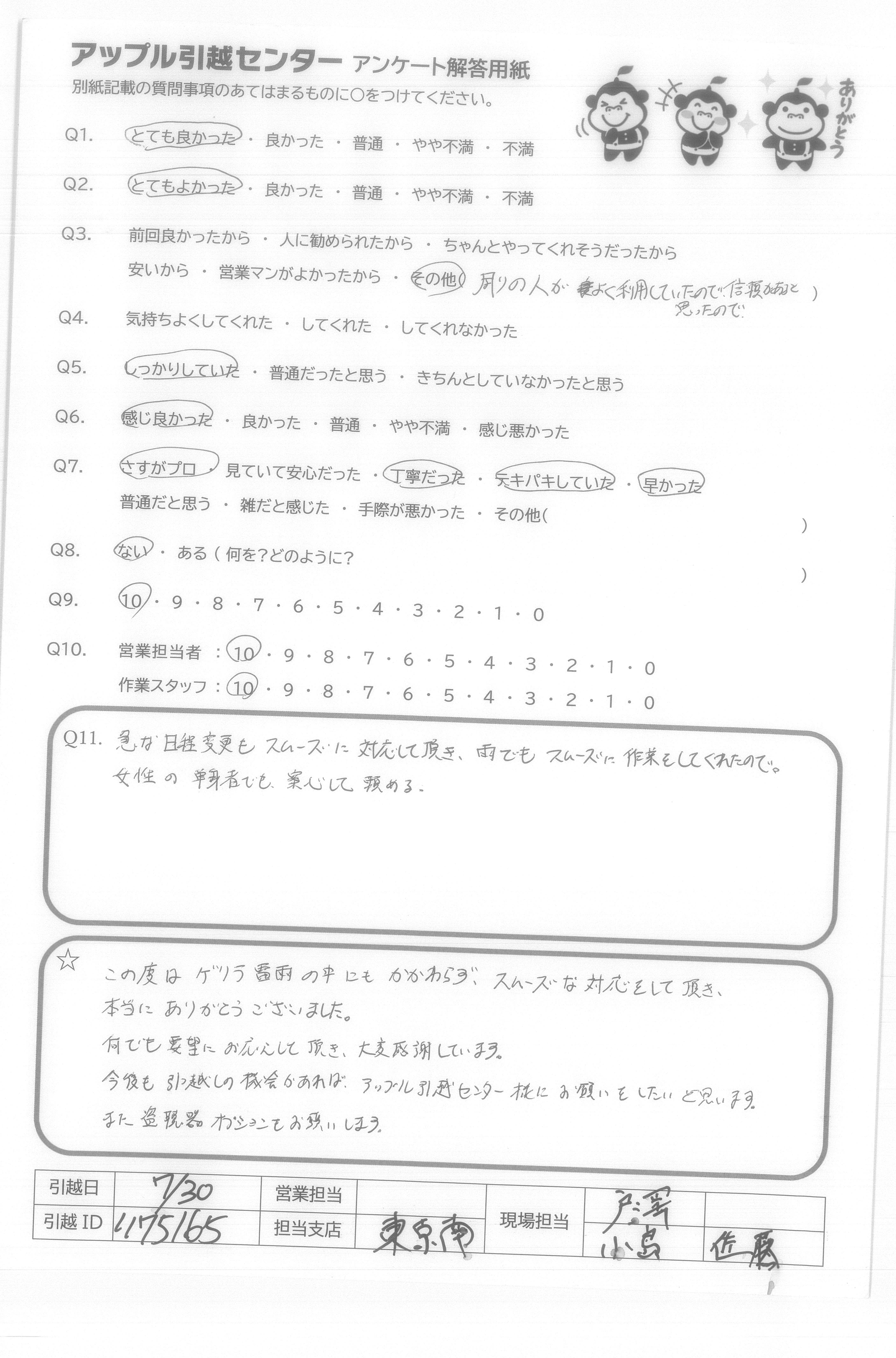 引越し日:2021年07月30日 エリア:東京都江東区