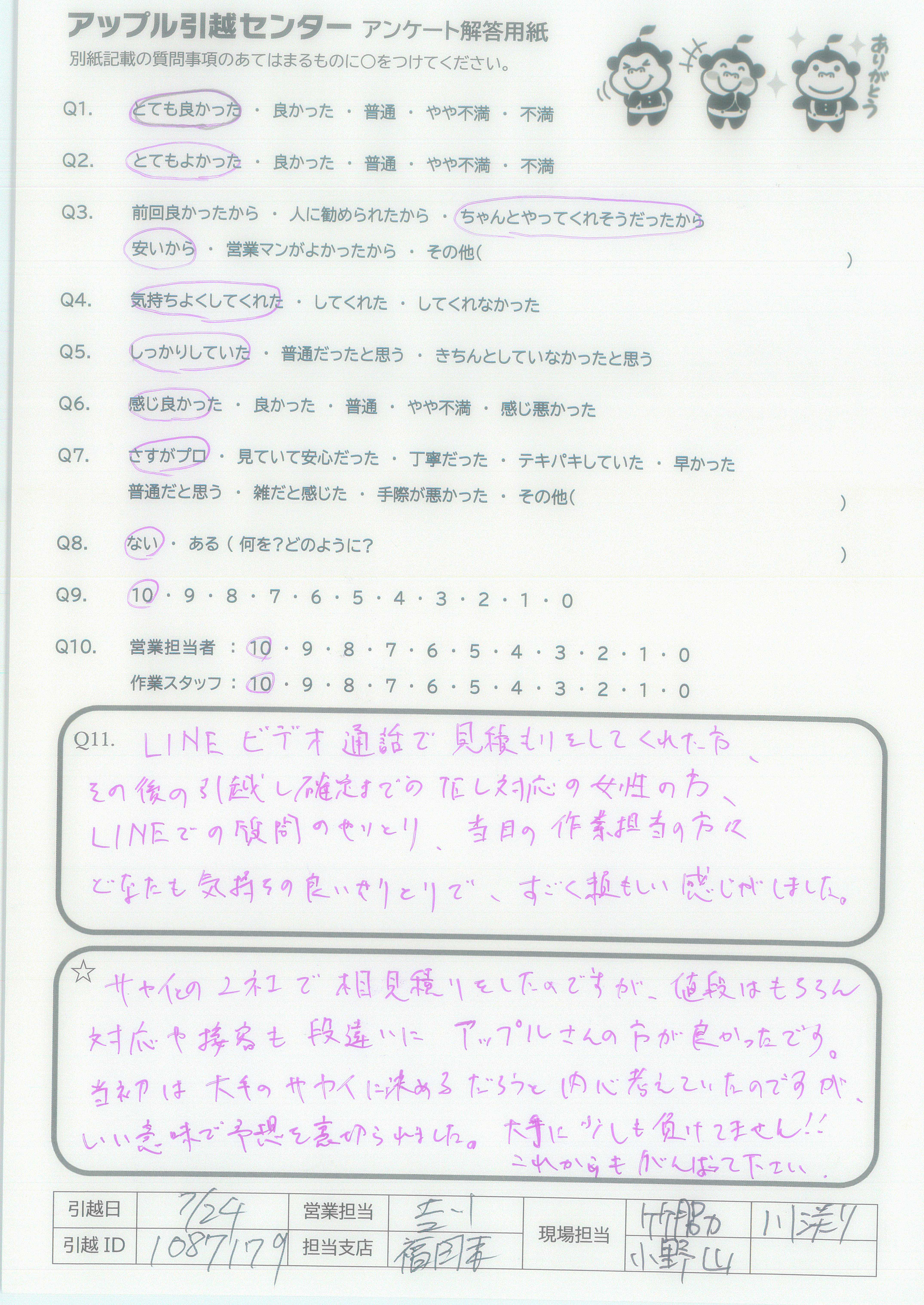 アップル引越センターでは、面映いお褒めの言葉も、胸に突き刺さるお叱りのコメントも、