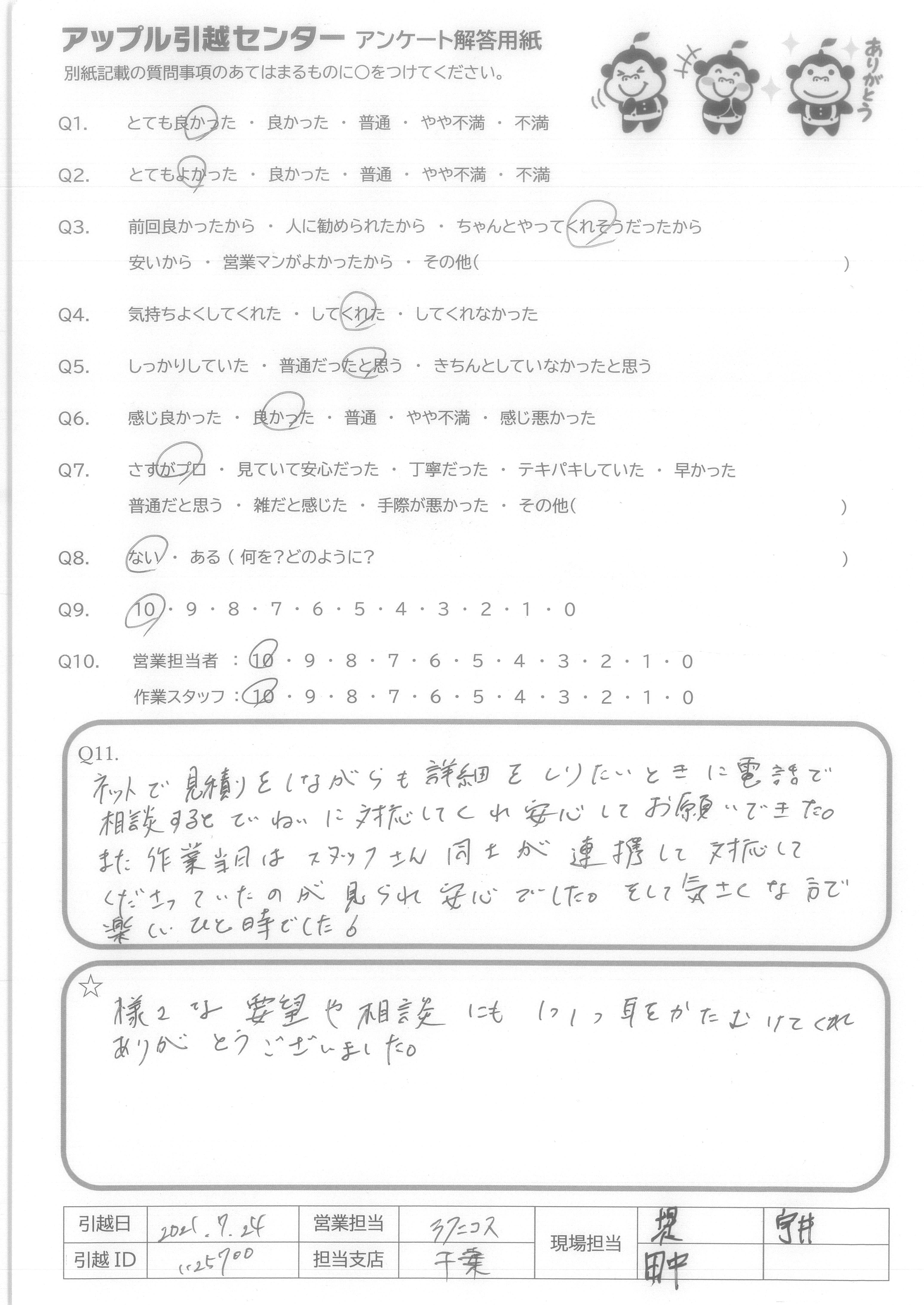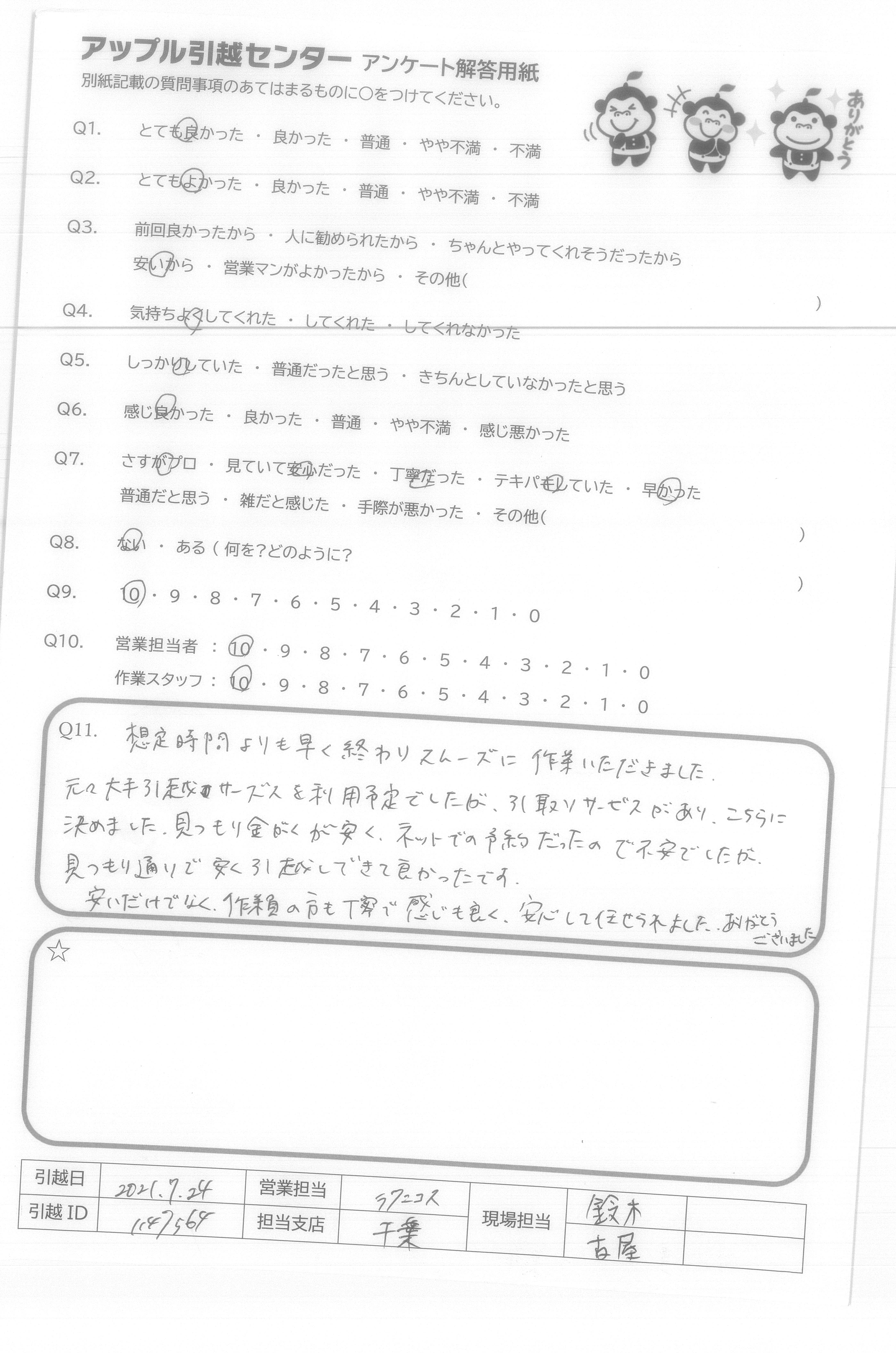 引越し日:2021年07月24日 エリア:千葉県市川市