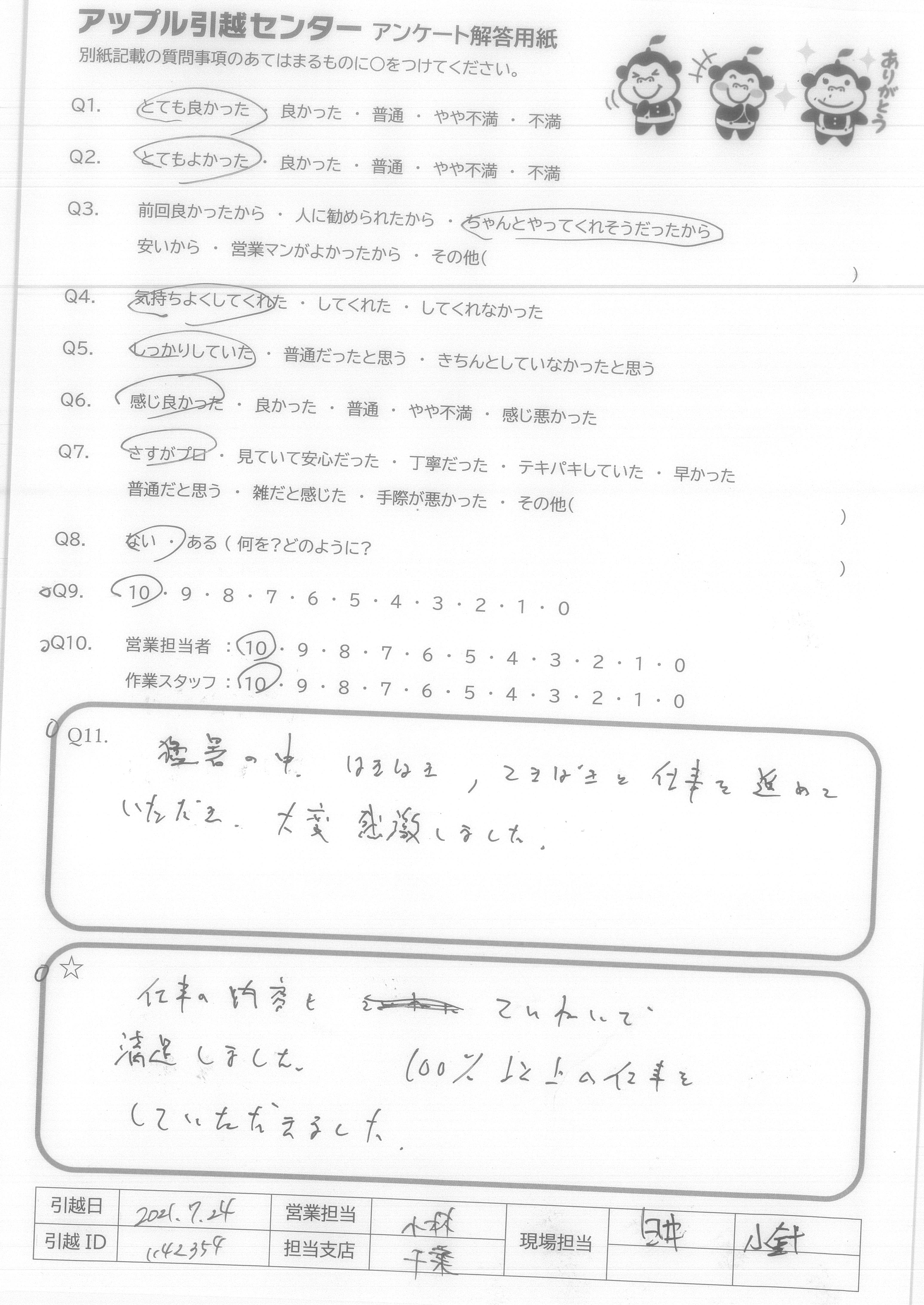 引越し日:2021年07月24日 エリア:東京都江東区