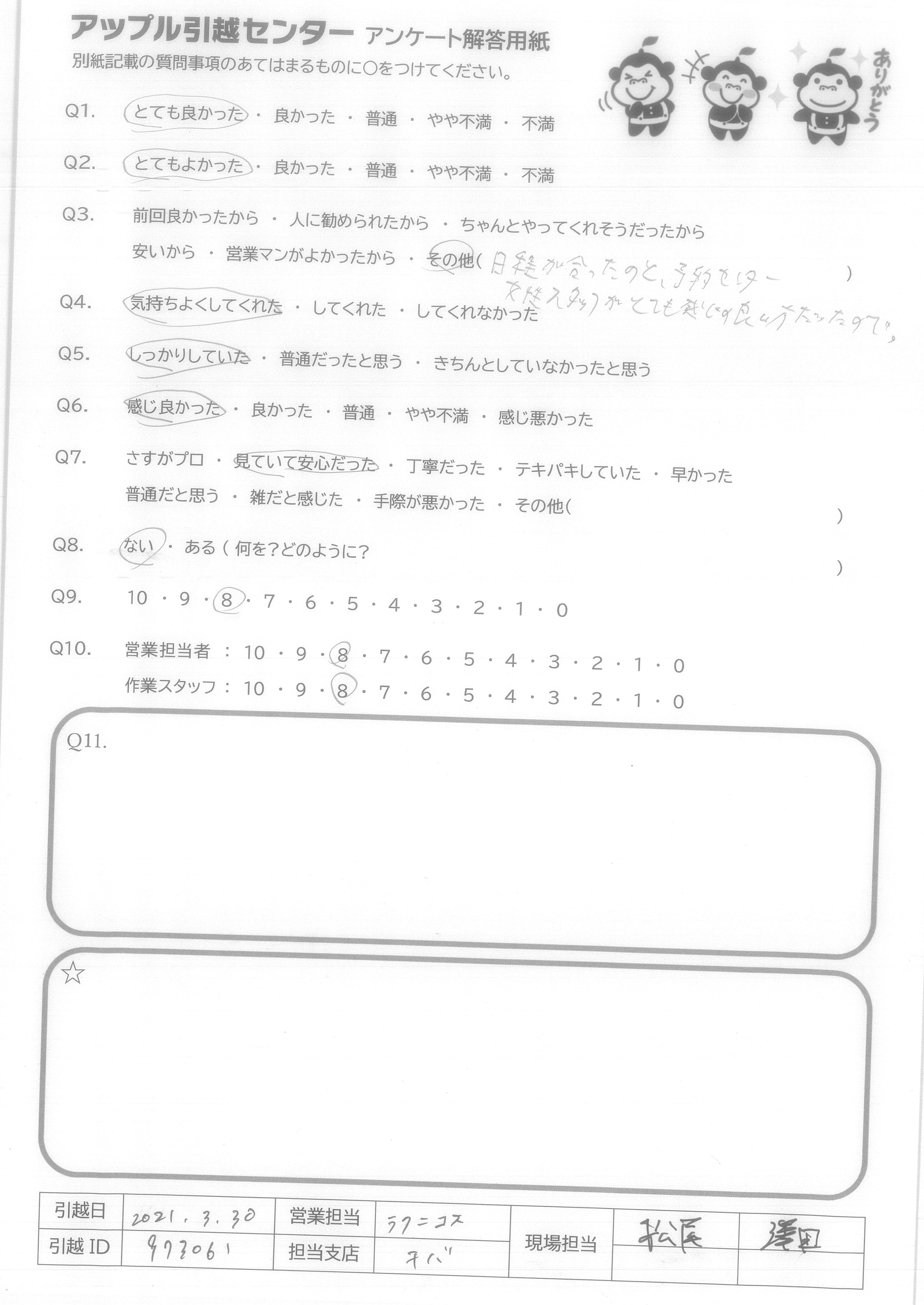 引越し日:2021年03月30日 エリア:千葉県松戸市