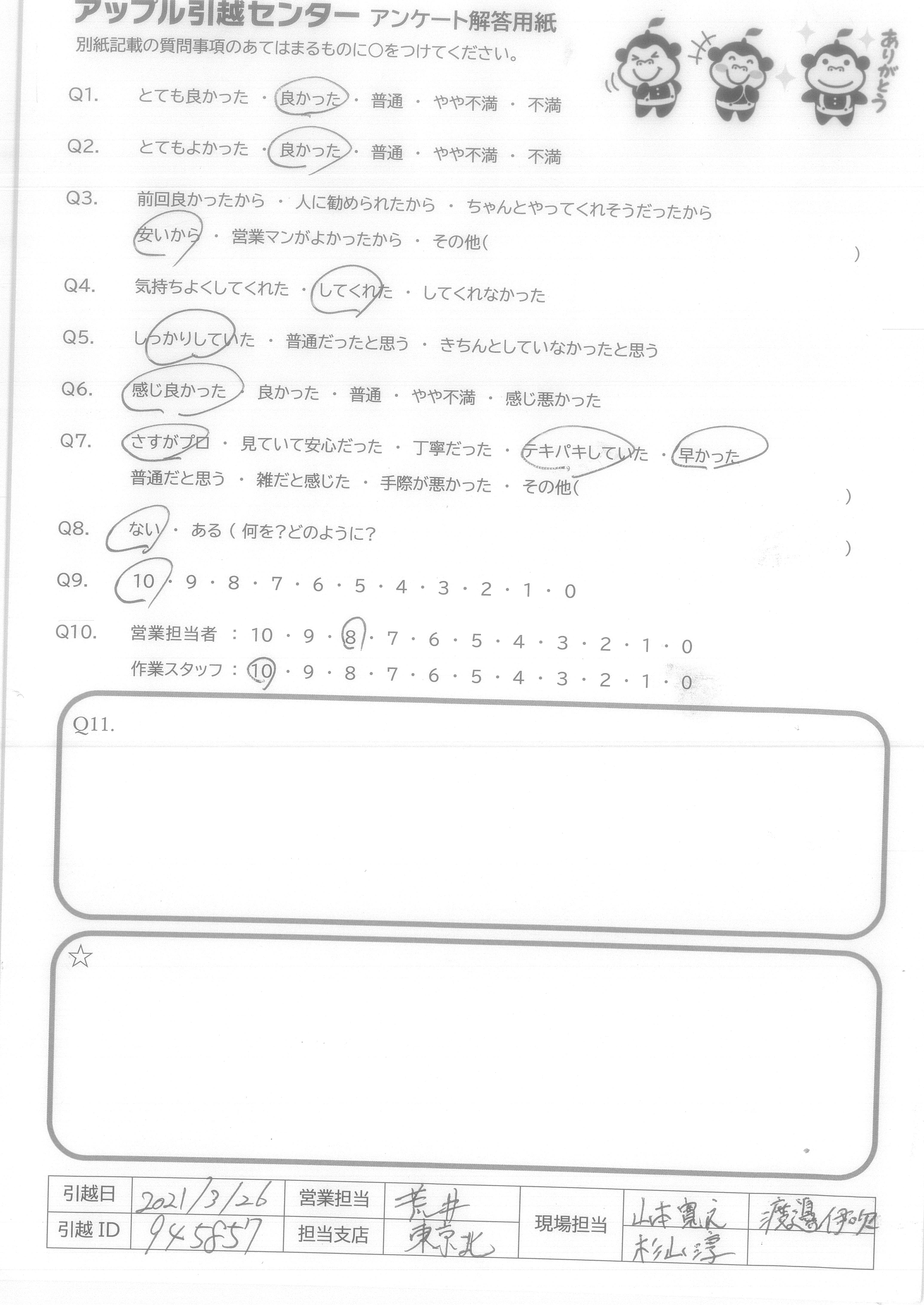 引越し日:2021年03月26日 エリア:東京都練馬区