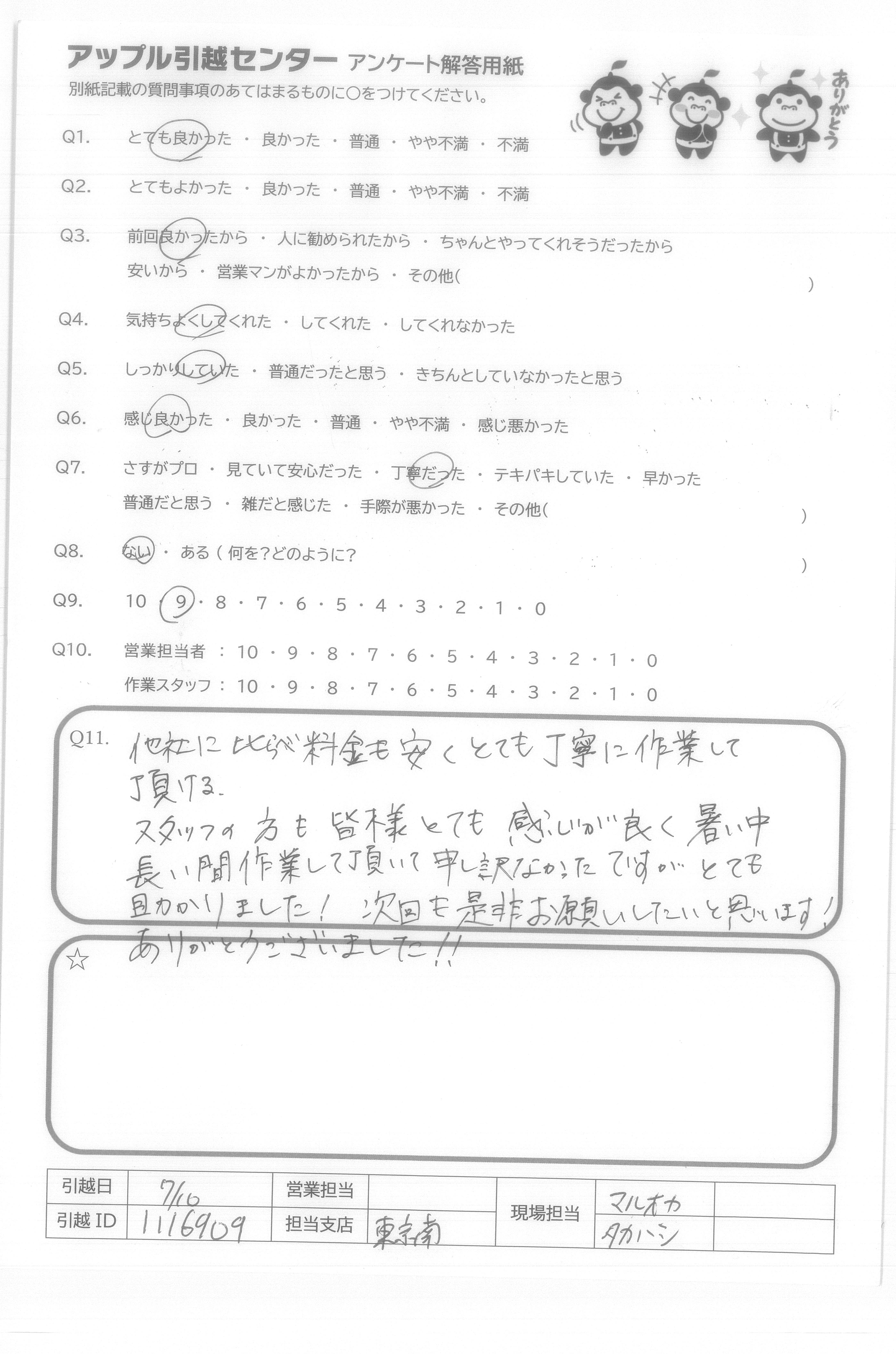 引越し日:2021年07月09日 エリア:神奈川県川崎市中原区
