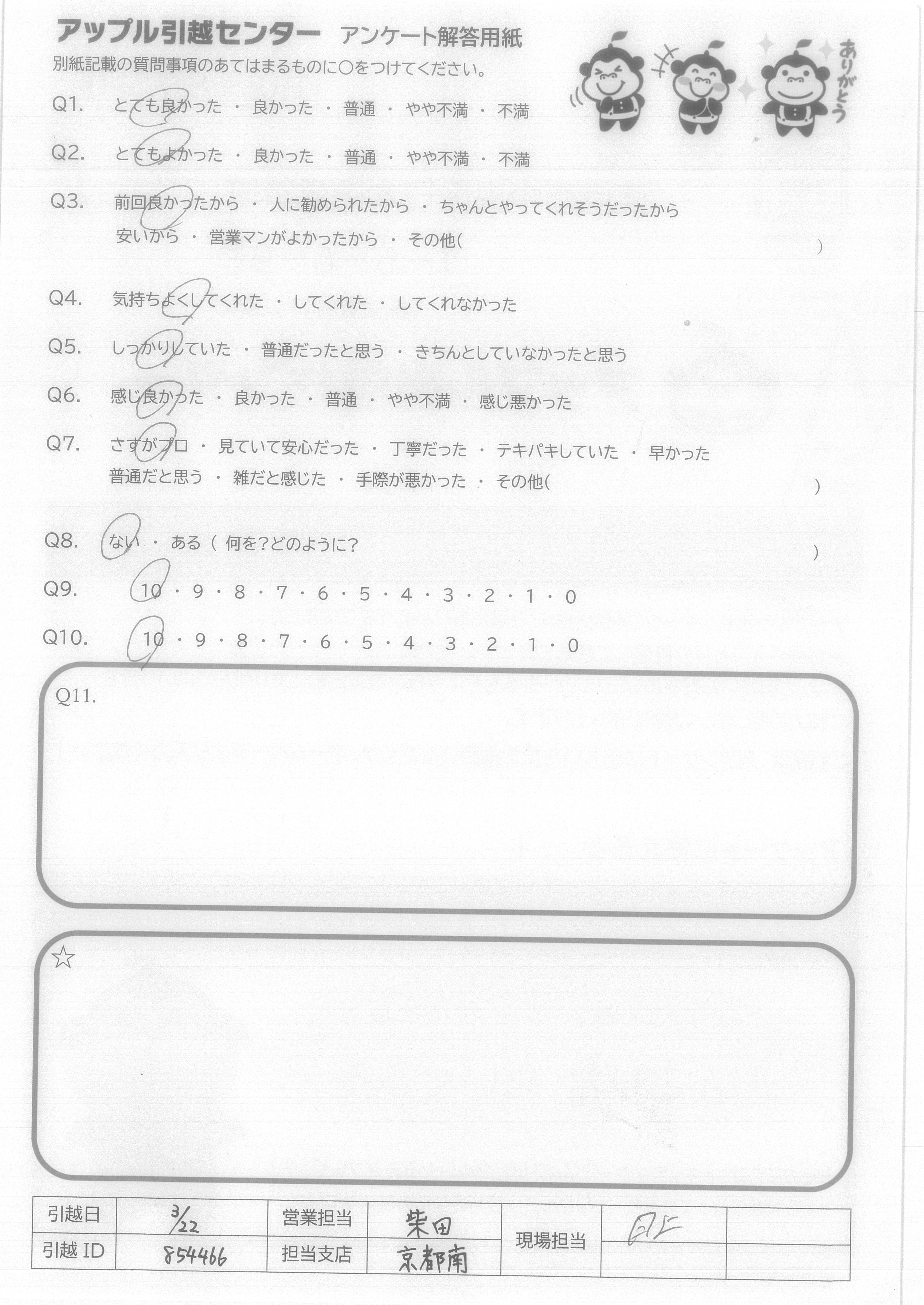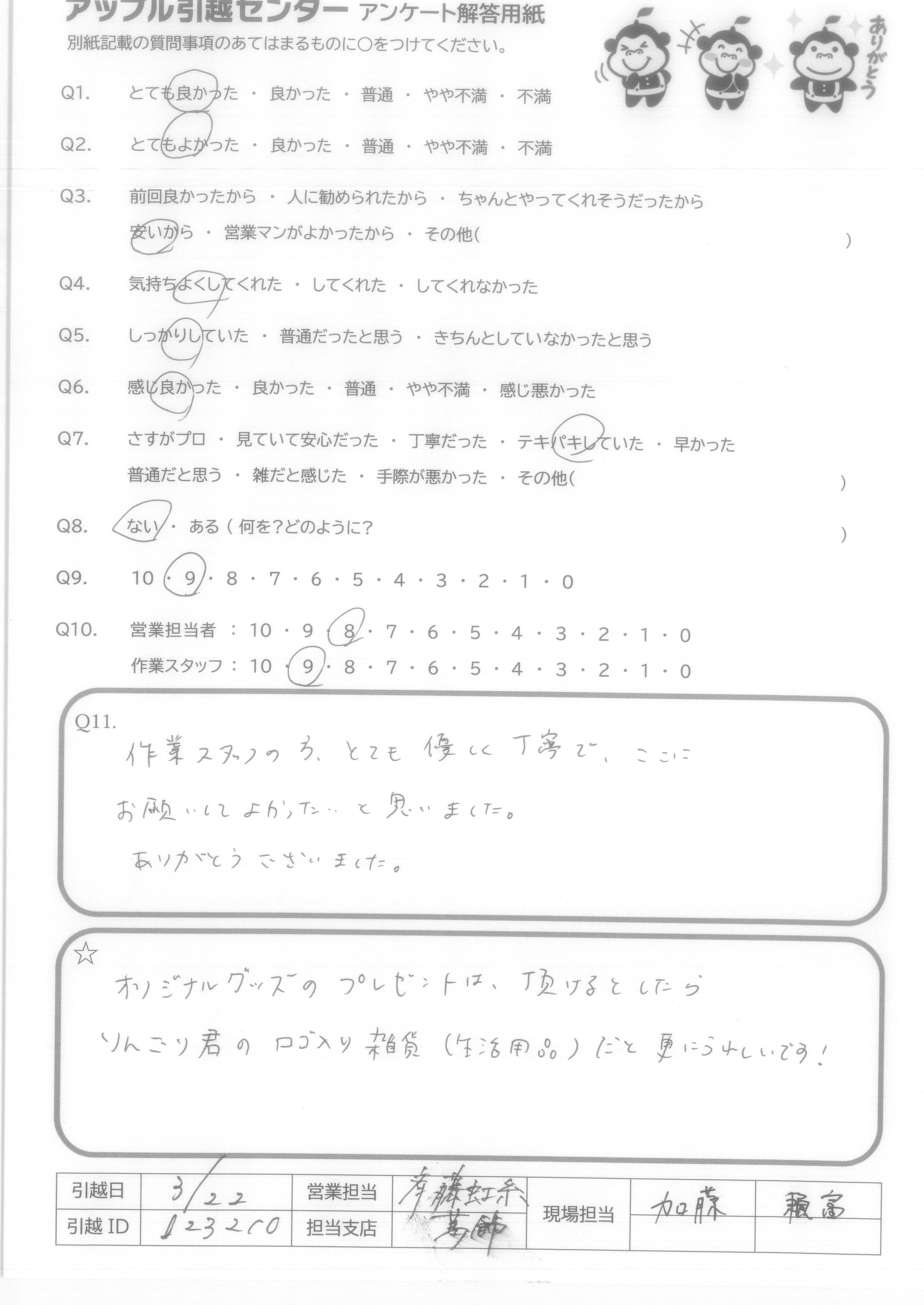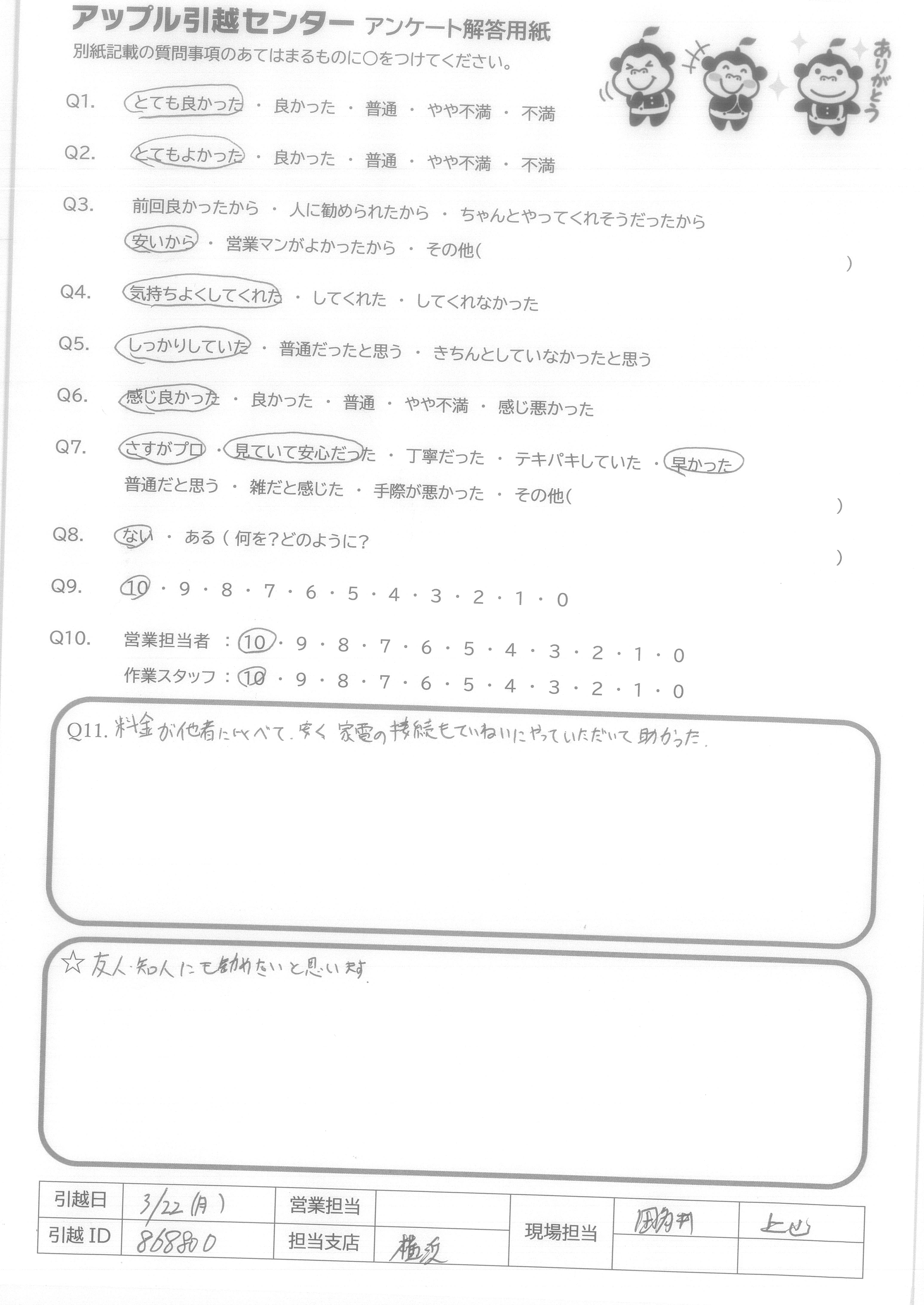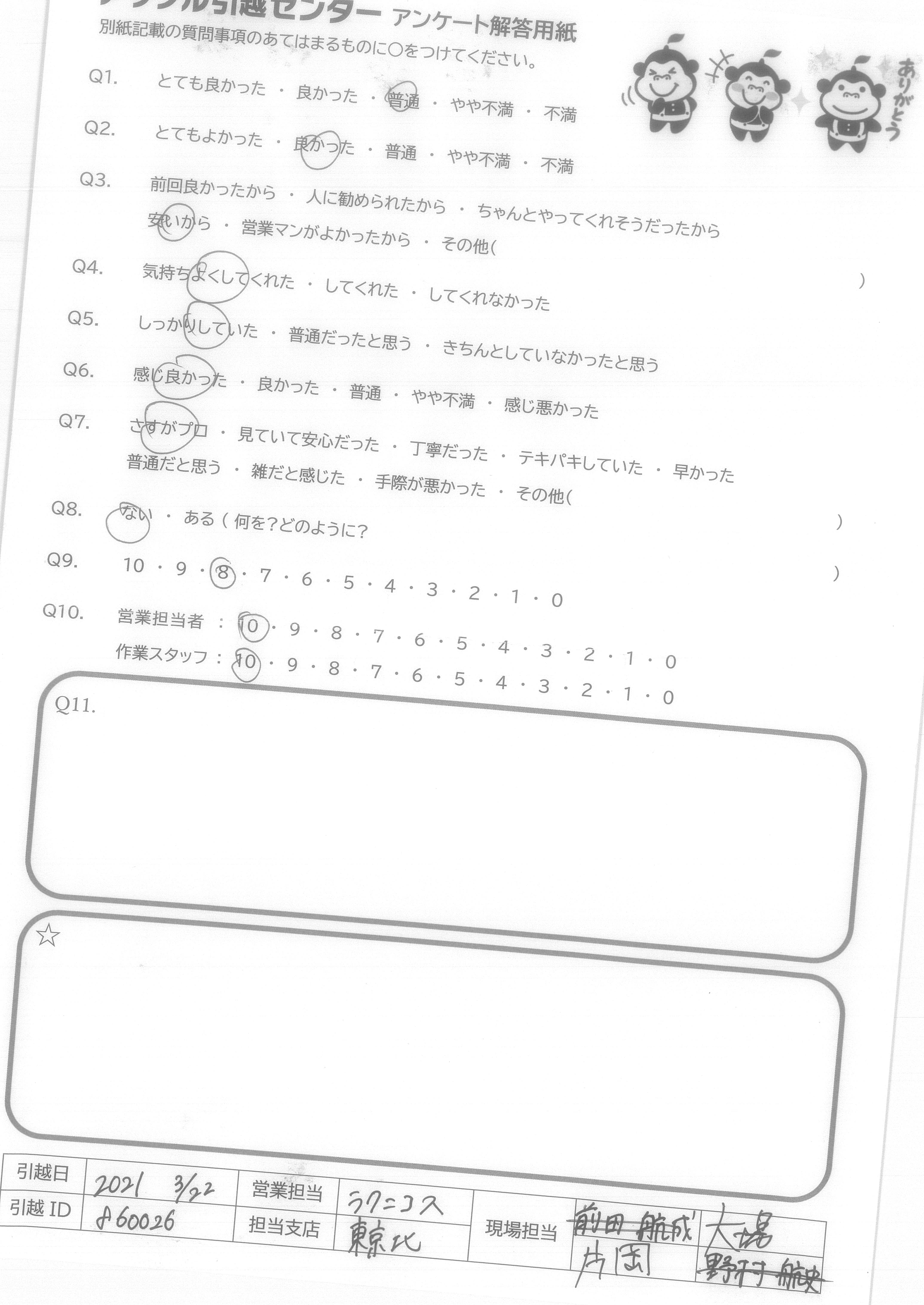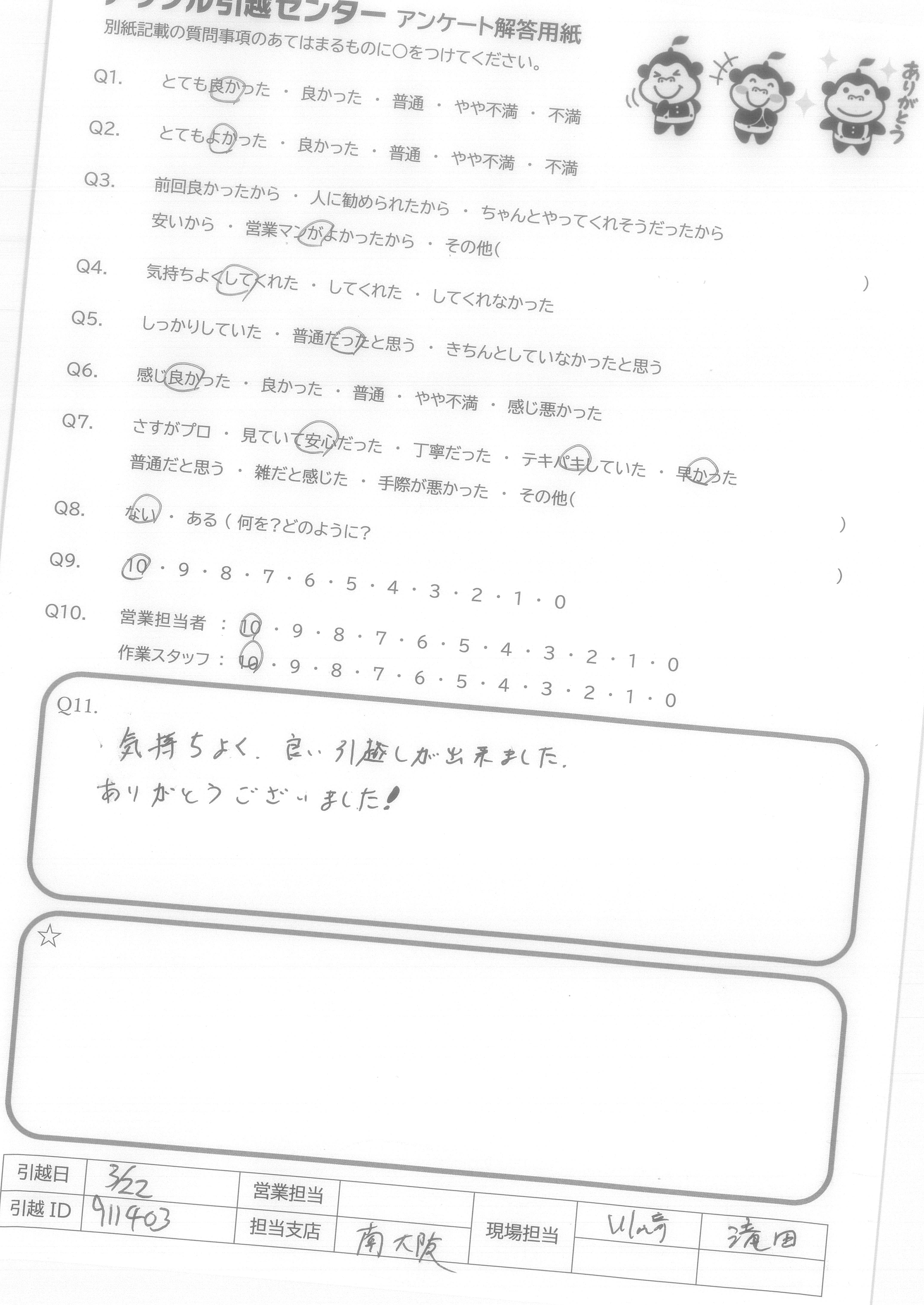 A.・気持ちよく、良い引越しが出来ました。 ありがとうございました!