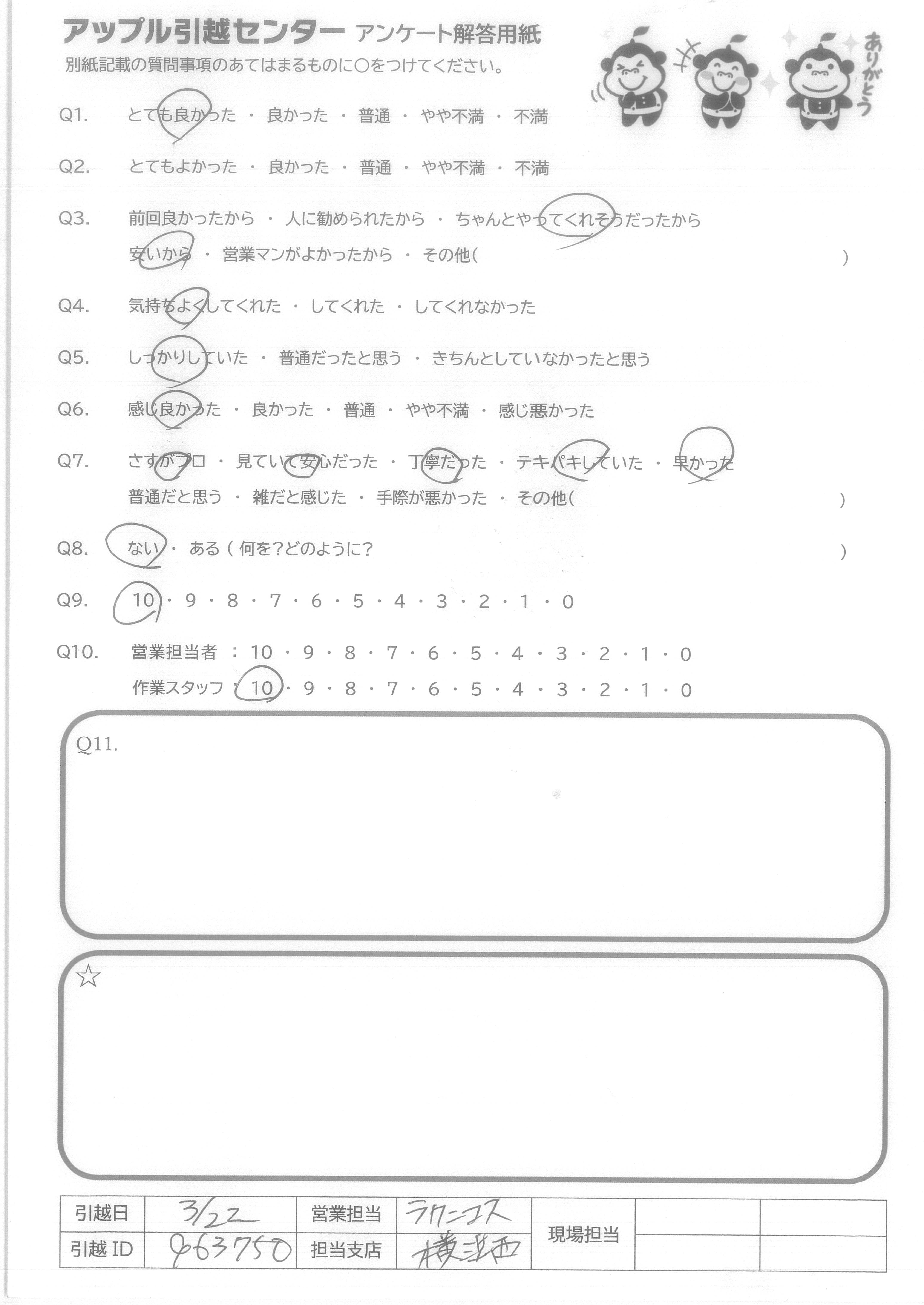 引越し日:2021年03月22日 エリア:神奈川県横浜市保土ケ谷区