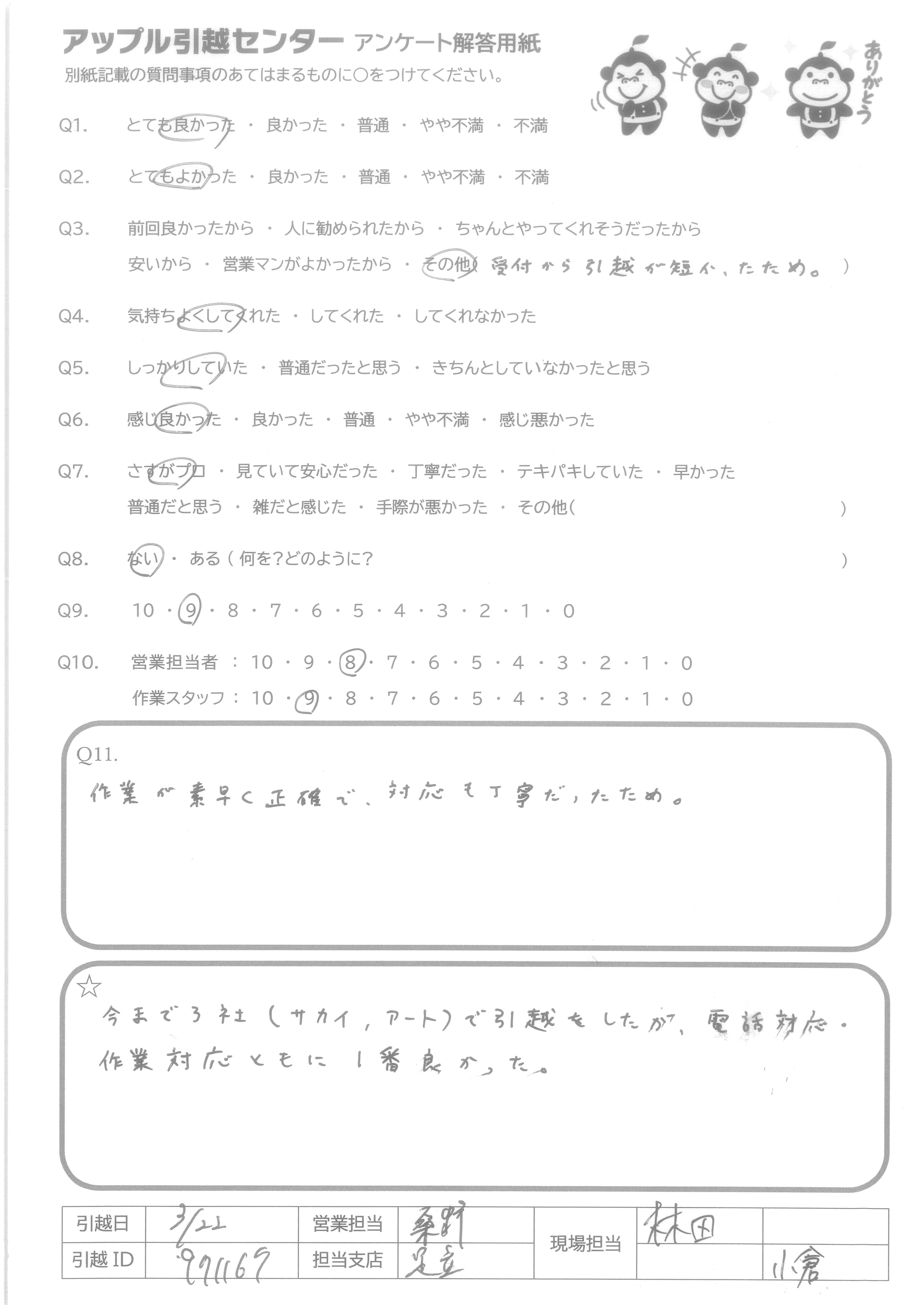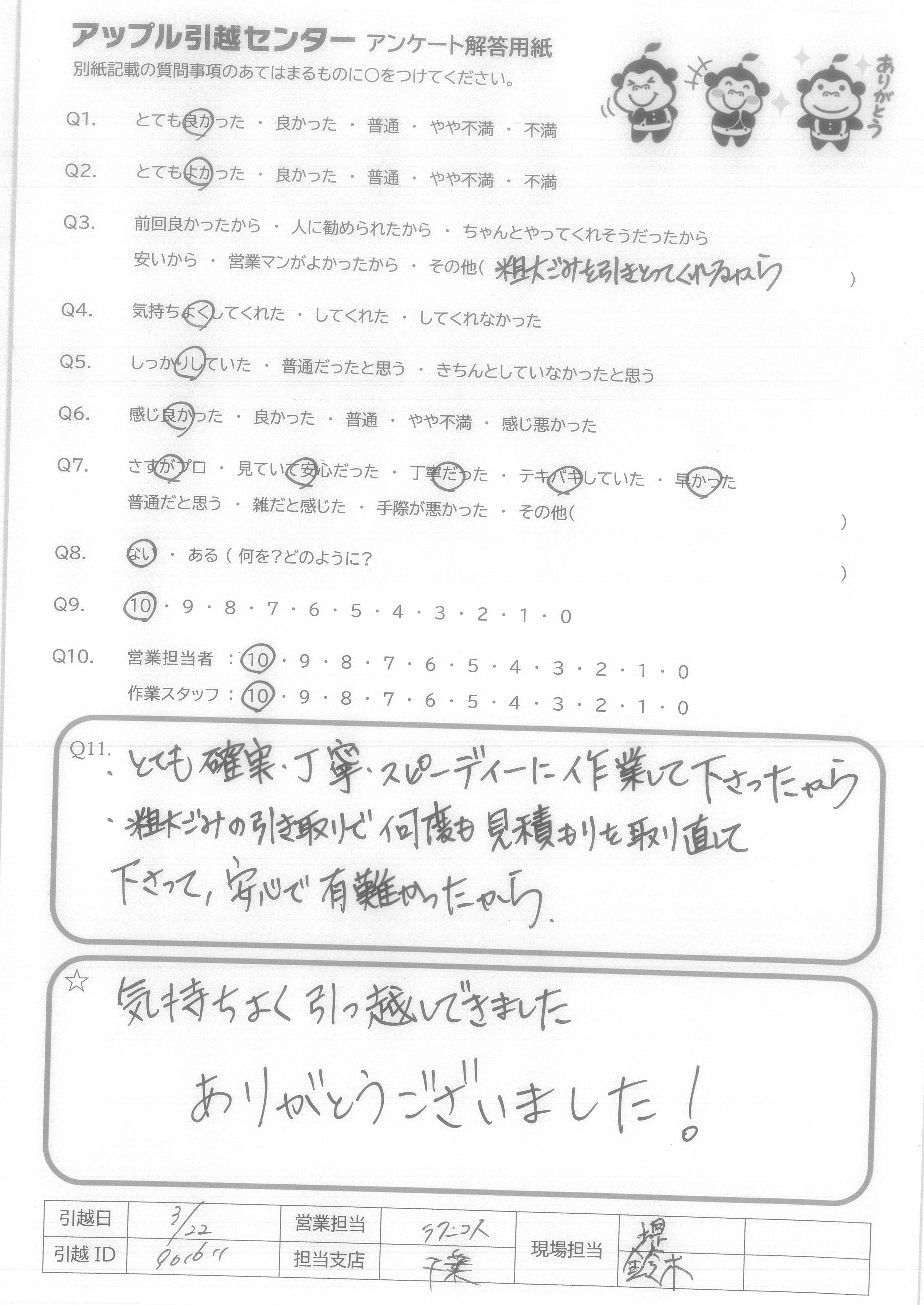 A.気持ちよく引っ越しできました ありがとうございました!