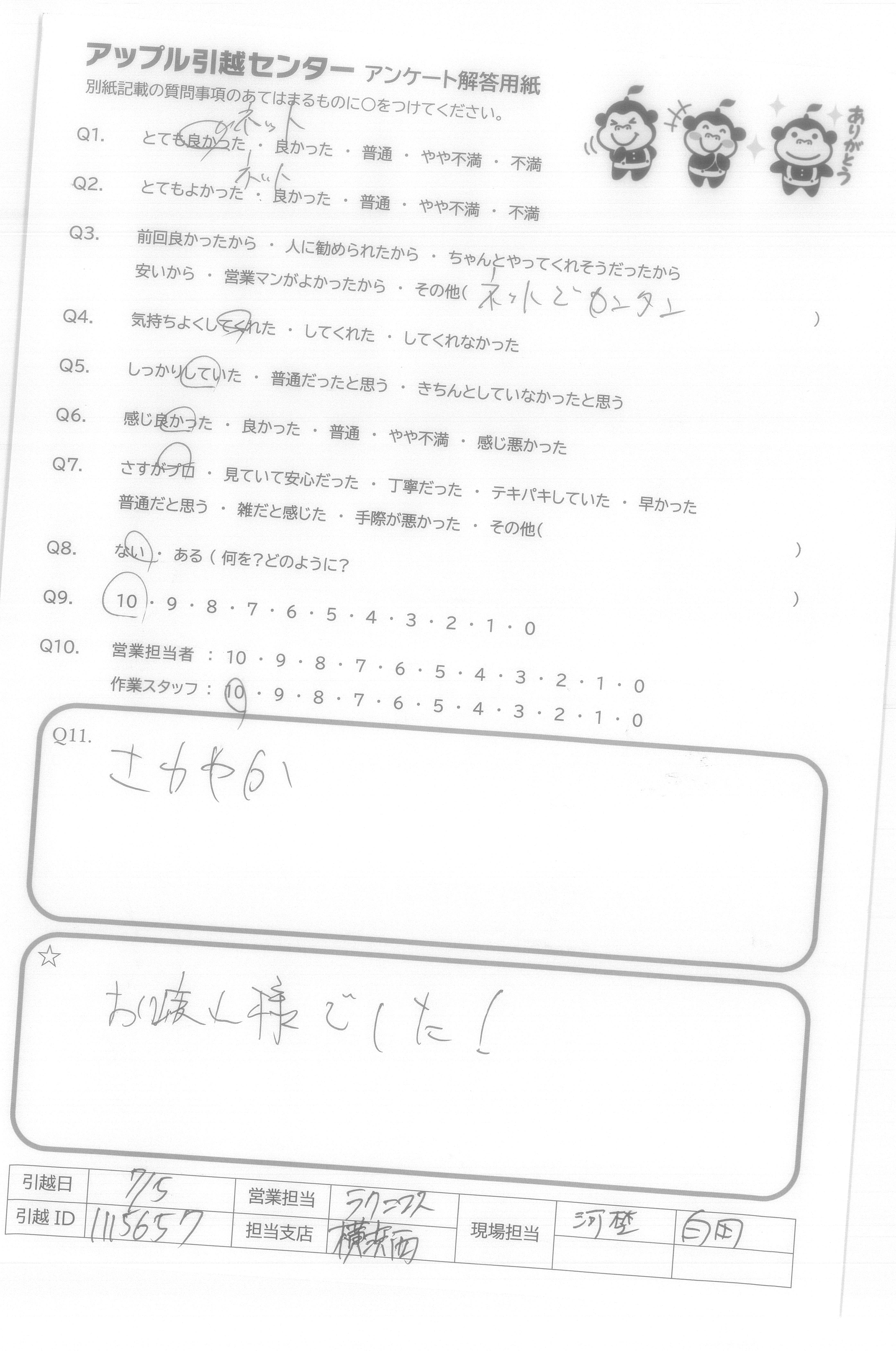 引越し日:2021年07月05日 エリア:神奈川県横浜市南区