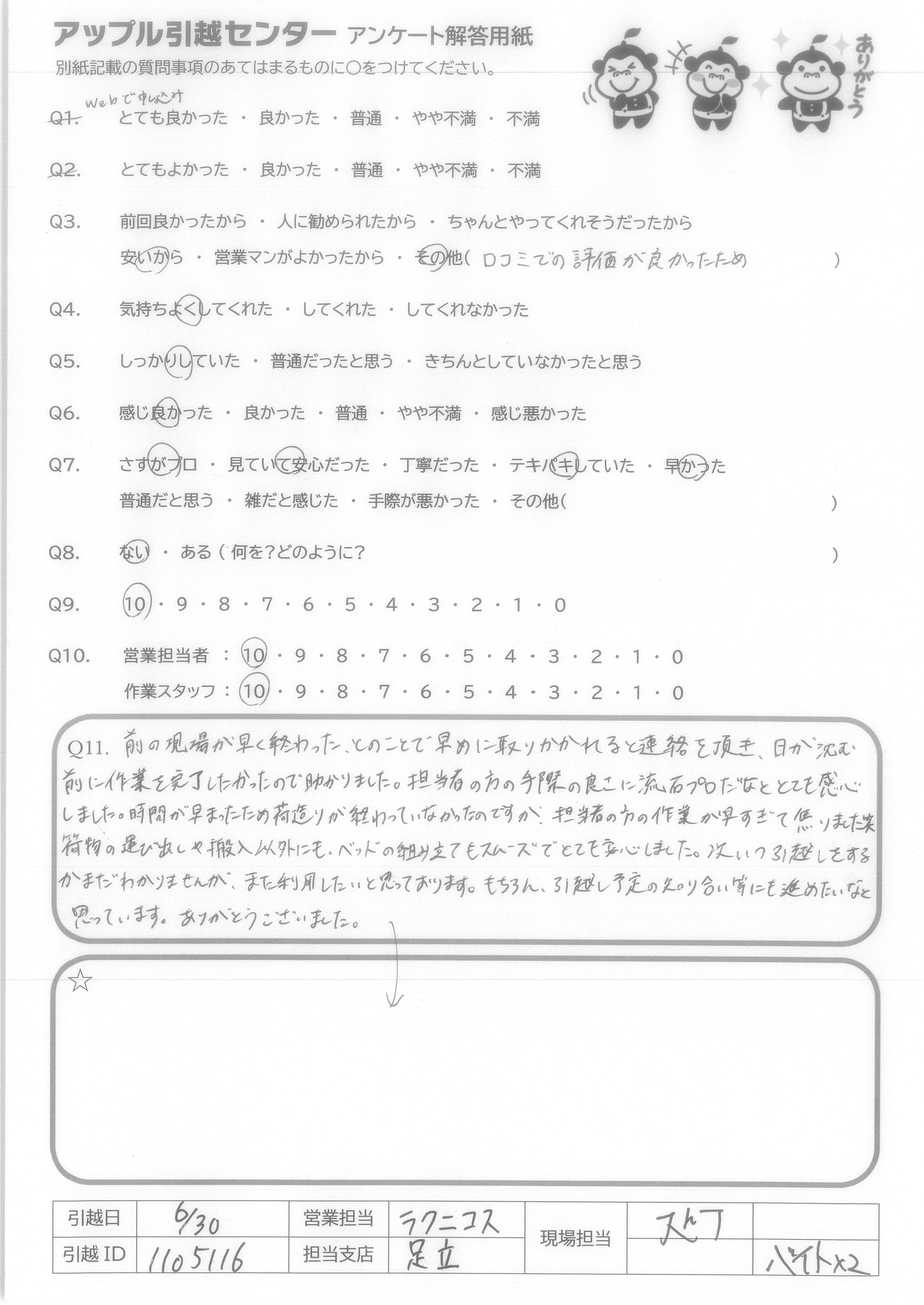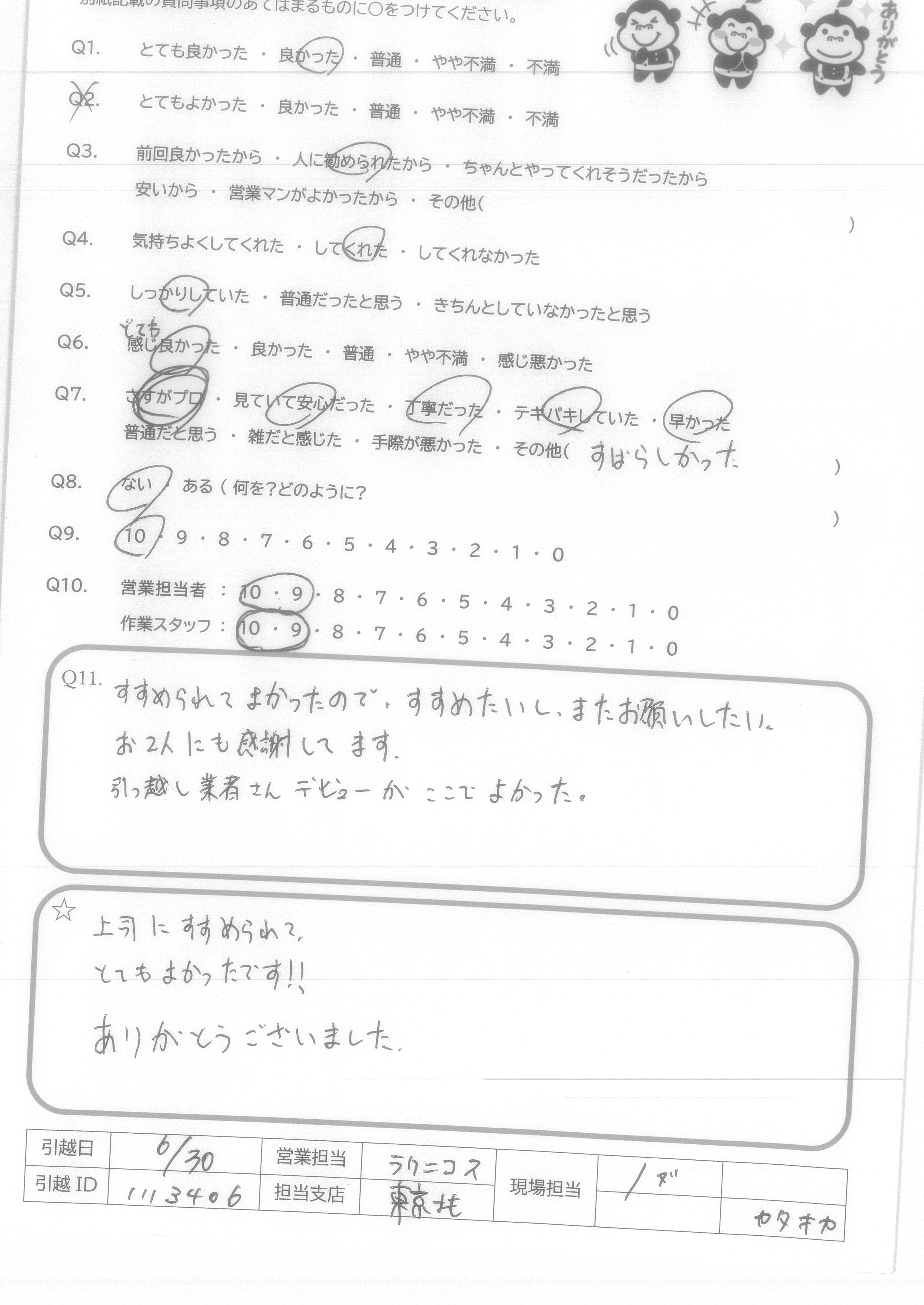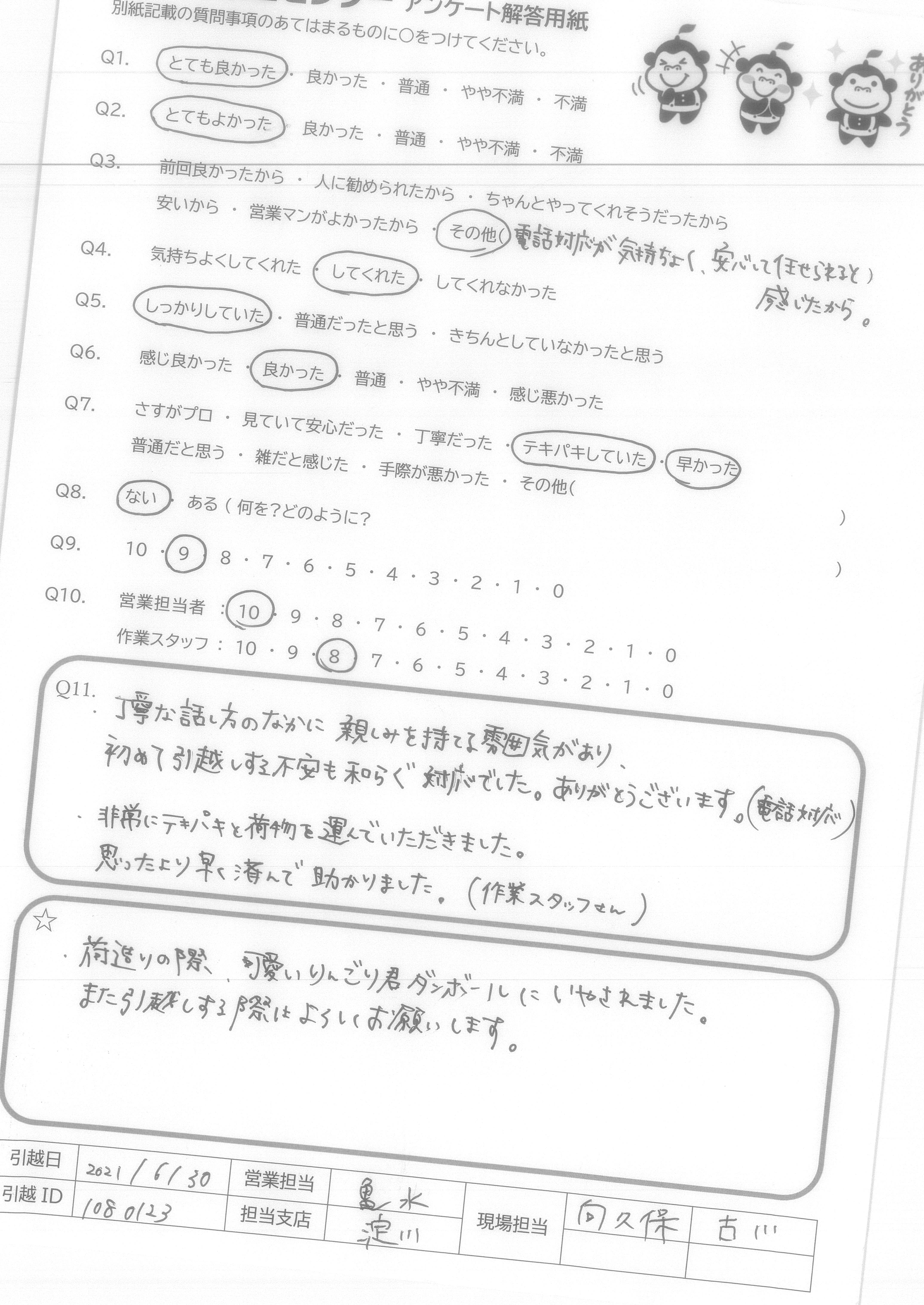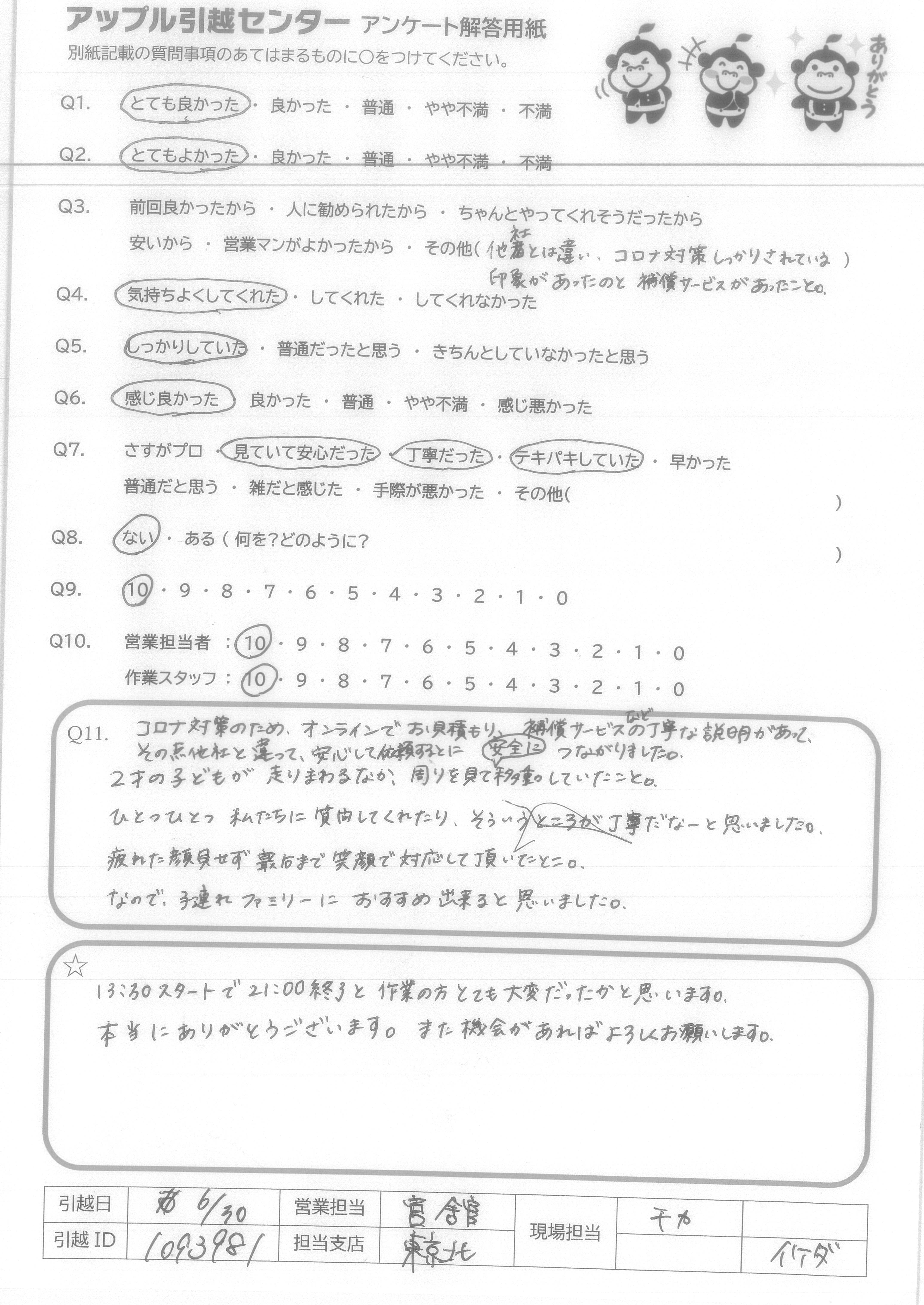 引越し日:2021年06月30日 エリア:東京都江東区