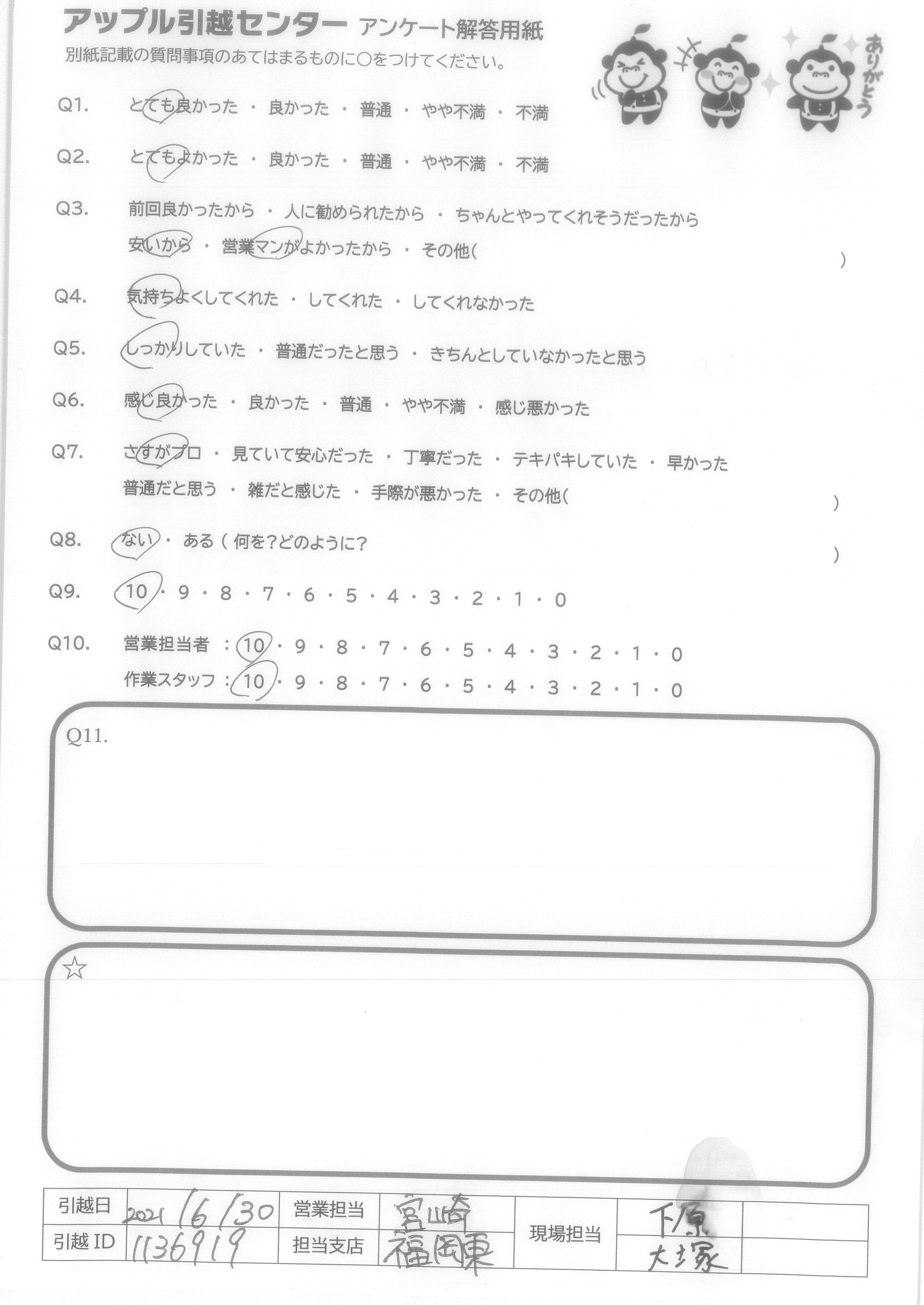 引越し日:2021年06月30日 エリア:福岡県福岡市博多区