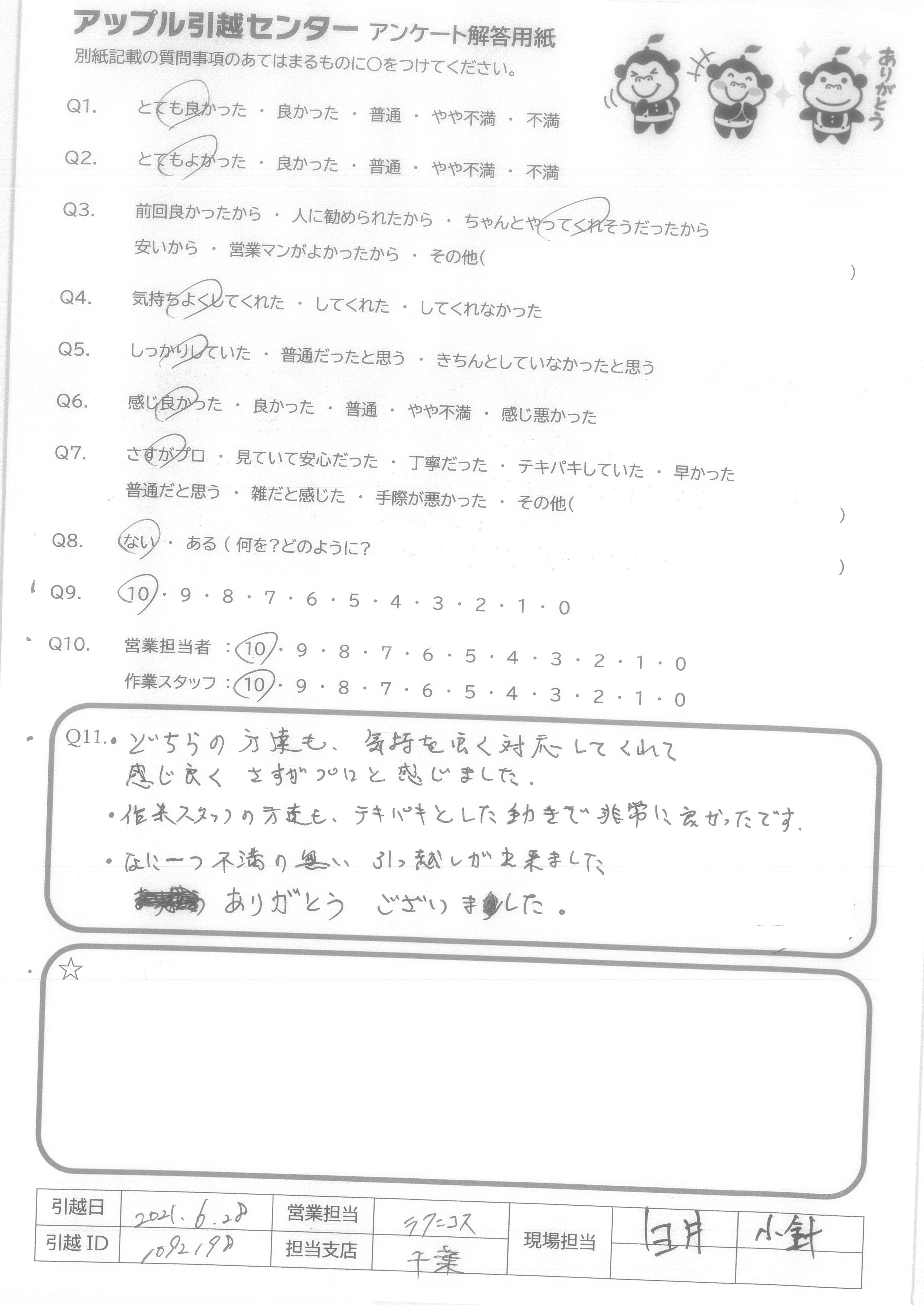 アップル引越センターでは、面映いお褒めの言葉も、胸に突き刺さるお叱りのコメントも、